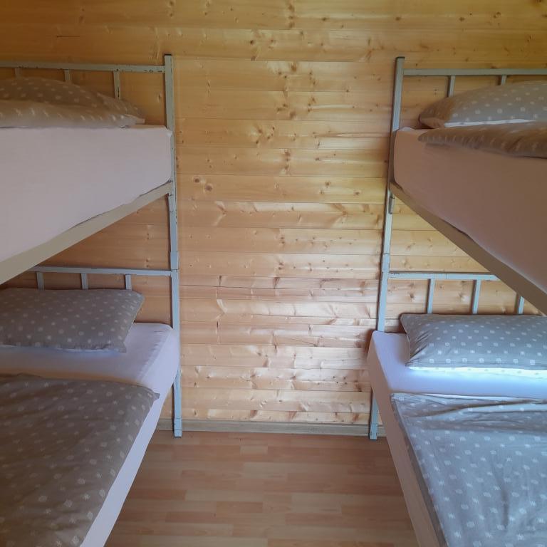 Je možné si rezervovat lůžko ve starém zrekonstruovaném seníku. Bouda má 14 lůžek, které lze rezervovat jednotlivě nebo pro skupinu. Toalety a sprchy se nacházejí v centrálním sociálním zařízení a jsou vzdálené pouhých 50 m. Bouda se nachází přímo v adrenalinovém parku, takže z okna můžete vidět, co se děje.