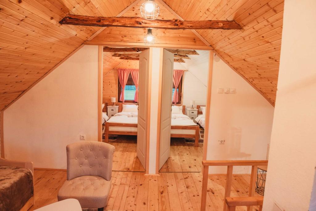 Pobytová taxa je v ceně.Přijďte si odpočinout na venkov a do ticha, ochutnat pálenku Lika, sýr skripavac a vše, co Lika nabízí. Můžete navštívit jezero Kruščica vzdálené jen 7 km, Pamětní centrum Nikoly Tesly 13 km, jeskynní park Grabovača 9 km, Štirovača 33 km, Karlobag 50 km, Národní park Plitvická jezera 73 km............