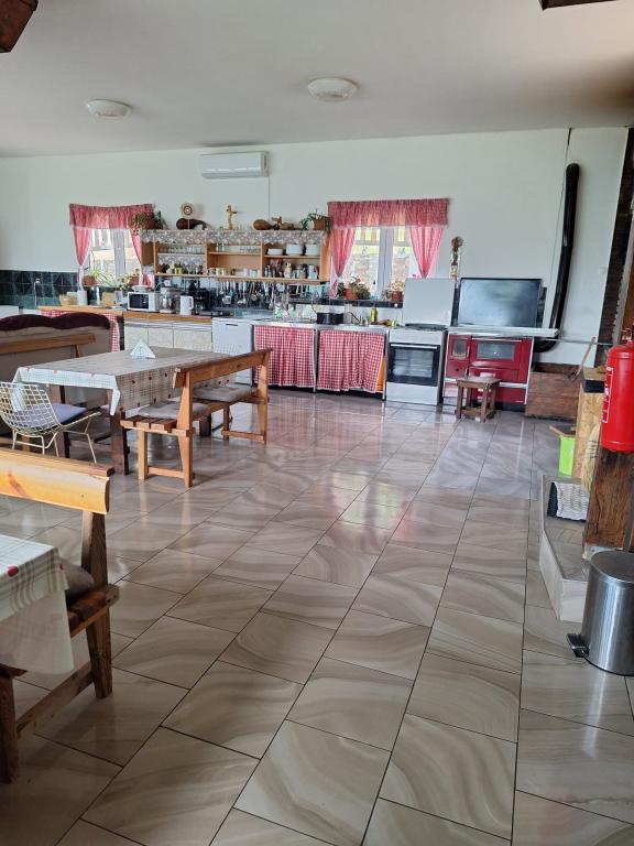 Rodinná farma se 7 dvoulůžkovými pokoji a 2 přistýlkami s koupelnou, kuchyní a terasou pro ubytování a konzumaci jídla a pití. Princip je, že host je hostitel. Domácí jídlo a domácí produkty jsou k dispozici na požádání. , příprava jídla, gril, rožeň, pečení, hrnec, kotlík a cokoli si přejete. Pro každou skupinu v týdenním pobytu se podává speciální lické jehněčí na rožni nebo dle výběru OPG jehněčí z vlastního chovu. Všechny produkty z domácnosti. Vše po domluvě.