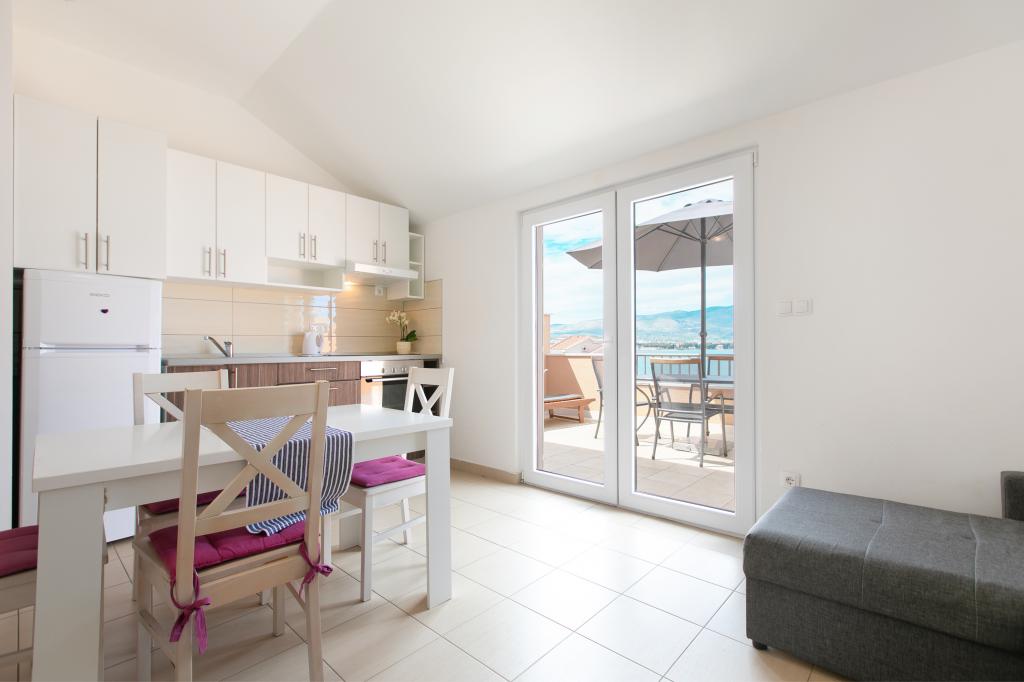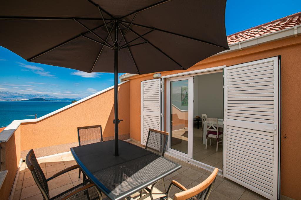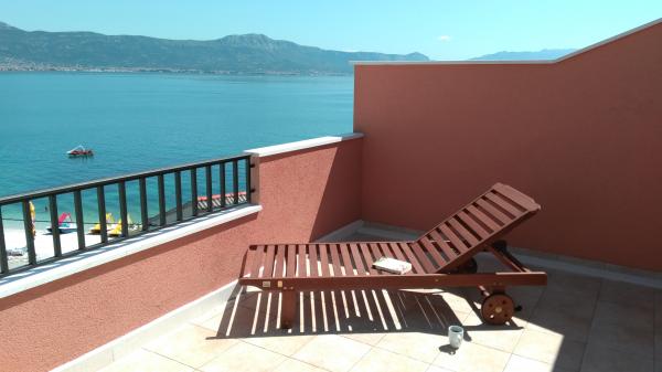 Pěkně zařízený byt s velkou terasou a krásným výhledem na moře. Byt je přímo u moře s pěknou pláží a klidným prostředím. Velmi přátelští hostitelé. Těšíme se na příští rok!