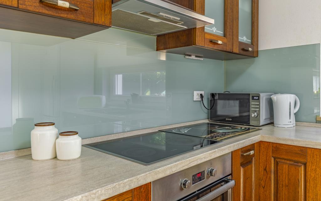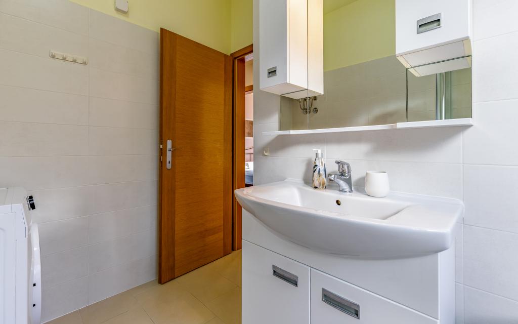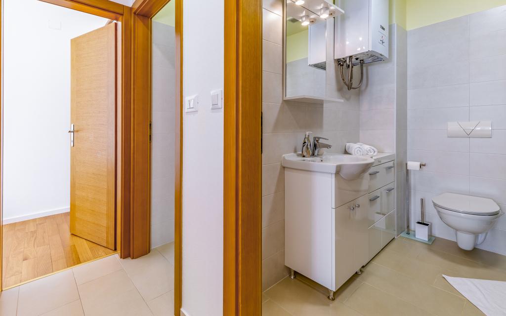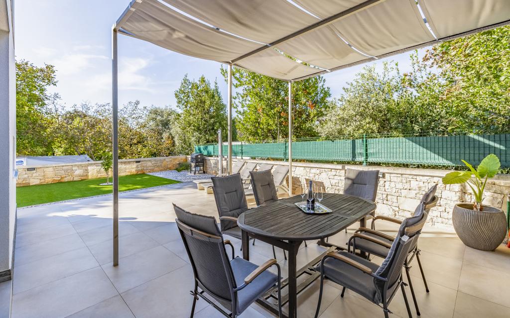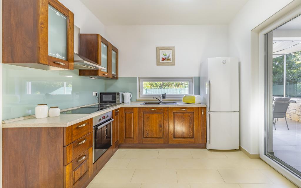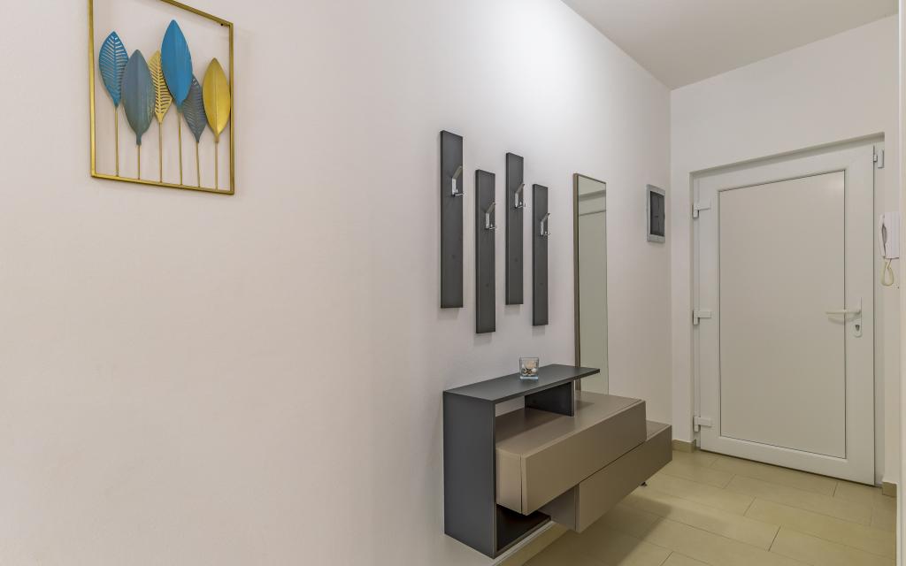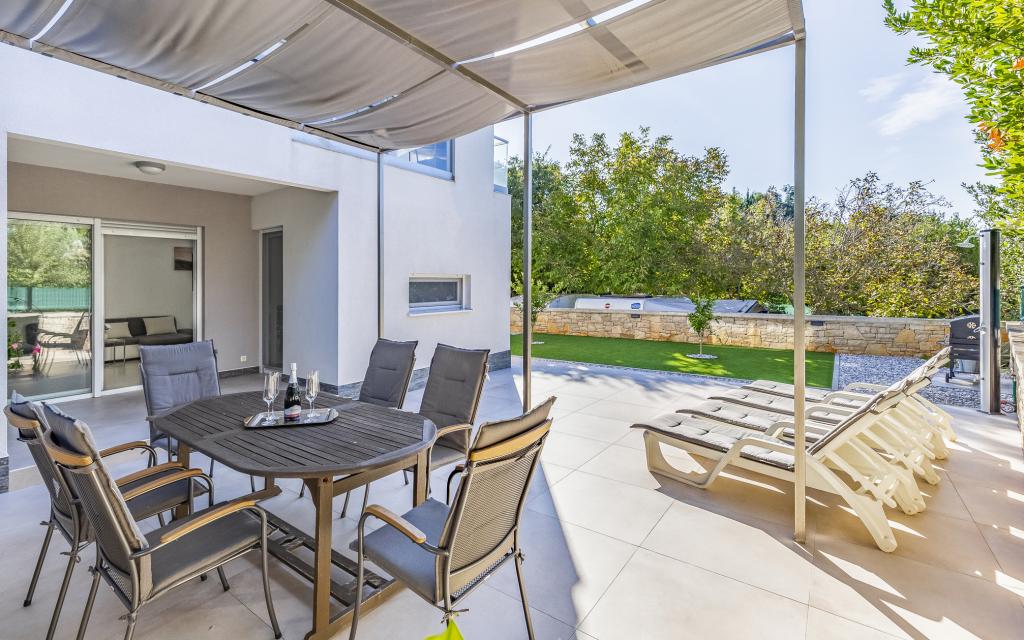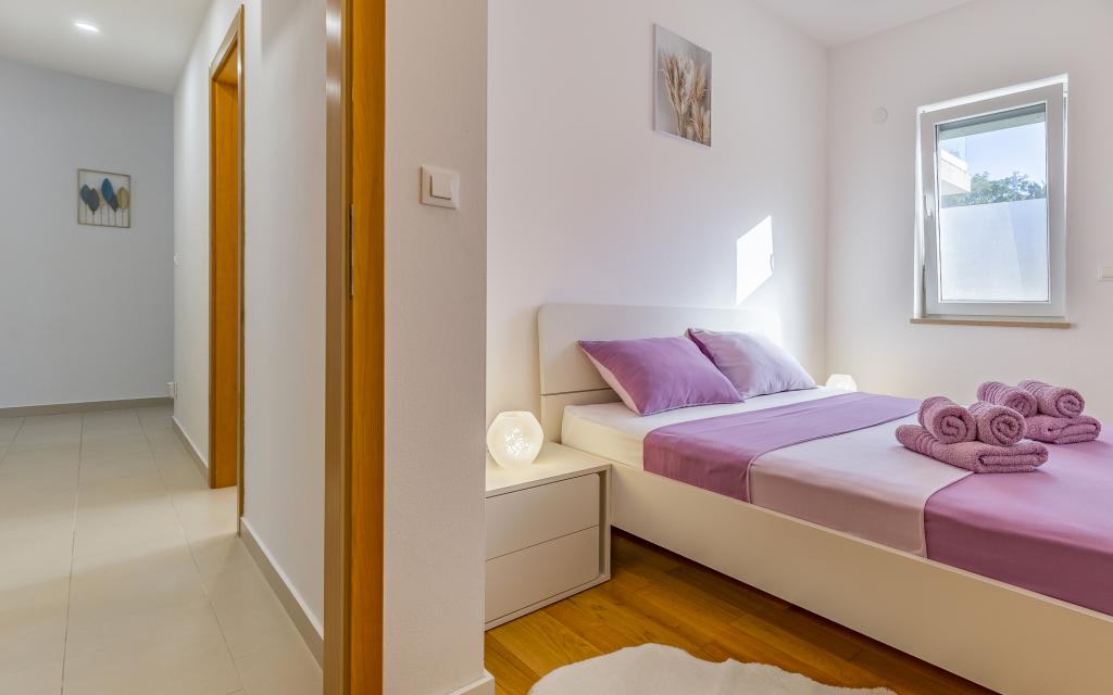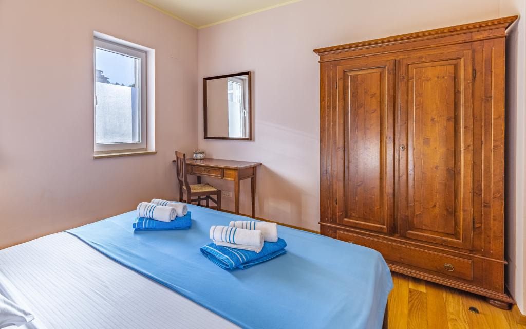 Plně vybavený apartmán (80 m²) ve výborné lokalitě v klidné části Banjolu. Nemovitost se nachází 200 m od moře a 300 m od nejkrásnějších pláží v oblasti. Apartmán se nachází v přízemí bytového domu s celkem třemi apartmány a má velkou soukromou oplocenou zahradu (100 m²) se samostatným vchodem a vlastním parkovacím místem přímo vedle apartmánu a zahrady. Zahrada má velkou krytou terasu se stolem a šesti židlemi, čtyřmi lehátky, venkovní sprchou a grilem, což je hlavní prostor pro příjemné posezení a relaxaci s dostatkem soukromí, slunce, ale i stínu. Celá budova je obehnána kamennou zdí a u vchodu jsou posuvné dveře. Apartmán se skládá ze 2 ložnic s manželskými postelemi, 2 koupelen s toaletou a sprchou, prostorného obývacího pokoje s rozkládací pohovkou, jídelny a kuchyně. Apartmán je klimatizovaný a v zimě je vytápěn podlahovým topením a má vnitřní krb, takže je vhodný i pro pobyt v chladnějších podzimních a zimních měsících.