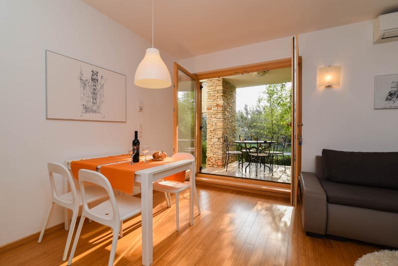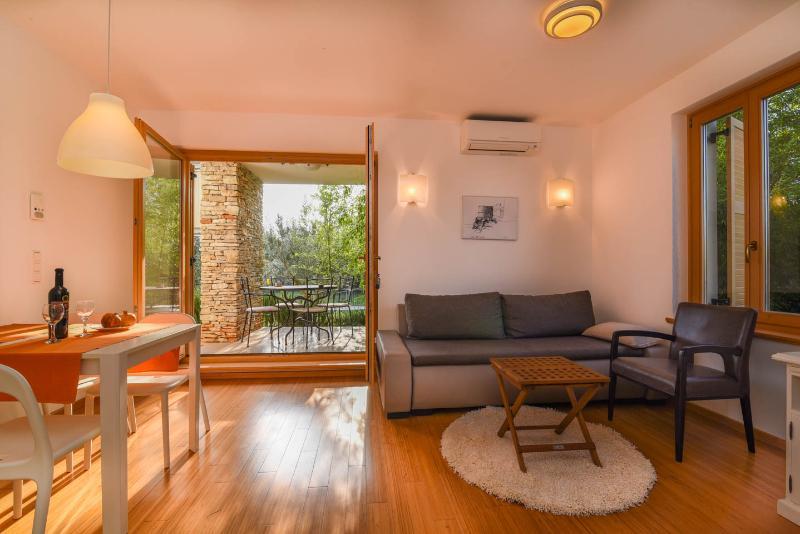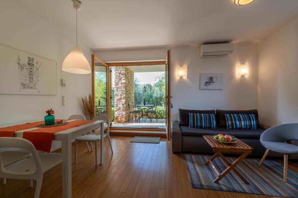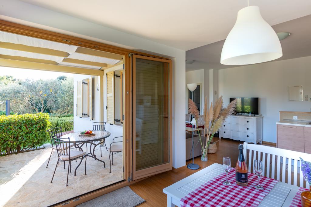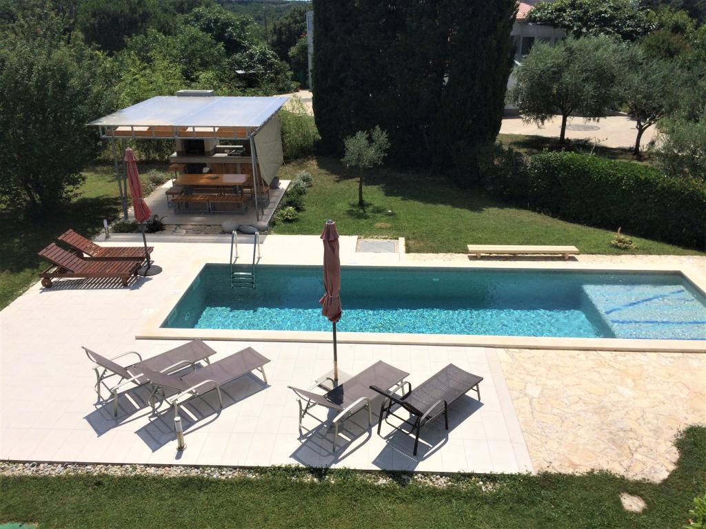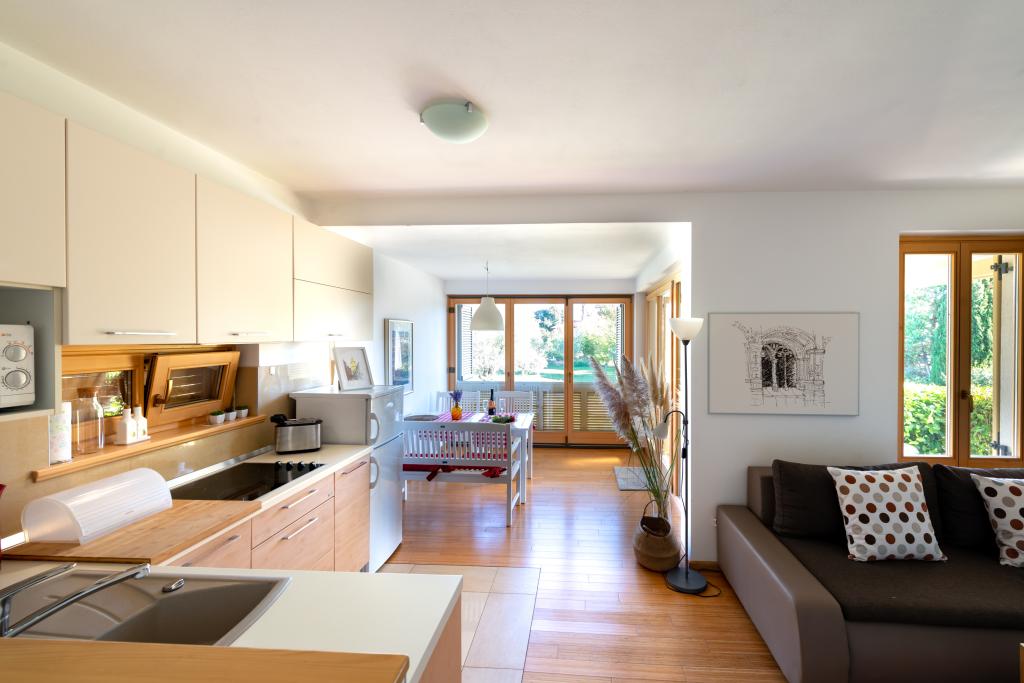 Pěkný dům se 4 apartmány, bazénem a zahradou se středomořskými rostlinami. každý byt má ve svém prostoru plnou intimitu s terasami skrytými před zraky kohokoli. Dva apartmány jsou v přízemí a dva v prvním patře, vybavené kvalitním vybavením pro příjemný vícedenní pobyt.