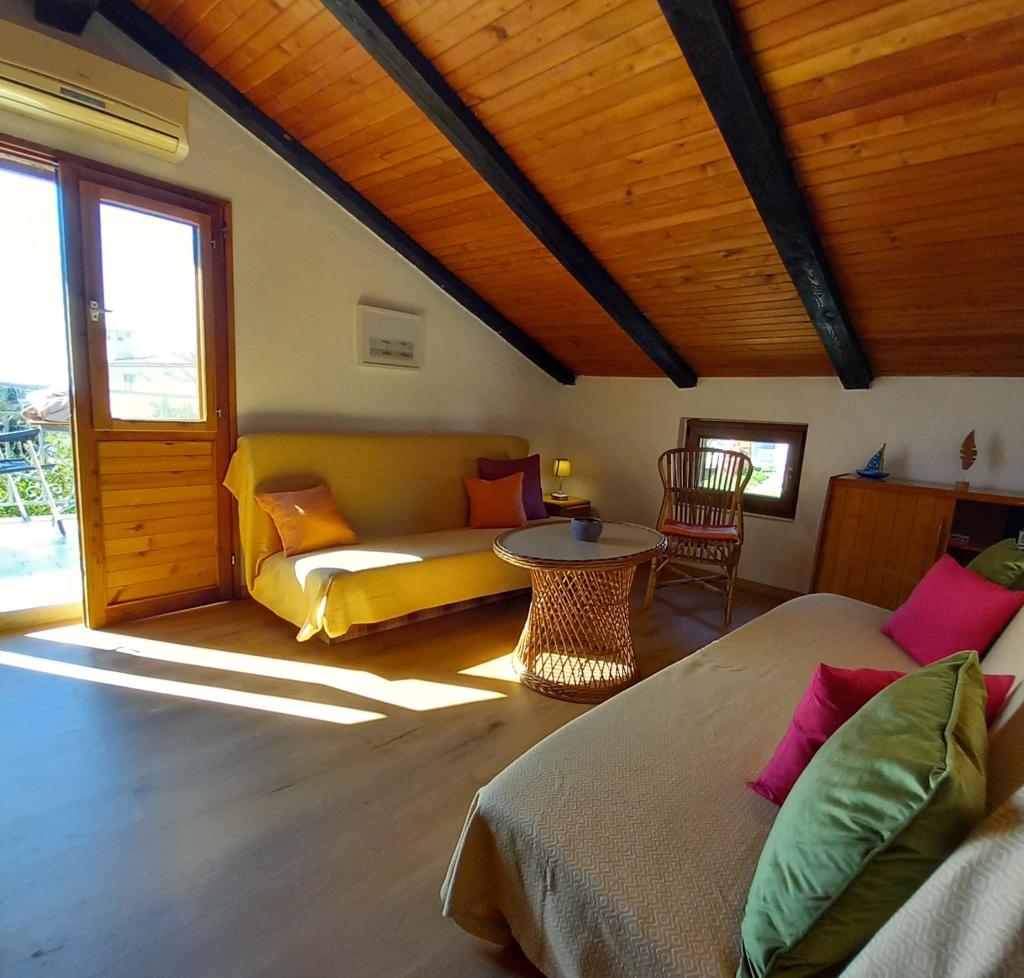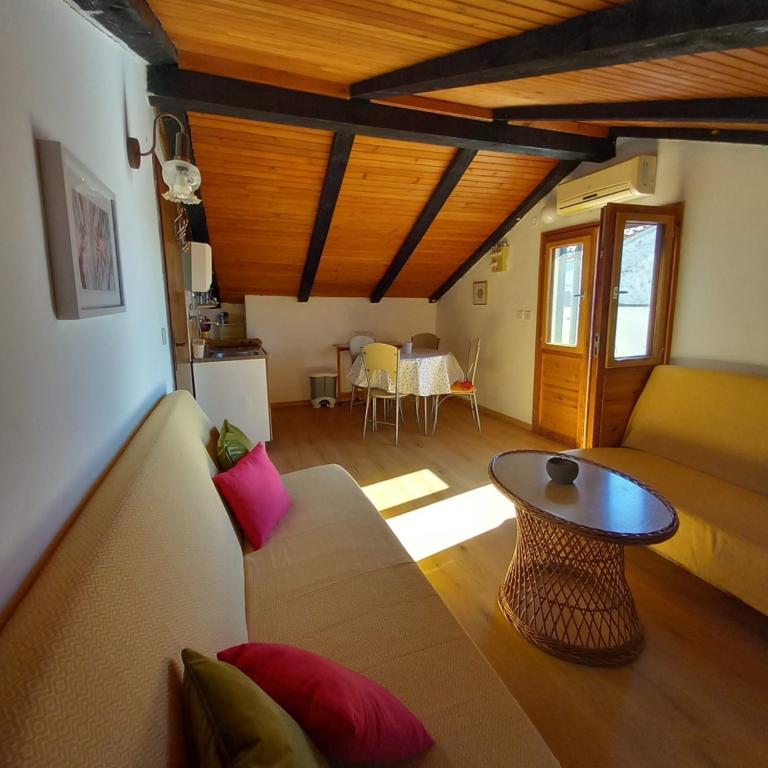 Dům se dvěma apartmány a parkovacím místem se nachází v malé, klidné vesničce Mušoga-Banjole a je vzdálený pouhých 300 m od pláže. Je vhodný pro ubytování 2 rodin. Apartmán Oleander 2+2, v 1. patře (nízké podkroví), je ideální pro 2 dospělé nebo 2 dospělé a 1-2 malé děti. Apartmán je klimatizovaný a skládá se z 1 dvoulůžkové ložnice, koupelny, samostatného pokoje se dvěma pohovkami/lůžky a mini kuchyňským blokem a terasy. Apartmán Glicinija pro 4 osoby, v přízemí, se skládá ze 2 ložnic, jídelny, kuchyně, koupelny a dvora s celodenním přirozeným stínem. V blízkosti apartmánu se nachází mnoho přímořských promenád a cyklostezek. Desetiminutová chůze vás dovede k supermarketu, pekárně, rybímu trhu, lékárně, půjčovně kol a několika restauracím. Pouhých 6 km od apartmánu se nachází poloostrov Kamenjak s krásnými plážemi, čistým mořem a unikátním Safari barem. Přijďte si užít moře, slunce, středomořské vůně a digitální detox :).