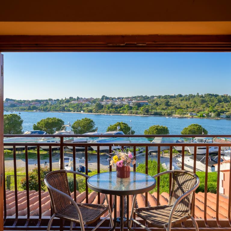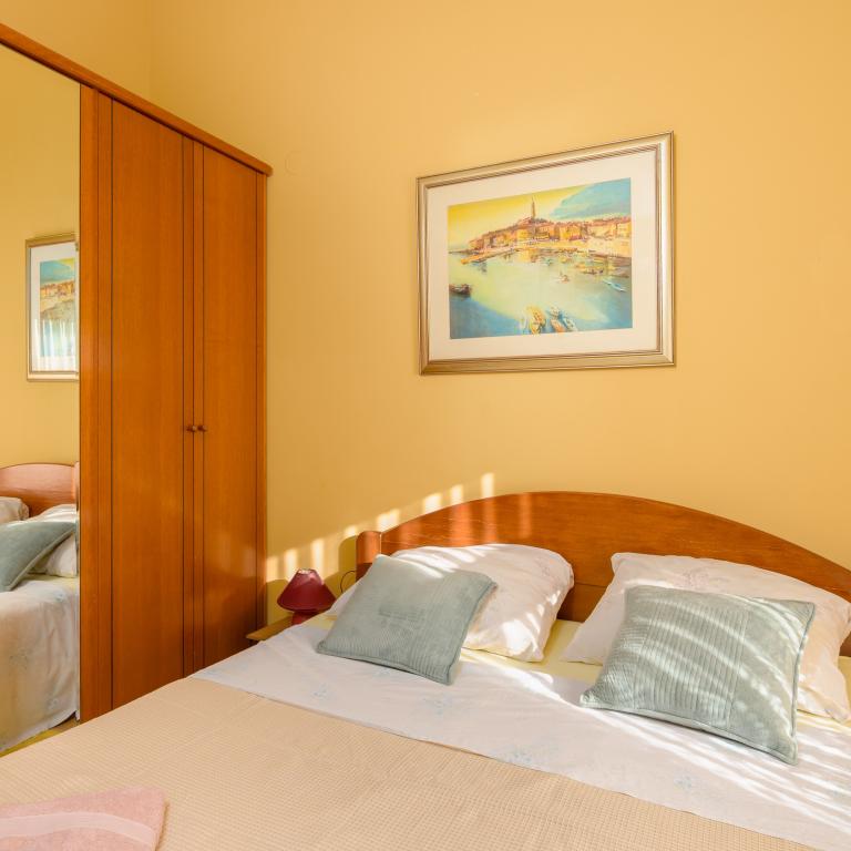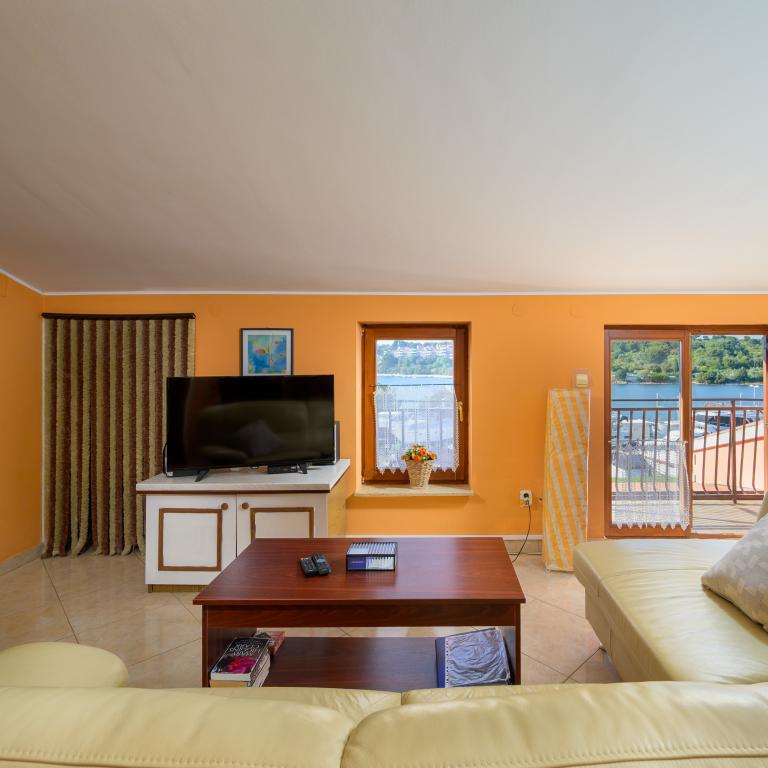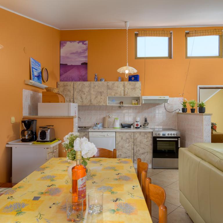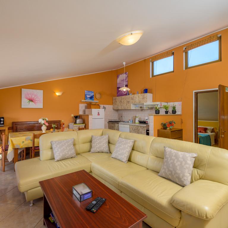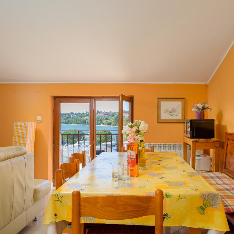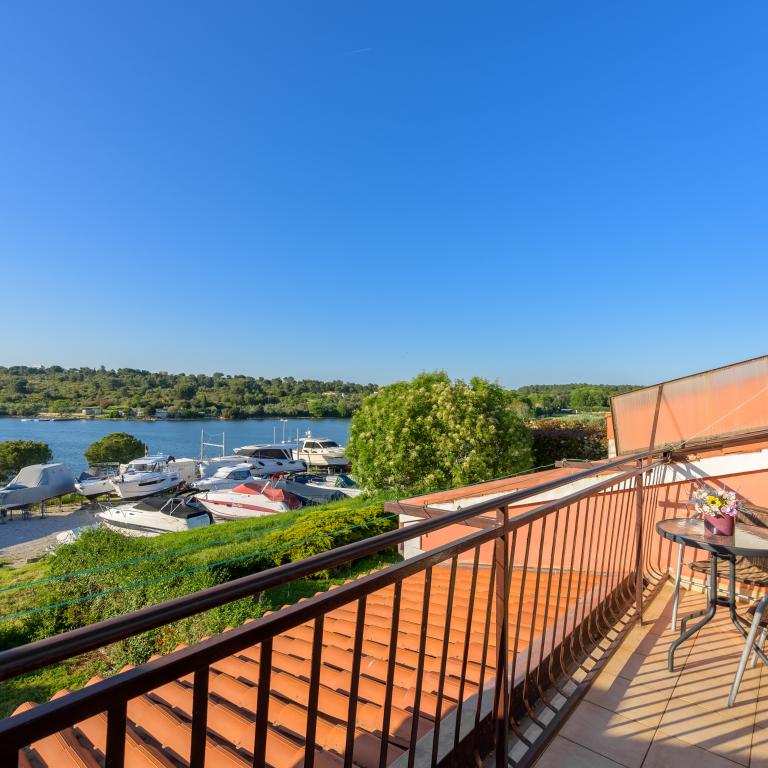 Apartmán se nachází v první řadě u moře v prvním patře s terasou a nádherným výhledem na modré moře a oblohu. Nachází se v klidné části Banjole, vesnice Volme, tiché a klidné, v blízkosti veškeré občanské vybavenosti. 5 minut na pláž a 15 minut do hotelu na druhé straně pobřeží. Nedaleké cyklostezky vedou do Národního parku Kamenjak. Pula je vzdálená tři kilometry a Premantura 4 kilometry.