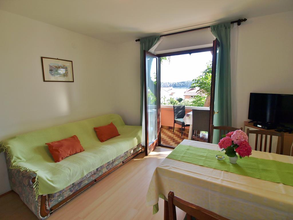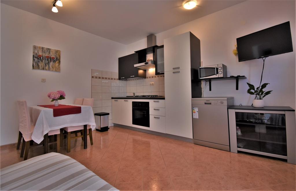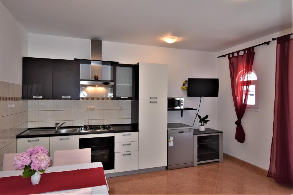 Dům se nachází na ostrově Rab, ve městě Barbat, v blízkosti moře. Jsme jen 50 metrů od moře. Apartmán se skládá ze dvou dvoulůžkových pokojů s manželskou postelí, kuchyně s jídelnou a obývacím pokojem, koupelny. Byt má 56 m2. Byt se nachází v přízemí a má velkou terasu ve stínu, venkovní gril a prostor pro večerní posezení a socializaci.
