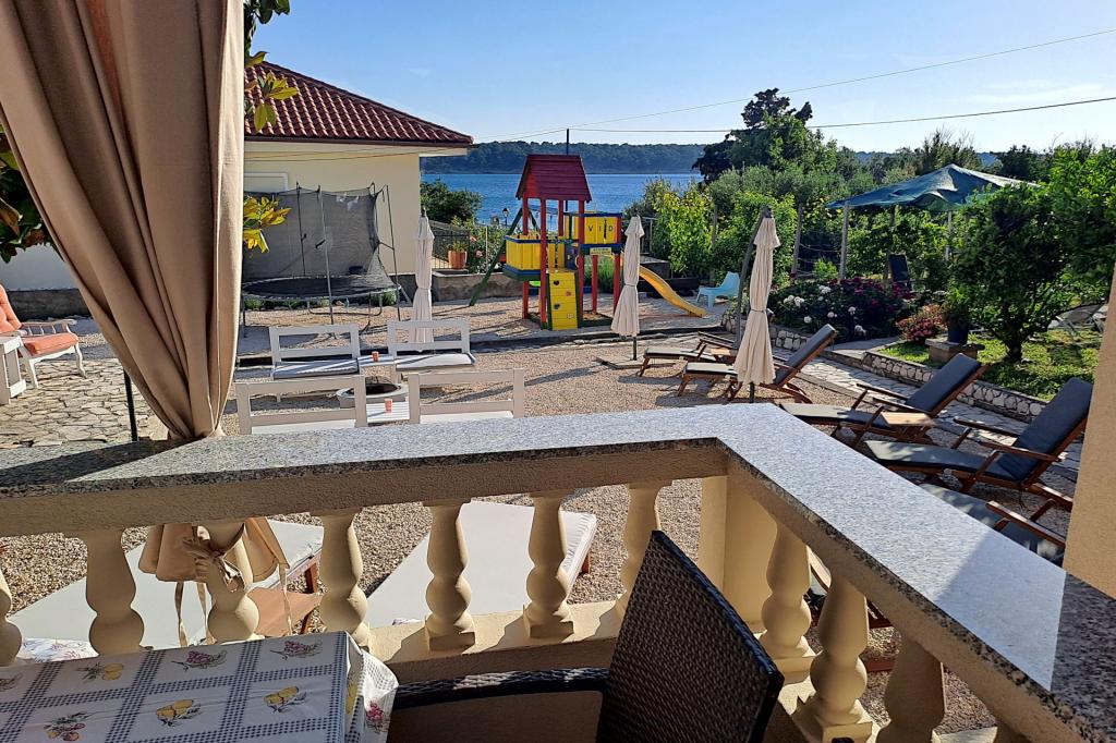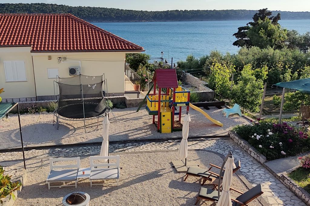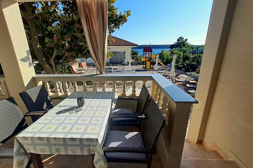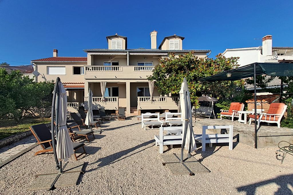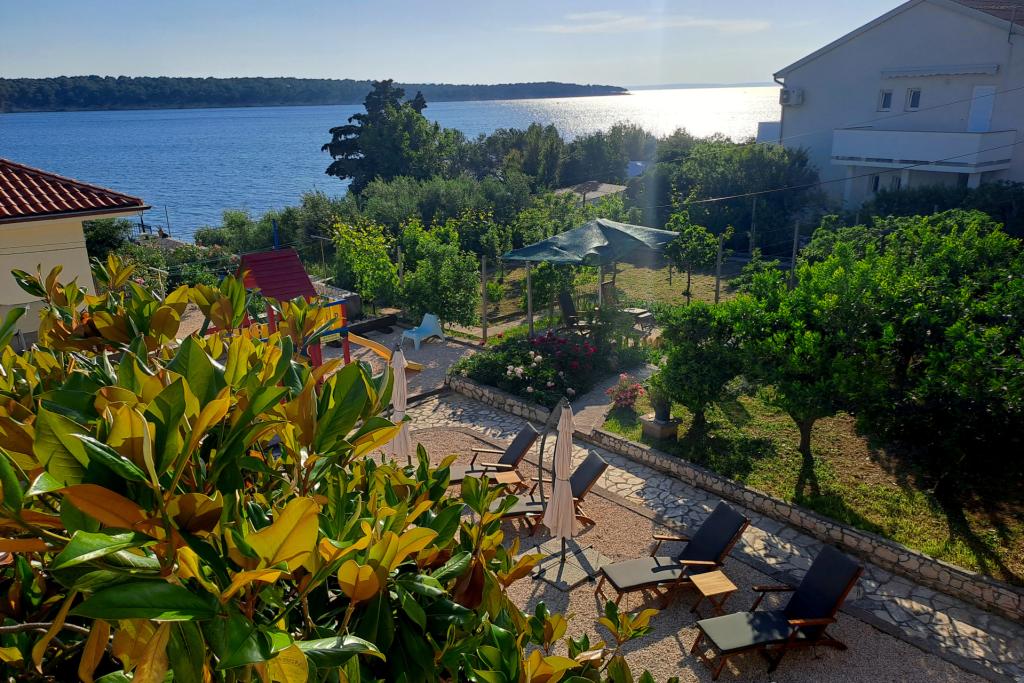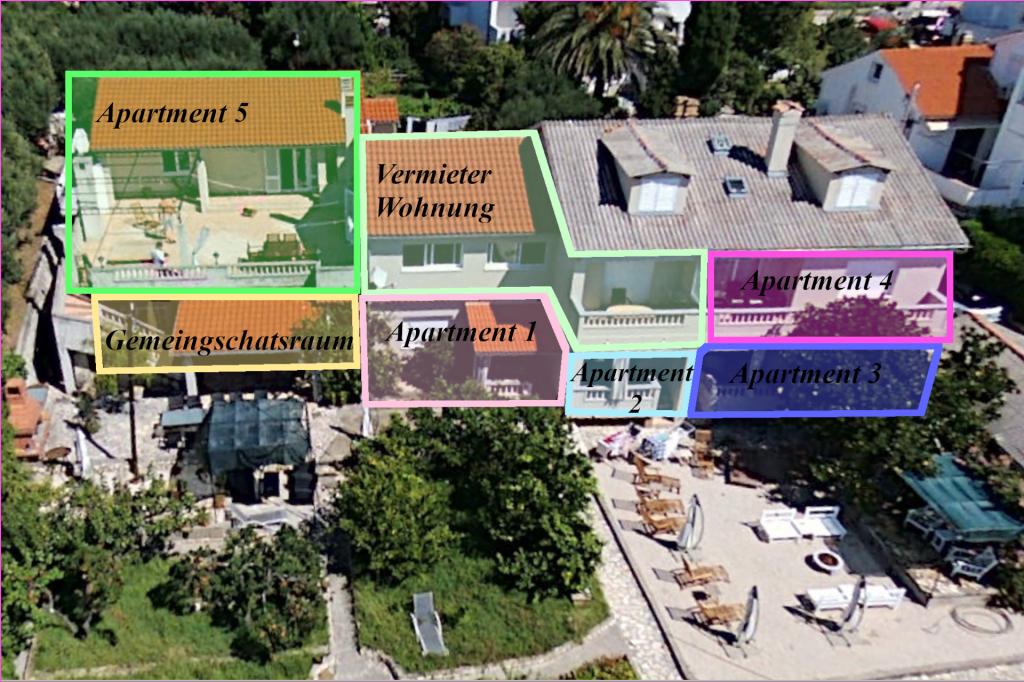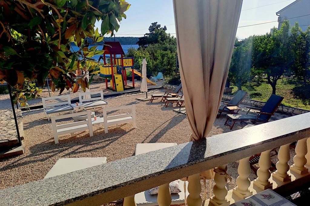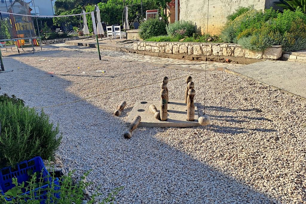 Apartmány 30 m od moře, kotviště pro loď zdarma. Dům ve vlastnictví rodiny Snježana a Slobodana (Bobo) Frankić se nachází v Barbat na ostrově Rab, 4 km od města Rab a 6 km od trajektu. Byla postavena jako jednopatrová budova s pěti byty k pronájmu, společenskou místností pro zábavu a jedním apartmánem, kde bydlí hostitelé. Dům se nachází v klidné oblasti, v krásné vilové čtvrti, je jen 30 metrů od moře a je obklopený parkovištěm, květinovou zahradou, ovocným sadem, slunnou terasou s lehátky, hřištěm pro děti i dospělé a společnou terasou. K dispozici je pět apartmánů pro 4 osoby: Apartmán 1, Apartmán 3, Apartmán 4, Apartmán 5 a jeden apartmán pro 2 osoby: Apartmán 2. Dva apartmány pro 4 osoby: Apartmán 1, Apartmán 3 a jeden apartmán pro 2 osoby: Apartmán 2 jsou se nachází v přízemí a dva apartmány pro čtyři osoby: Apartmán 4, Apartmán 5 v prvním patře (hostitelé a pronajatý Apartmán 5 sdílejí terasu). Všechny apartmány mají klimatizaci. Wifi zdarma