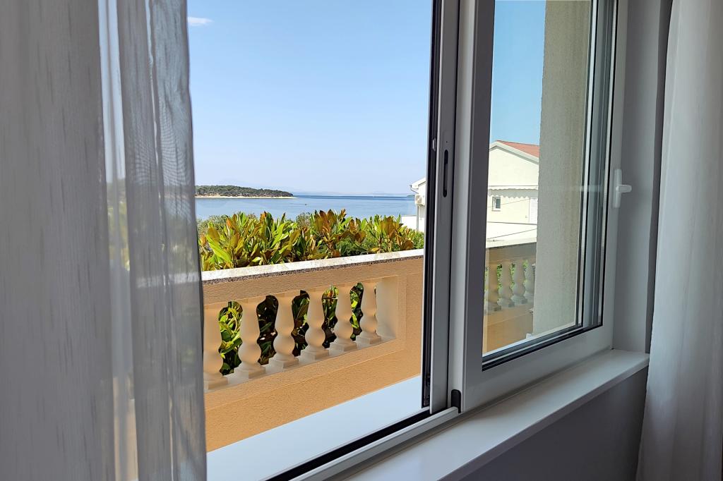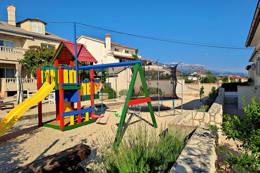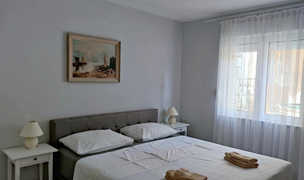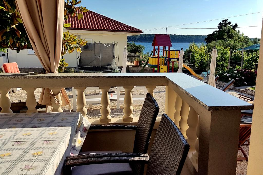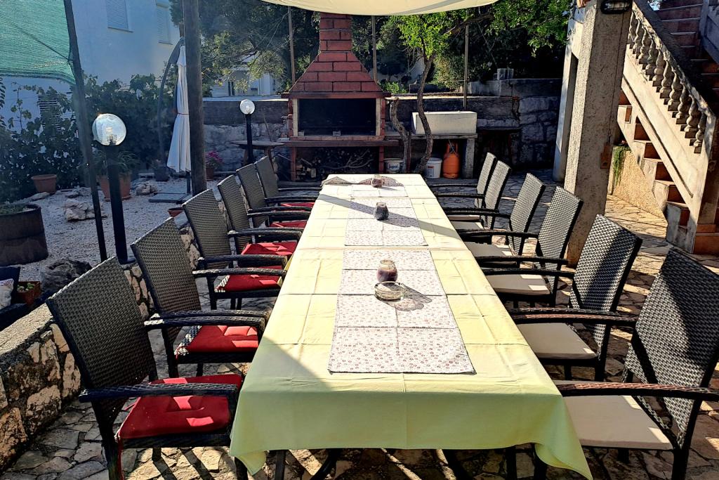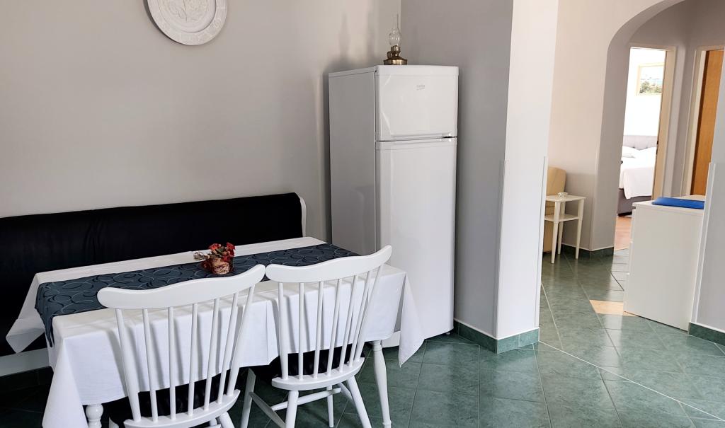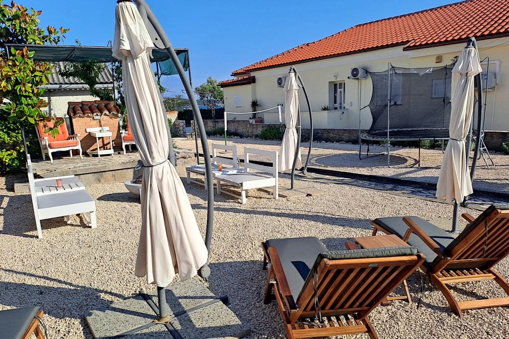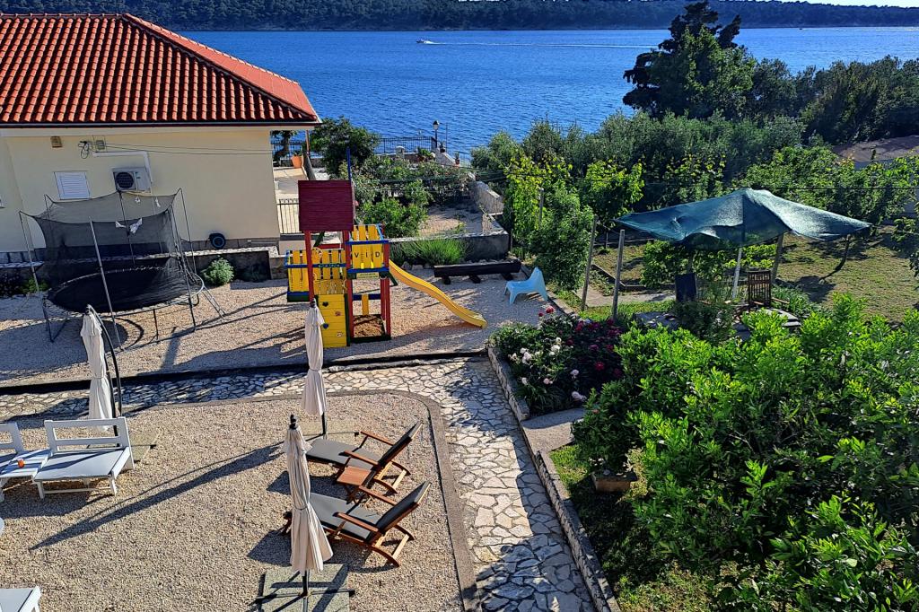 Apartmány 30 m od moře, kotviště pro loď zdarma. Dům ve vlastnictví rodiny Snježana a Slobodana (Bobo) Frankić se nachází v Barbat na ostrově Rab, 4 km od města Rab a 6 km od trajektu. Byla postavena jako jednopatrová budova s pěti byty k pronájmu, společenskou místností pro zábavu a jedním apartmánem, kde bydlí hostitelé. Dům se nachází v klidné oblasti, v krásné vilové čtvrti, je jen 30 metrů od moře a je obklopený parkovištěm, květinovou zahradou, ovocným sadem, slunnou terasou s lehátky, hřištěm pro děti i dospělé a společnou terasou. K dispozici je pět apartmánů pro 4 osoby: Apartmán 1, Apartmán 3, Apartmán 4, Apartmán 5 a jeden apartmán pro 2 osoby: Apartmán 2. Dva apartmány pro 4 osoby: Apartmán 1, Apartmán 3 a jeden apartmán pro 2 osoby: Apartmán 2 jsou se nachází v přízemí a dva apartmány pro čtyři osoby: Apartmán 4, Apartmán 5 v prvním patře (hostitelé a pronajatý Apartmán 5 sdílejí terasu). Všechny apartmány mají klimatizaci. Wifi zdarma
