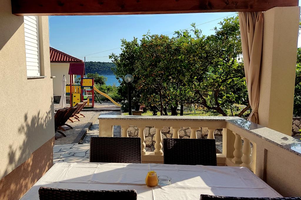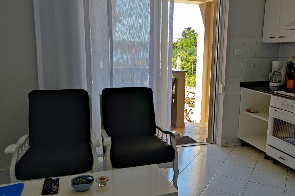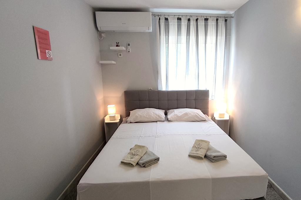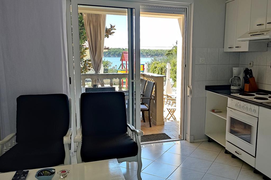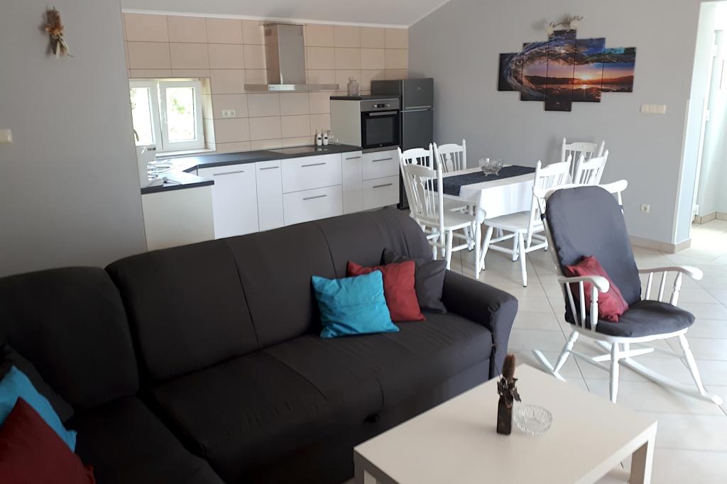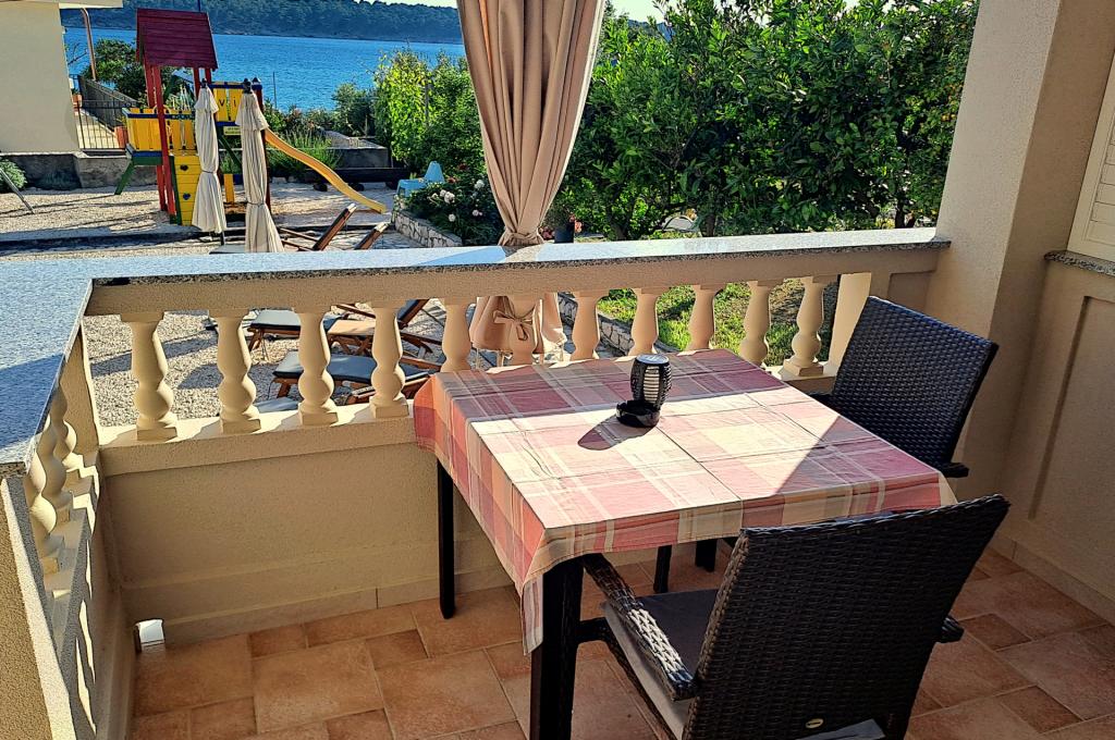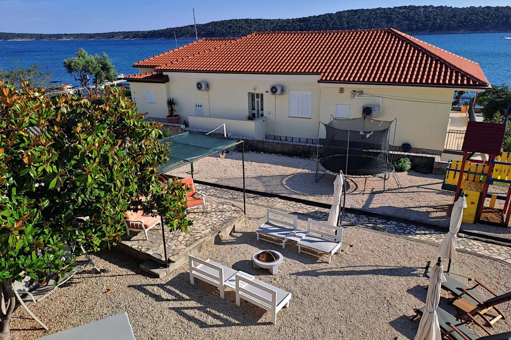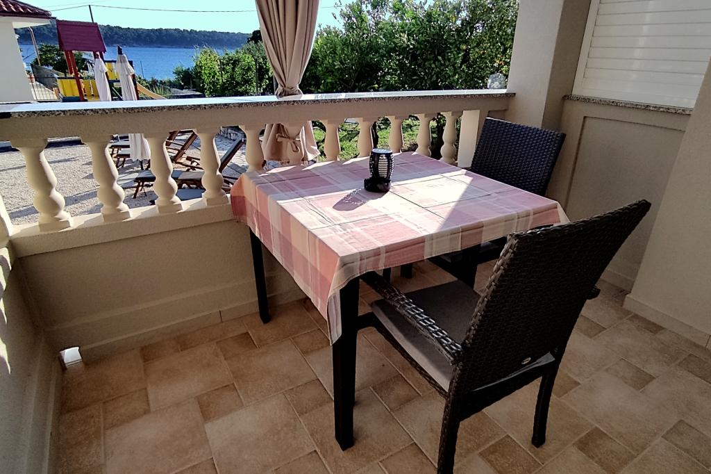 Apartmány 30 m od moře, kotviště pro loď zdarma. Dům ve vlastnictví rodiny Snježana a Slobodana (Bobo) Frankić se nachází v Barbat na ostrově Rab, 4 km od města Rab a 6 km od trajektu. Byla postavena jako jednopatrová budova s pěti byty k pronájmu, společenskou místností pro zábavu a jedním apartmánem, kde bydlí hostitelé. Dům se nachází v klidné oblasti, v krásné vilové čtvrti, je jen 30 metrů od moře a je obklopený parkovištěm, květinovou zahradou, ovocným sadem, slunnou terasou s lehátky, hřištěm pro děti i dospělé a společnou terasou. K dispozici je pět apartmánů pro 4 osoby: Apartmán 1, Apartmán 3, Apartmán 4, Apartmán 5 a jeden apartmán pro 2 osoby: Apartmán 2. Dva apartmány pro 4 osoby: Apartmán 1, Apartmán 3 a jeden apartmán pro 2 osoby: Apartmán 2 jsou se nachází v přízemí a dva apartmány pro čtyři osoby: Apartmán 4, Apartmán 5 v prvním patře (hostitelé a pronajatý Apartmán 5 sdílejí terasu). Všechny apartmány mají klimatizaci. Wifi zdarma