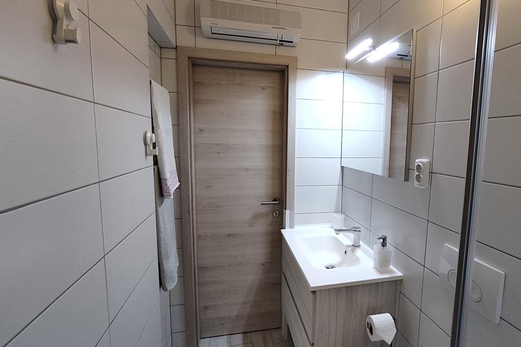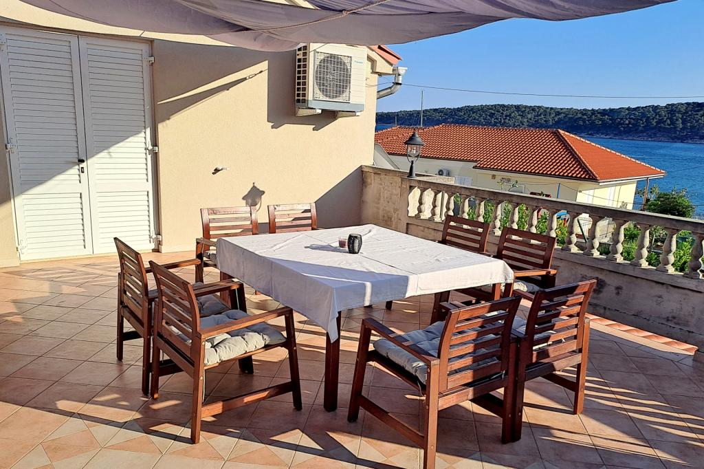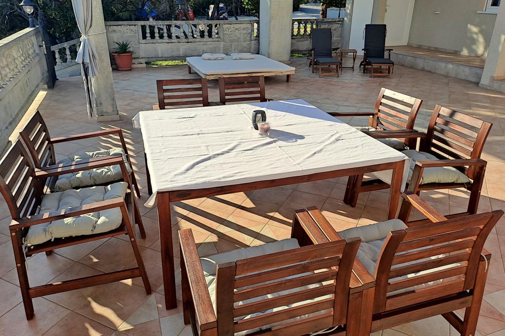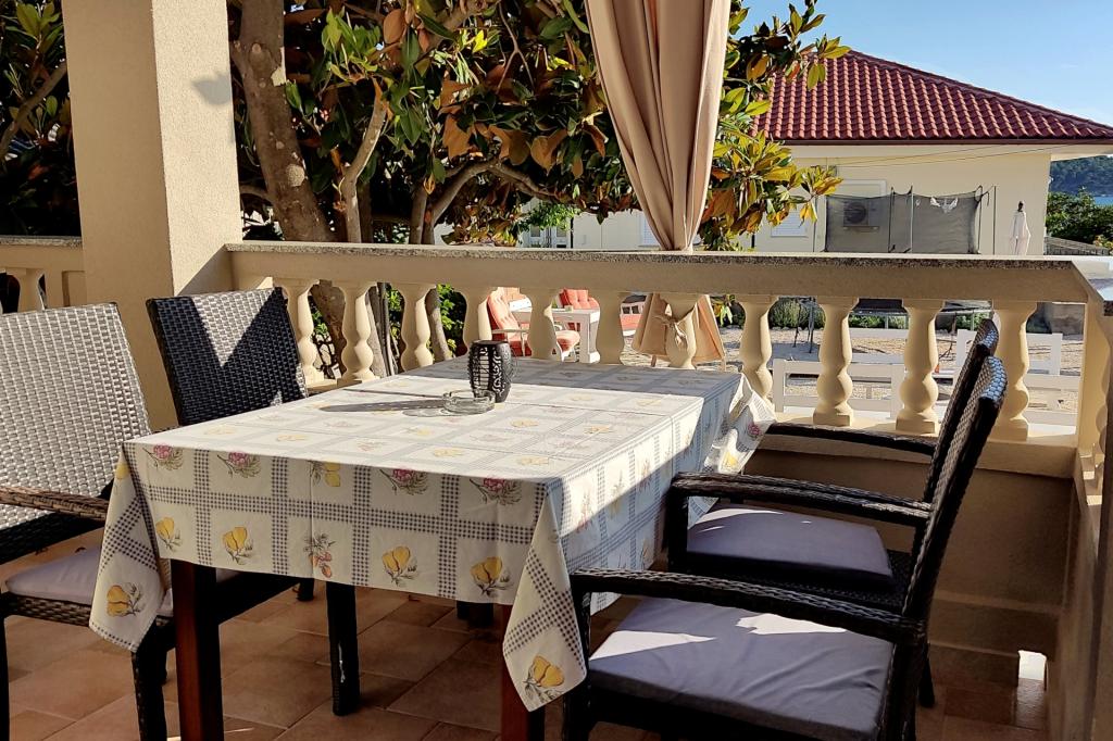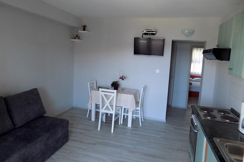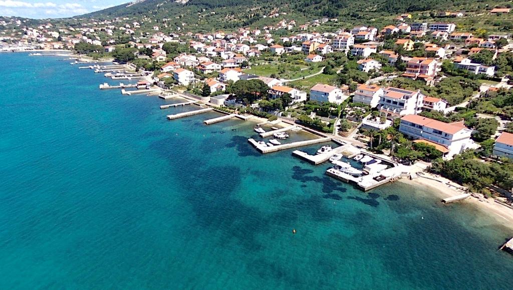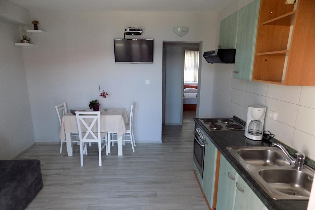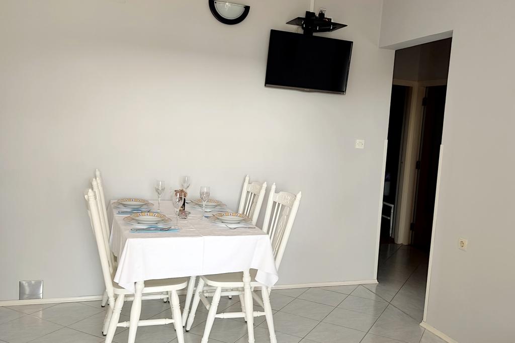 Apartmány 30 m od moře, kotviště pro loď zdarma. Dům ve vlastnictví rodiny Snježana a Slobodana (Bobo) Frankić se nachází v Barbat na ostrově Rab, 4 km od města Rab a 6 km od trajektu. Byla postavena jako jednopatrová budova s pěti byty k pronájmu, společenskou místností pro zábavu a jedním apartmánem, kde bydlí hostitelé. Dům se nachází v klidné oblasti, v krásné vilové čtvrti, je jen 30 metrů od moře a je obklopený parkovištěm, květinovou zahradou, ovocným sadem, slunnou terasou s lehátky, hřištěm pro děti i dospělé a společnou terasou. K dispozici je pět apartmánů pro 4 osoby: Apartmán 1, Apartmán 3, Apartmán 4, Apartmán 5 a jeden apartmán pro 2 osoby: Apartmán 2. Dva apartmány pro 4 osoby: Apartmán 1, Apartmán 3 a jeden apartmán pro 2 osoby: Apartmán 2 jsou se nachází v přízemí a dva apartmány pro čtyři osoby: Apartmán 4, Apartmán 5 v prvním patře (hostitelé a pronajatý Apartmán 5 sdílejí terasu). Všechny apartmány mají klimatizaci. Wifi zdarma