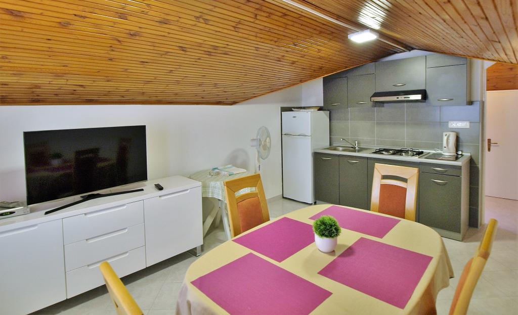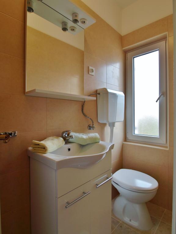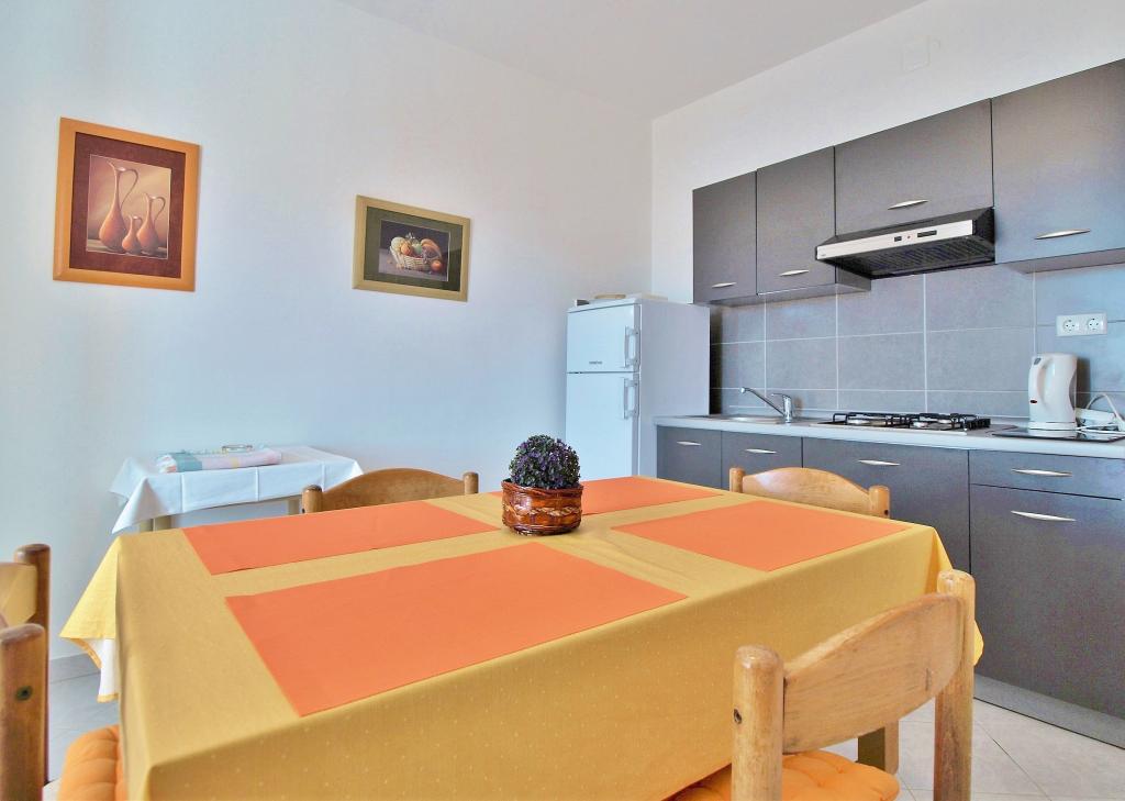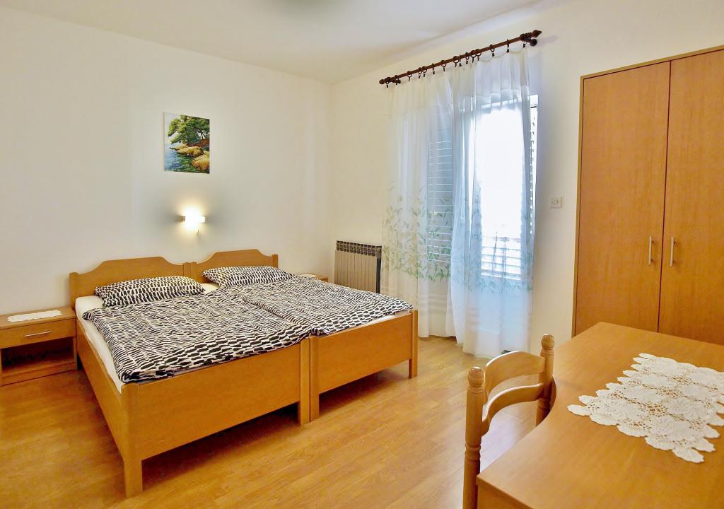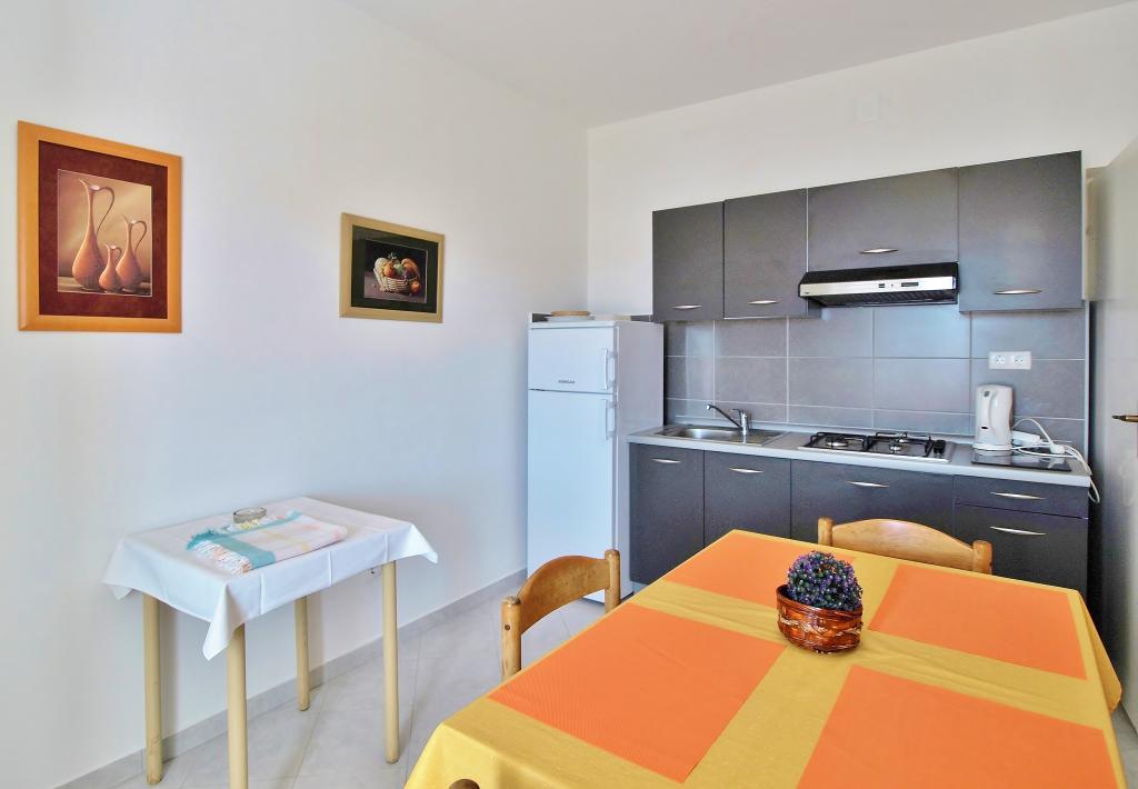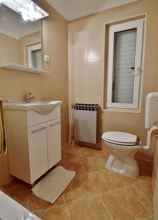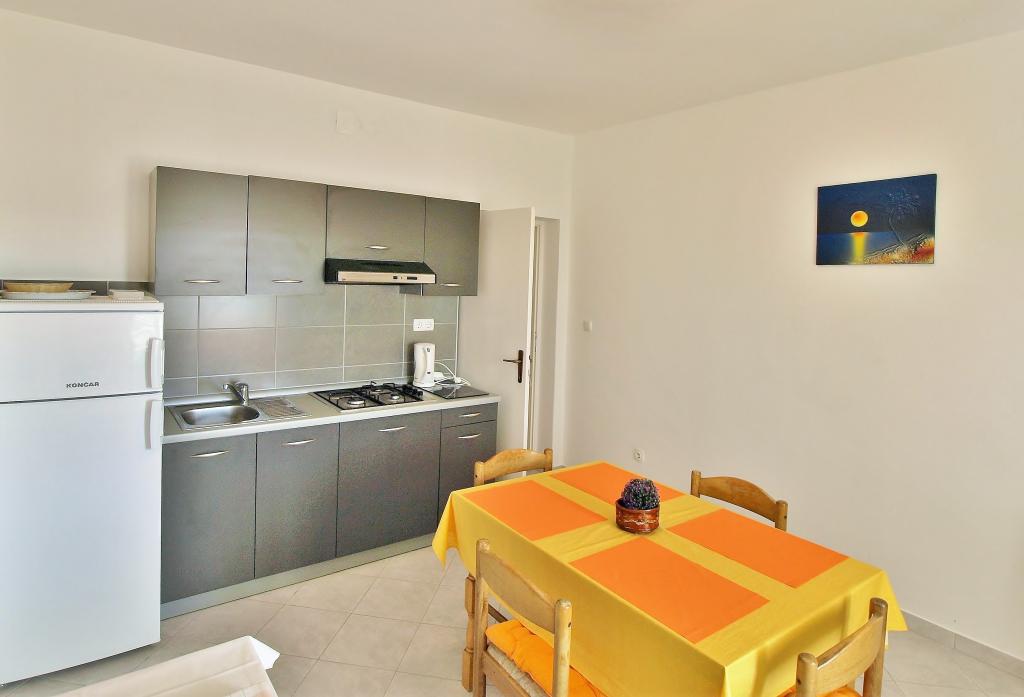 Vážení hosté! Nabízíme apartmány pro 4 osoby. Každý apartmán se skládá ze dvou dvoulůžkových pokojů, kuchyně s jídelnou a také každý pokoj má vlastní koupelnu nebo sprchu/WC. Všechny apartmány mají balkon/terasu s výhledem na moře, mají satelitní TV a jsou klimatizované. Ložní prádlo a ručníky, stejně jako vše potřebné pro příjemnou dovolenou, jsou v apartmánech a na dovolenou není potřeba nic vozit. Ložní prádlo se mění jednou týdně a ručníky dle přání. Venku máme velkou terasu a jídelnu a velký gril / gril na dvoře, který můžete použít podle potřeby. Je zde také možnost použití pračky.