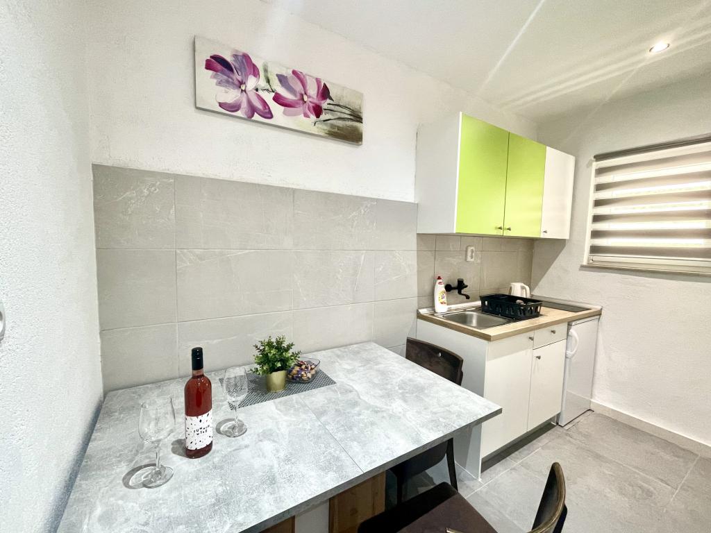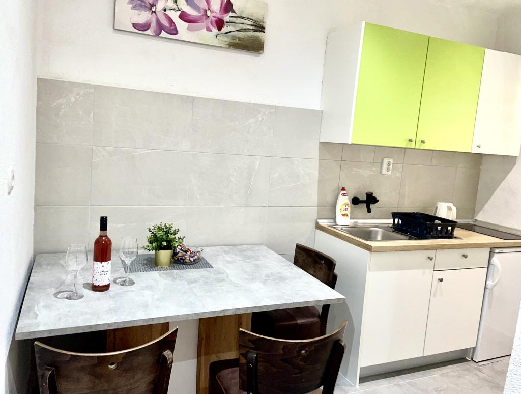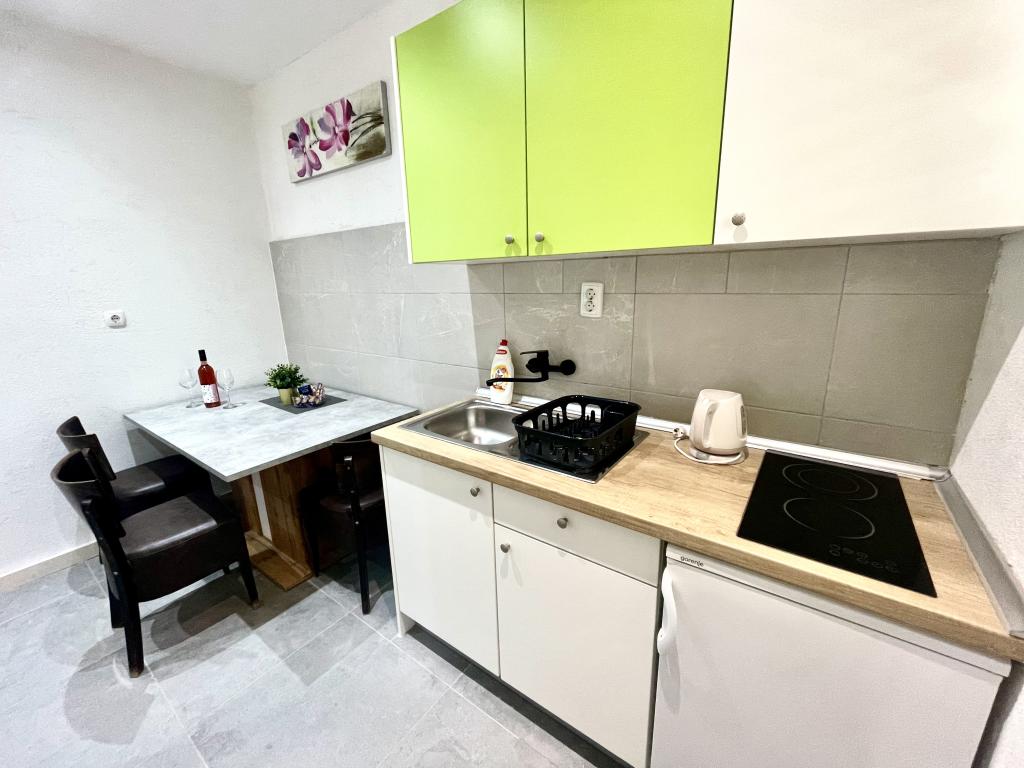 Plně vybavený a kompletně zrekonstruovaný apartmán, který se nachází v první řadě k moři. Objekt se nachází 10 metrů od pláže. V objektu je kavárna, restaurace, kosmetický salon, market, obchod se suvenýry a směnárna. Budova je 40 metrů od přístavu