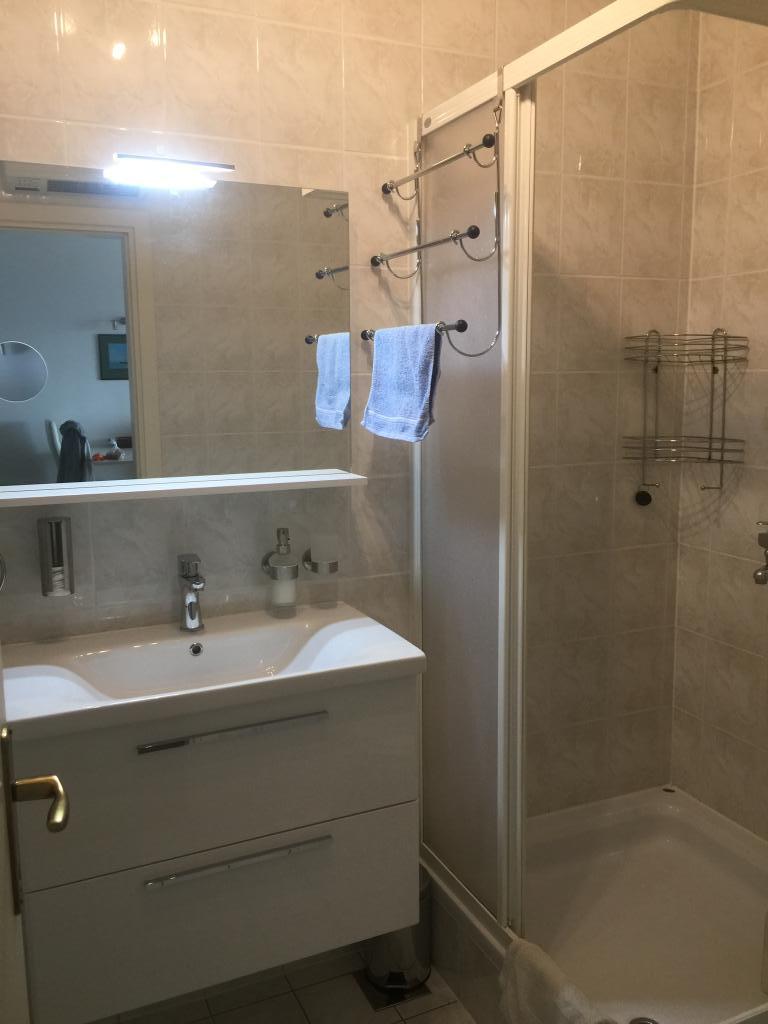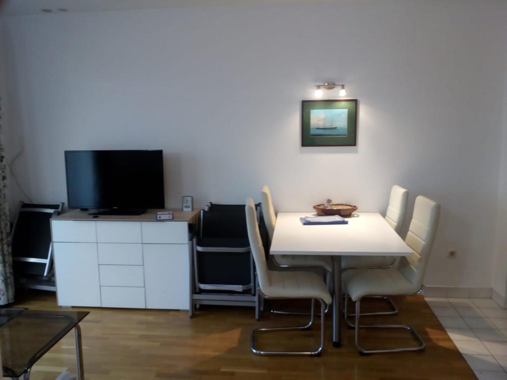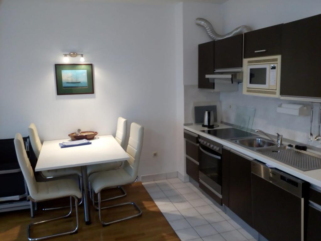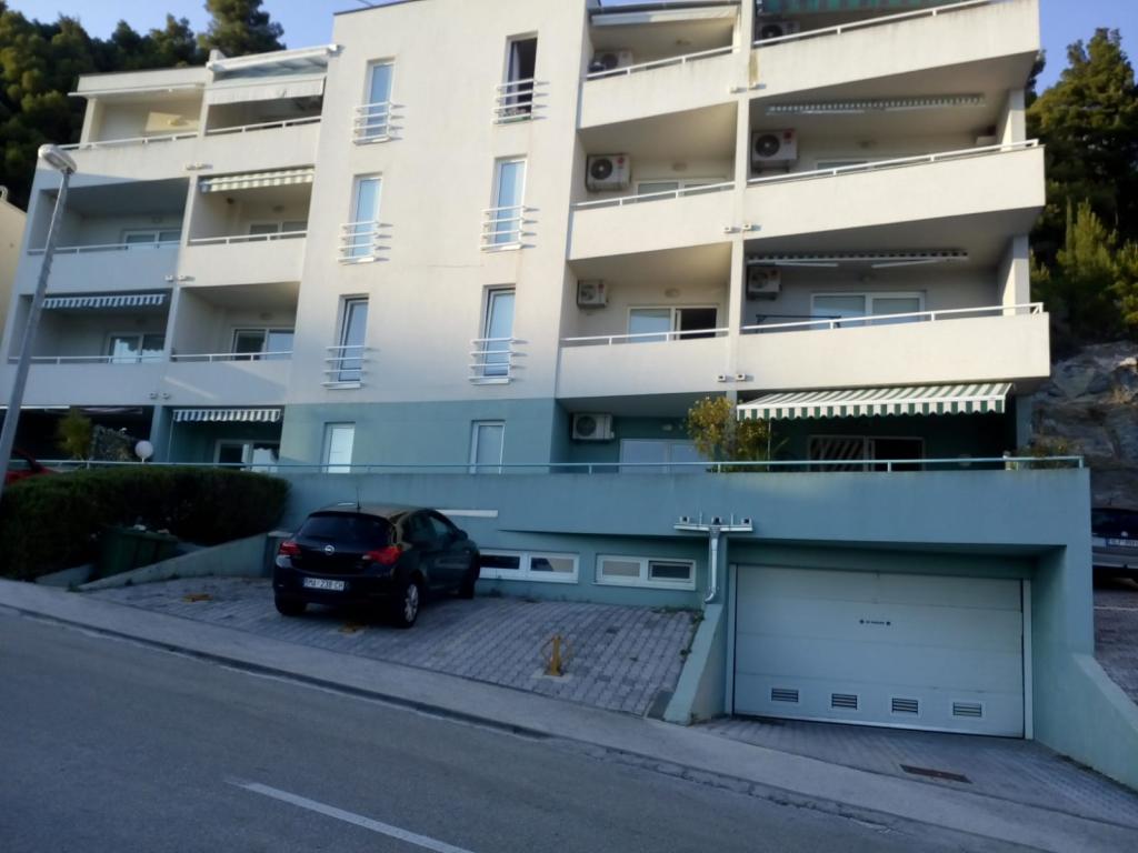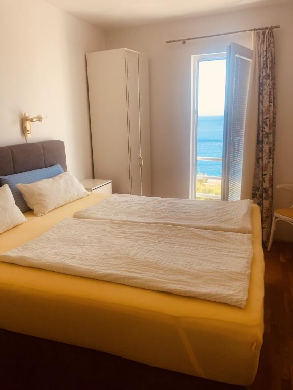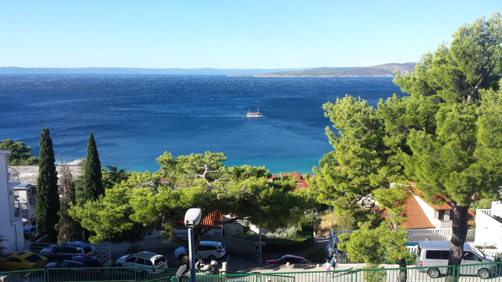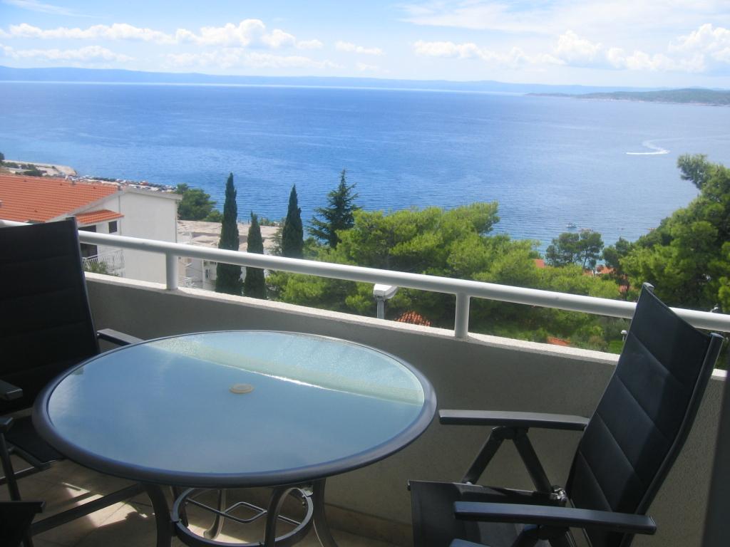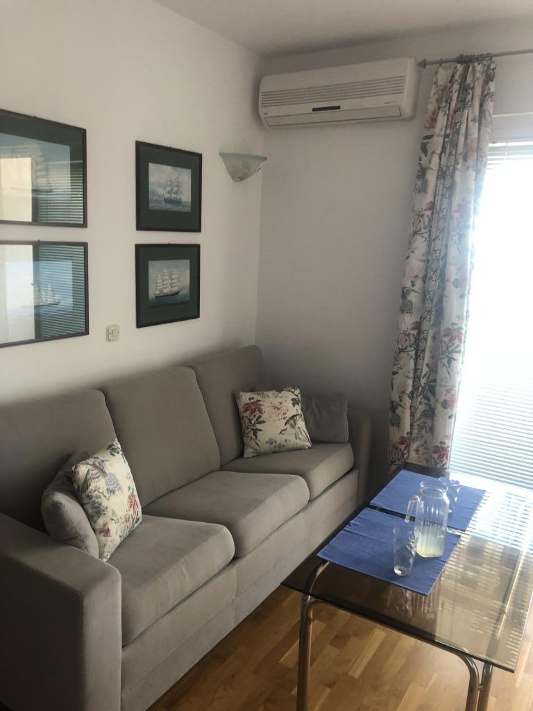 Apartmán o rozloze 45 m² se nachází ve druhém patře a skládá se z ložnice s krásným výhledem na moře, obývacího pokoje s rozkládací pohovkou, která se v okamžiku promění v pohodlnou postel pro dvě osoby, plně vybavené kuchyně s mikrovlnnou troubou, myčkou nádobí, troubou, kávovarem, toustovačem, varnou konvicí, koupelny se sprchou, pračkou a fénem, ručníků, satelitní TV, klimatizace, W-LAN, trezoru, balkonu s výhledem na moře s markýzou, máme garážové stání pro parkování vašeho auta s možností použití jízdních kol.
