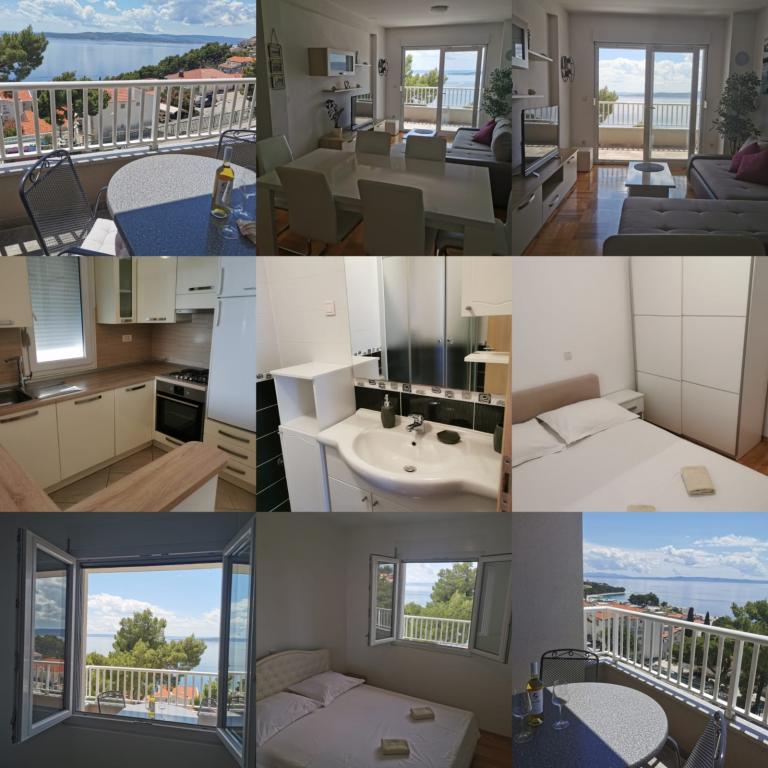 Vítejte! Nový a moderní byt se nachází v klidné části městečka Baška Voda .. V areálu se nachází 5 minut chůze od krásné pláže a 10 minut chůze do centra města. Z balkonu je krásný výhled na moře a ostrovy. Restaurace a obchody jsou snadno přístupné a organizované výlety na ostrovy a horského svahu.