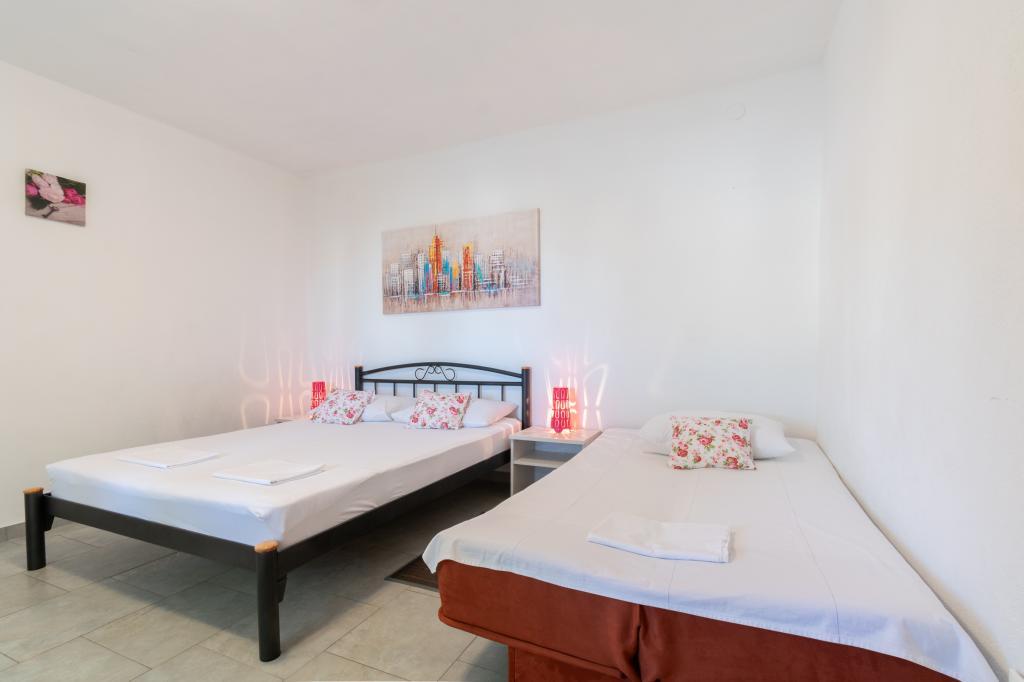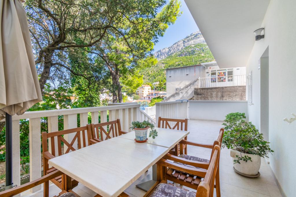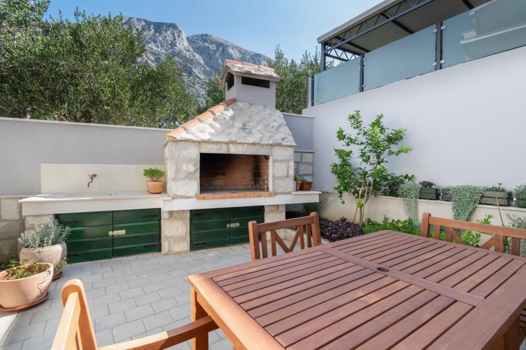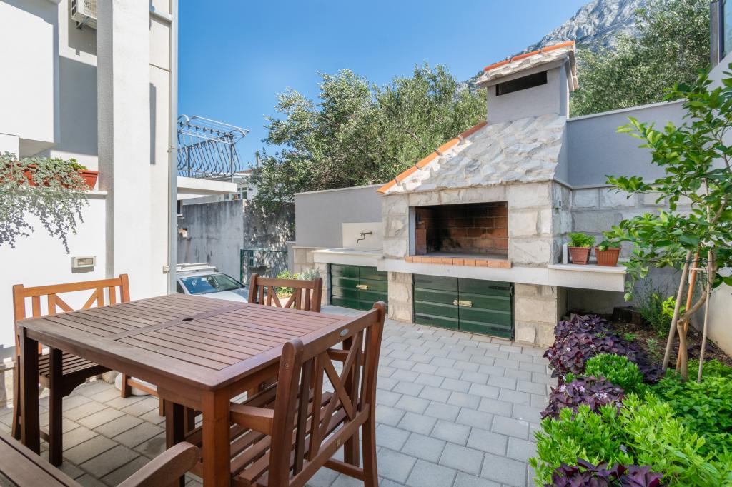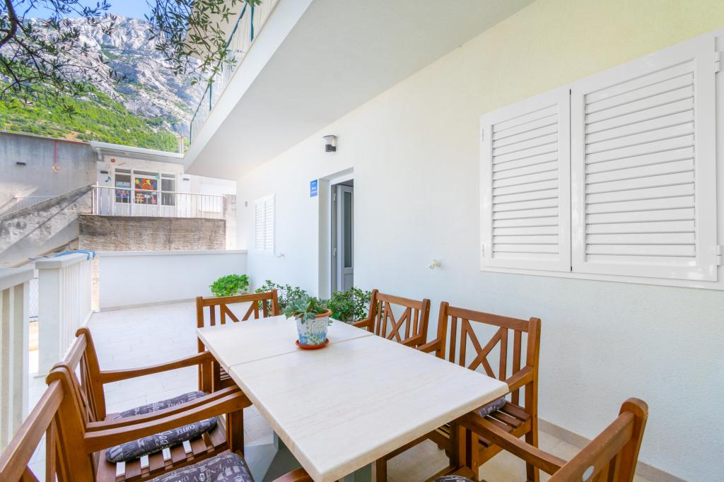 Prostorný a nově zrekonstruovaný třípokojový byt (6+1) se nachází v krásném městě Baška Voda na úpatí Biokova. Apartmán má 2 prostorné pokoje s manželskou postelí a jeden pokoj s manželskou postelí a přistýlkou, 2 koupelny, moderní a vybavenou kuchyň a prostornou terasu s výhledem na Biokovo a moře. Apartmán obsahuje vše, co potřebujete pro bezstarostnou, příjemnou a klidnou dovolenou: velká terasa, klimatizace, wi-fi, LCD/SMART TV, pračka, gril, parkovací místo, ložní prádlo, ručníky. Trh, pekárna, řeznictví, pošta, lékárna, kavárny a pláže jsou jen pár minut chůze od hotelu. Samotné centrum Bašky Vody je jen 5 minut chůze od apartmánu s širokou nabídkou restaurací, stravovacích zařízení a obchodů se suvenýry. Také v létě je zde bohatá nabídka adrenalinových sportů, (vodní skútr, sup board, parasailing), zábava pro nejmenší (nová a atraktivní šlapadla, poloponorka), lehátka. Vzhledem k samotné poloze bytu a blízkosti centra nepotřebujete během roku ani auto.