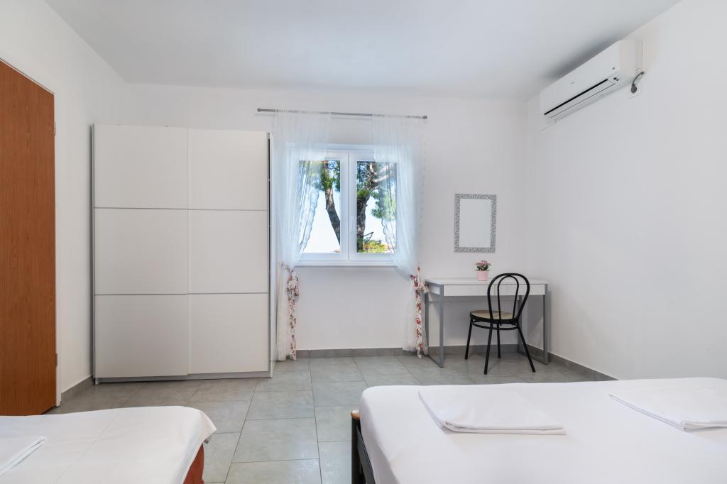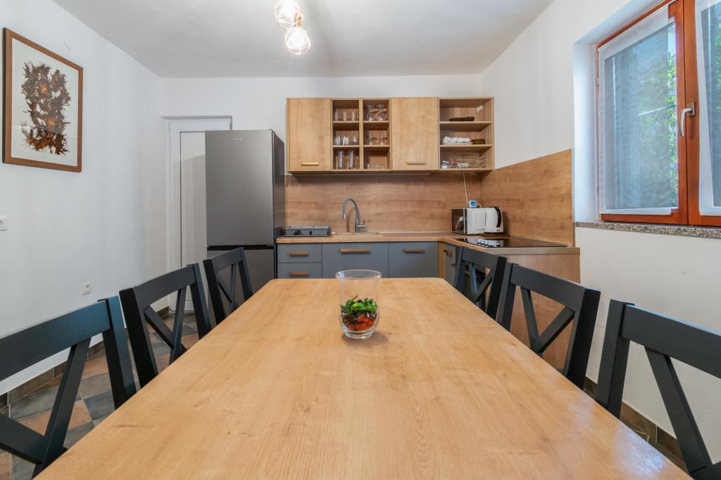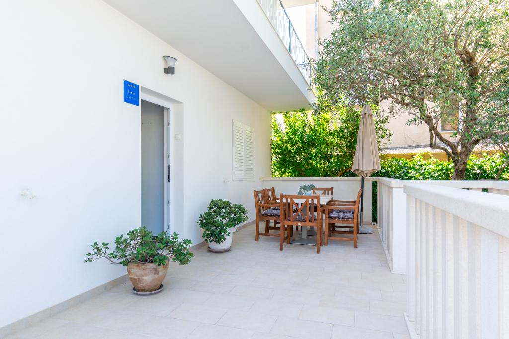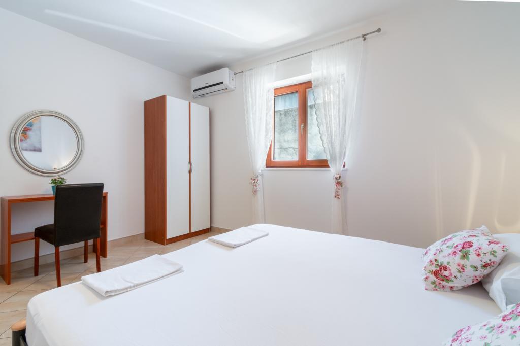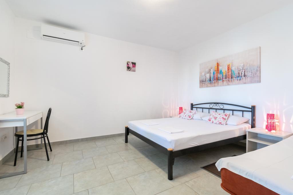 Prostorný a nově zrekonstruovaný třípokojový byt (6+1) se nachází v krásném městě Baška Voda na úpatí Biokova. Apartmán má 2 prostorné pokoje s manželskou postelí a jeden pokoj s manželskou postelí a přistýlkou, 2 koupelny, moderní a vybavenou kuchyň a prostornou terasu s výhledem na Biokovo a moře. Apartmán obsahuje vše, co potřebujete pro bezstarostnou, příjemnou a klidnou dovolenou: velká terasa, klimatizace, wi-fi, LCD/SMART TV, pračka, gril, parkovací místo, ložní prádlo, ručníky. Trh, pekárna, řeznictví, pošta, lékárna, kavárny a pláže jsou jen pár minut chůze od hotelu. Samotné centrum Bašky Vody je jen 5 minut chůze od apartmánu s širokou nabídkou restaurací, stravovacích zařízení a obchodů se suvenýry. Také v létě je zde bohatá nabídka adrenalinových sportů, (vodní skútr, sup board, parasailing), zábava pro nejmenší (nová a atraktivní šlapadla, poloponorka), lehátka. Vzhledem k samotné poloze bytu a blízkosti centra nepotřebujete během roku ani auto.