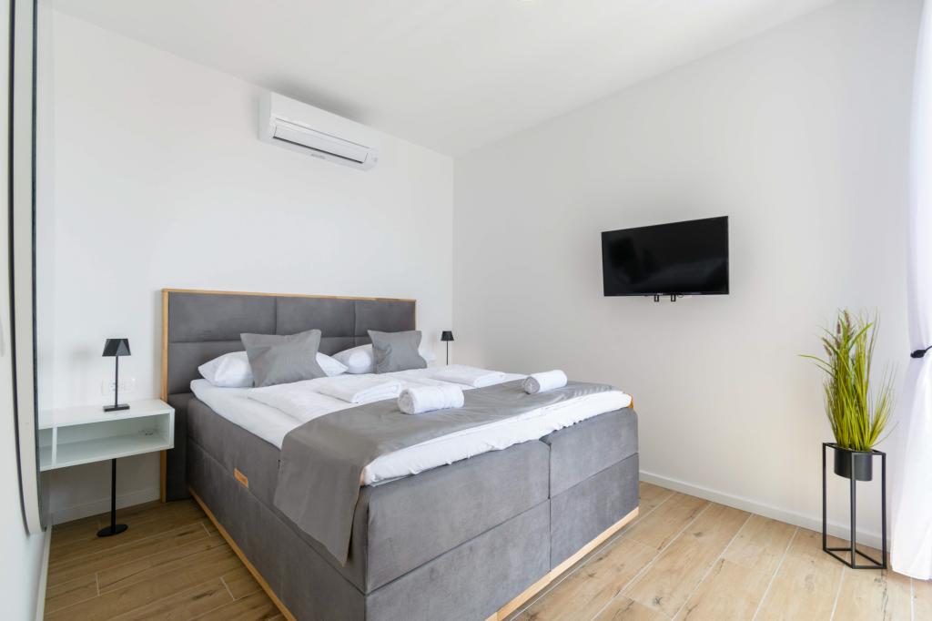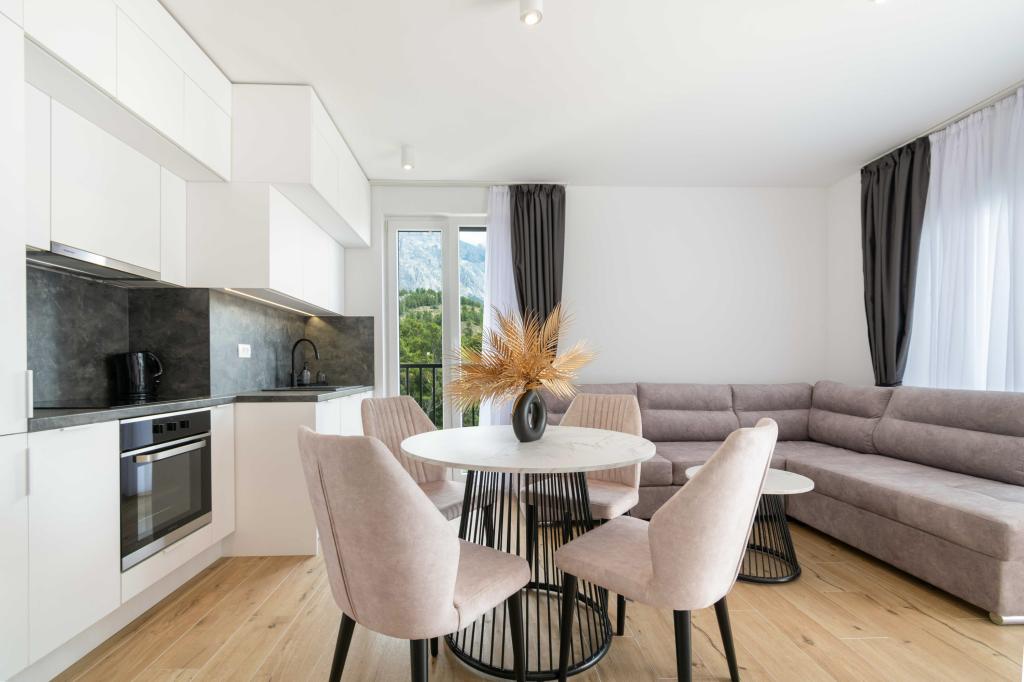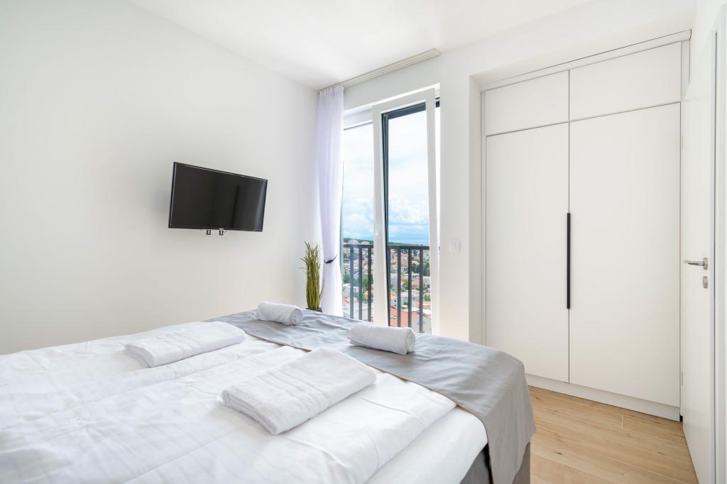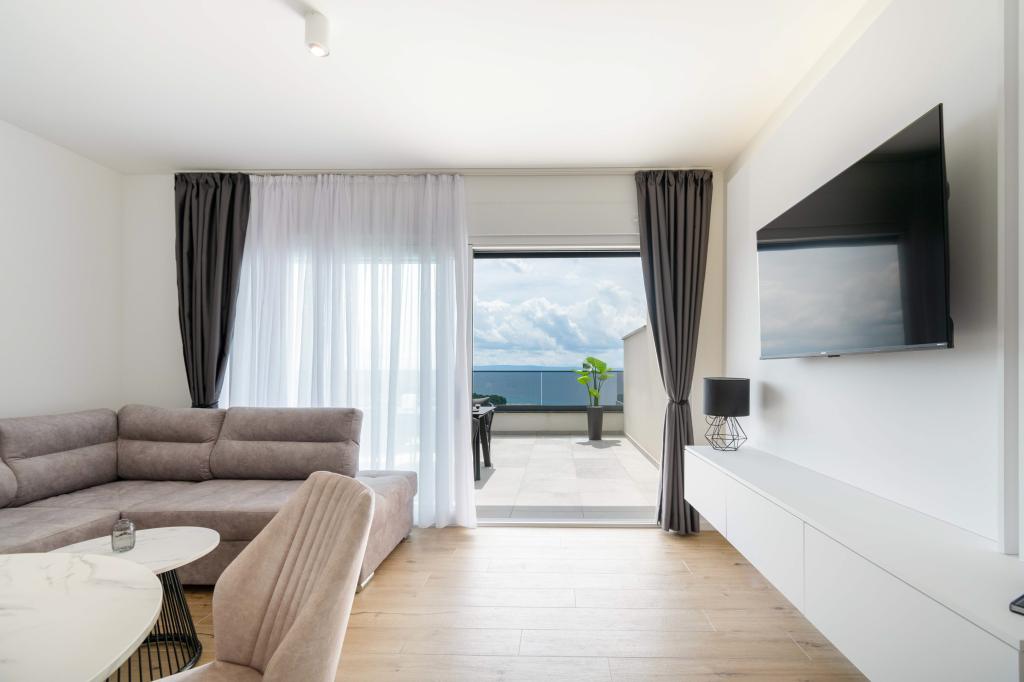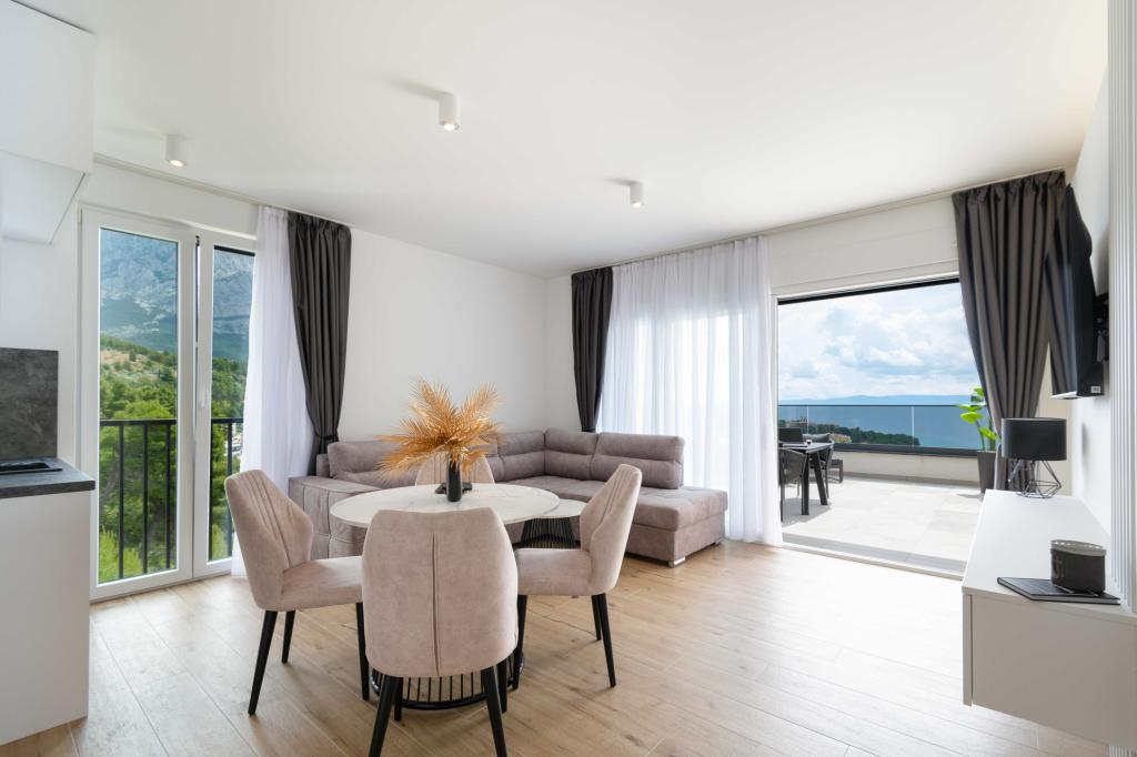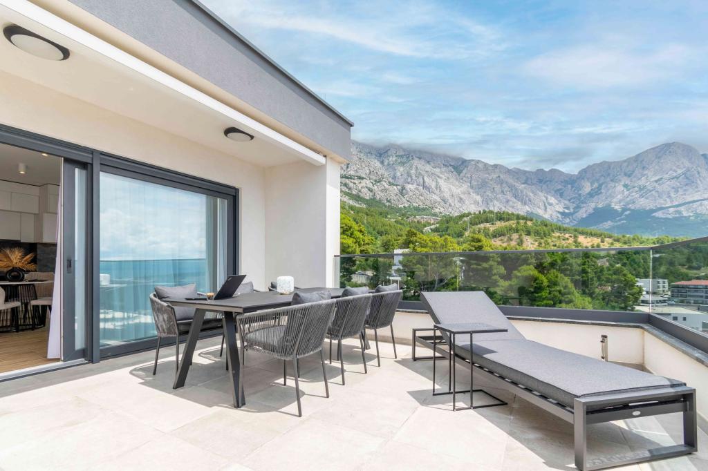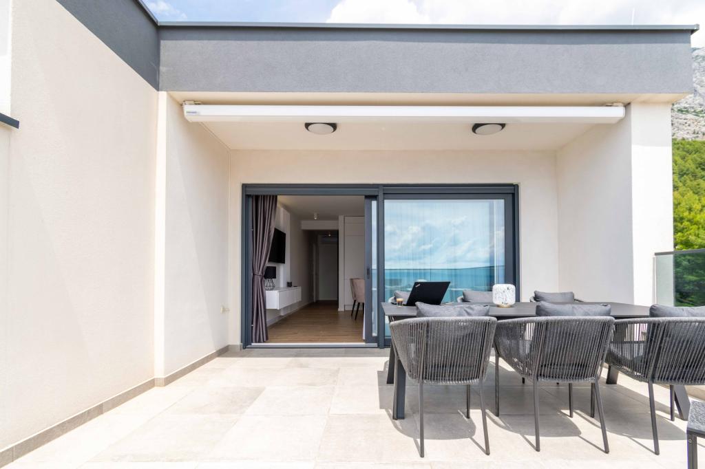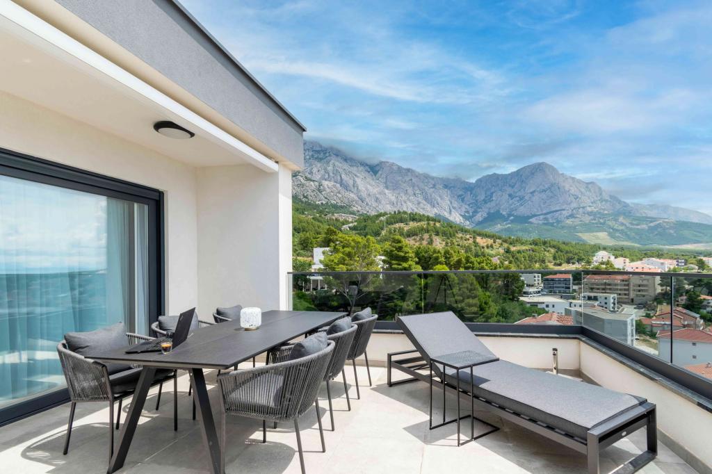 Apartmán Sky nabízí speciální ubytování s nezapomenutelným výhledem na moře, Brač a Bašku Vodu. Tento moderní apartmán se skládá z 1 ložnice, obývacího pokoje s rozkládací pohovkou a velké terasy s nábytkem a lehátky. Za domem máte vlastní parkovací místo.