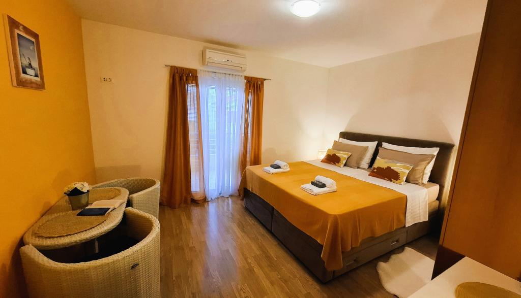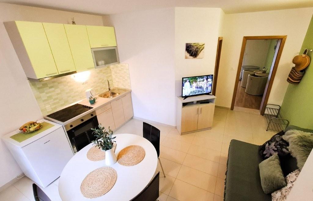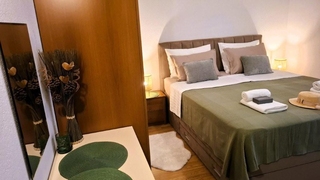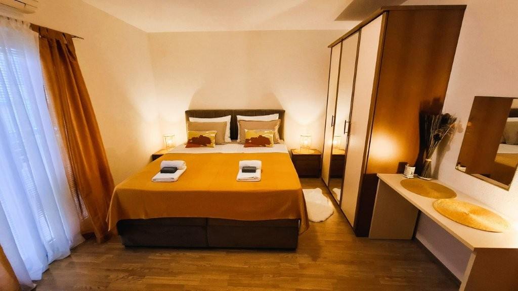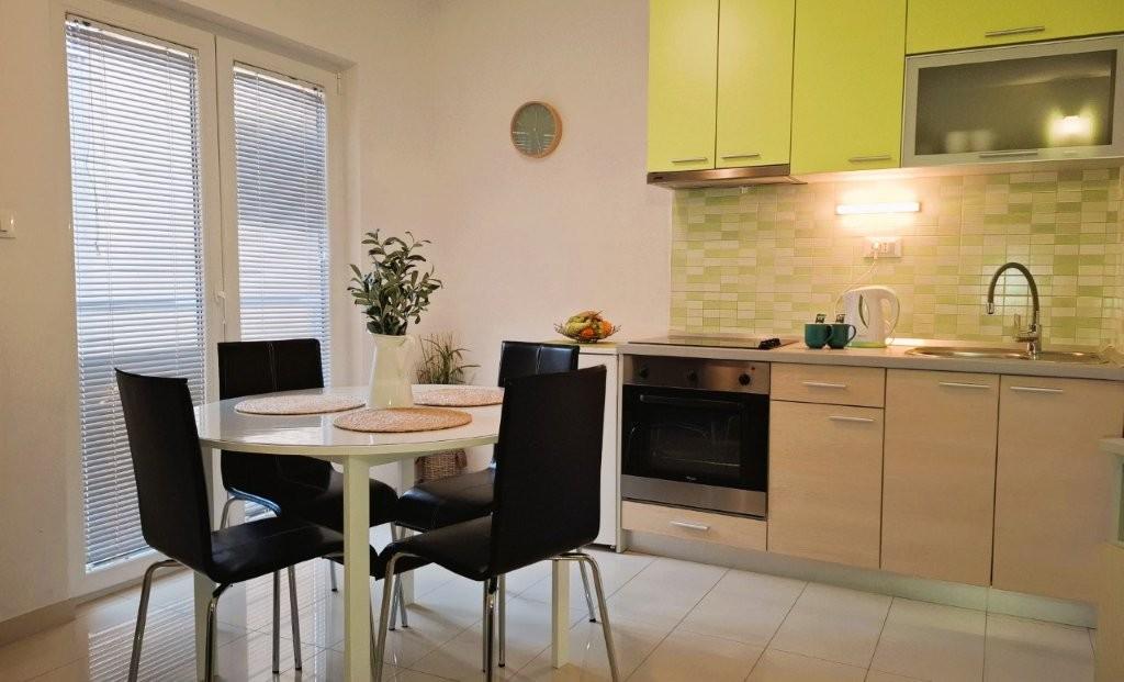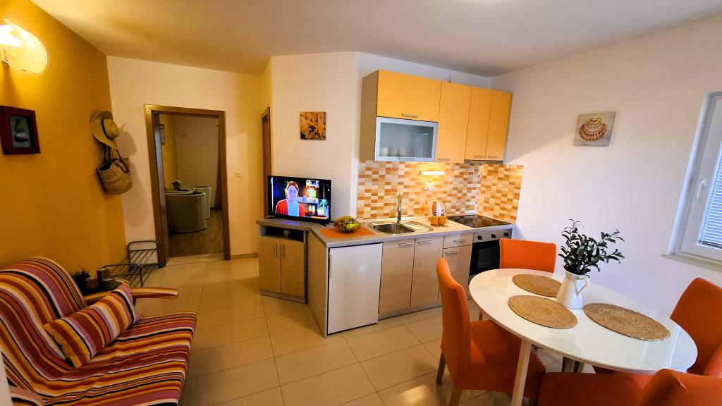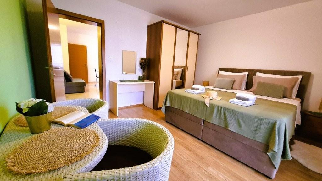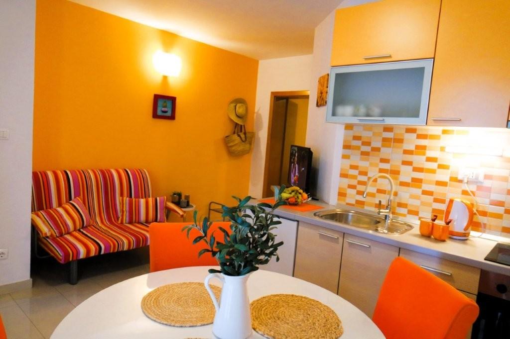 Moderně vybavené apartmány Harmonia jsou ideální volbou pro pohodlnou rodinnou dovolenou nebo pro páry hledající pohodlné ubytování v blízkosti pláže. Asi 200m od pláže Nikola, v atraktivní oblasti Baška Voda a nedaleko od centra s krásným bočním výhledem na moře a pohoří Biokovo. Nabízíme ubytování v zelených a oranžových apartmánech pro 2 dospělé s 2 malými dětmi a v tyrkysovém apartmánu pro 2 dospělé s ev. 1 dítě. Každý apartmán má rozlohu 40 m2, má velkou ložnici, obývací pokoj s plně vybavenou kuchyní, stolem a židlemi a rozkládací pohovkou, koupelnu a terasu. Zelené a oranžové apartmány se nacházejí v prvním patře rodinného domu a mají velké balkony s bočním výhledem na moře, zatímco tyrkysový byt se nachází v suterénu domu bez výhledu na moře, s velkou terasou a křesly v salonku. Každý apartmán je plně vybaven, vyzařuje čistotu a světlé barvy, díky nimž se budete cítit pohodlně a budete mít příjemnou dovolenou.