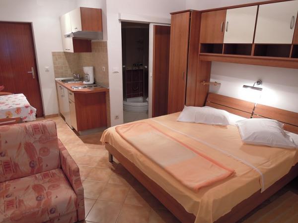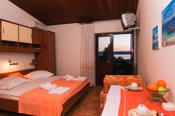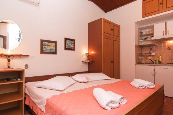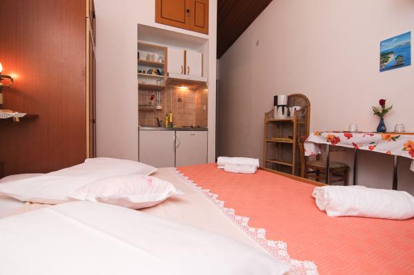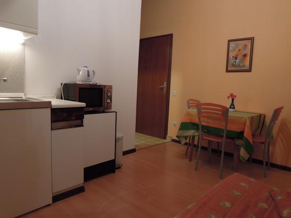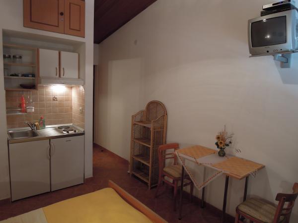 Studio je velmi úhledné. Hostitelé jsou skvělí, přivítali nás domácí pálenkou a ovocem, které osobně pěstují. Studio vybavené vším, co potřebujete k pobytu na moři, má z balkonu nádherný výhled na moře, což jsme hodně využívali, protože jsme tam zůstali s 11měsíčním miminkem. Dokonce jsme dostali zdarma postýlku pro naše dítě. Všechna doporučení.