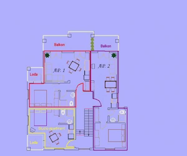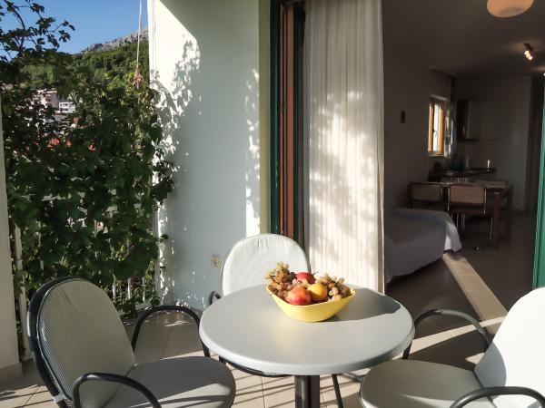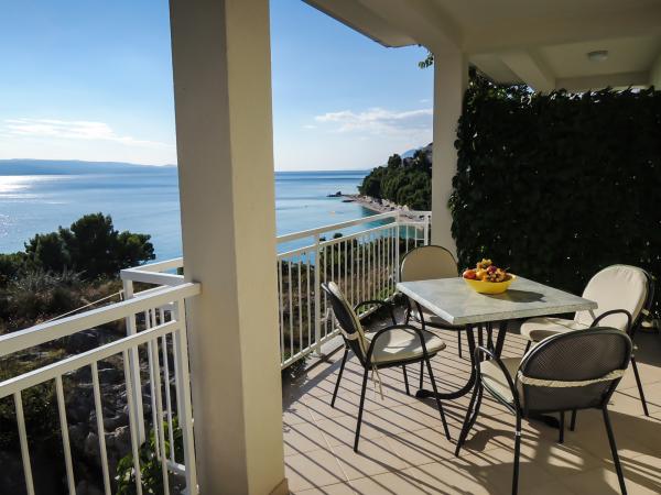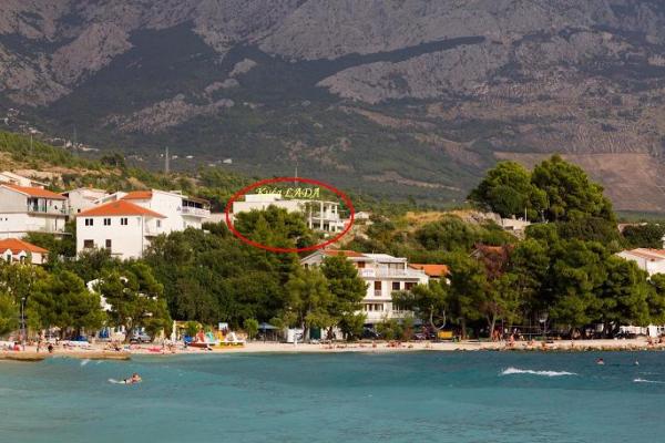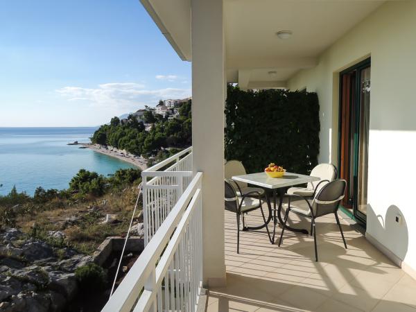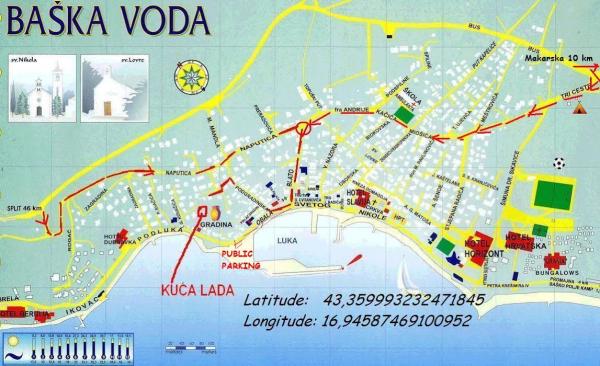 Apartmány s výhledem na moře, mzdy, a ostrovy, se nachází v prvním patře domu se nachází v klidné části letoviska Baška Voda, na malém kopci zvaném Gradina 20 m nad hladinou moře a 30 m od moře, 2 -3 minuty od nejkrásnější pláže a 5 minut od centra letoviska Baška Voda. Soukromé parkování před domem.