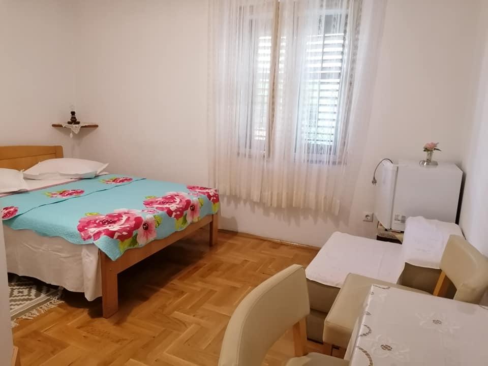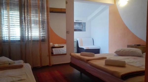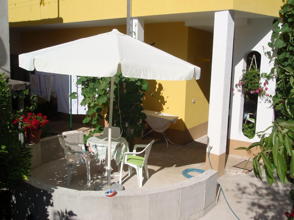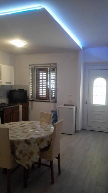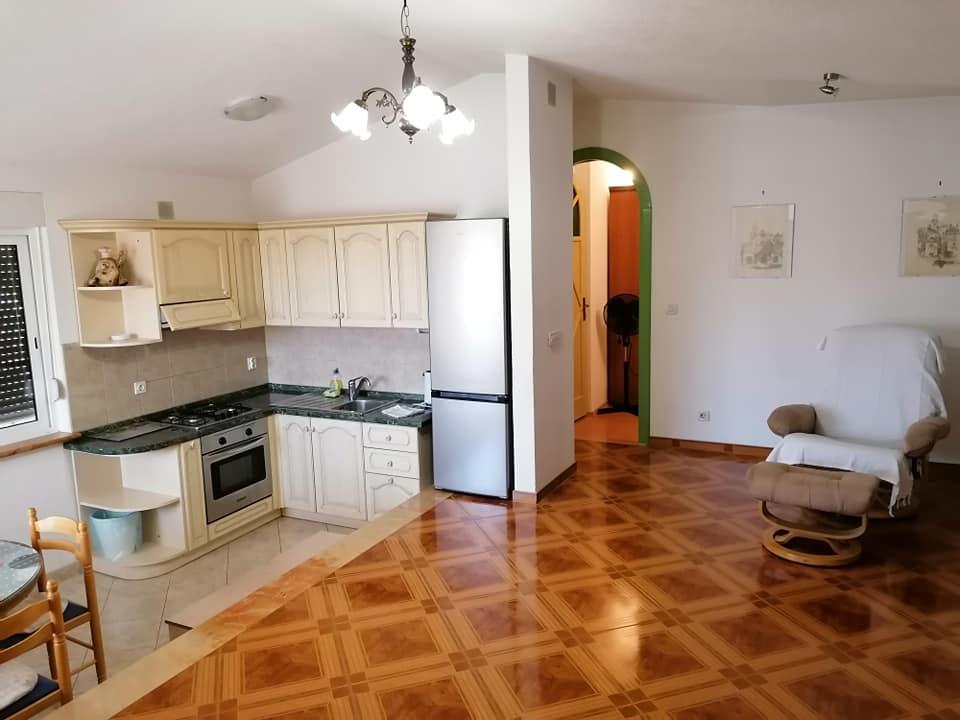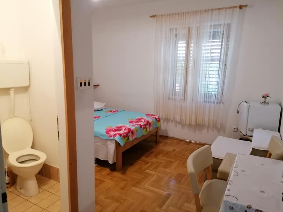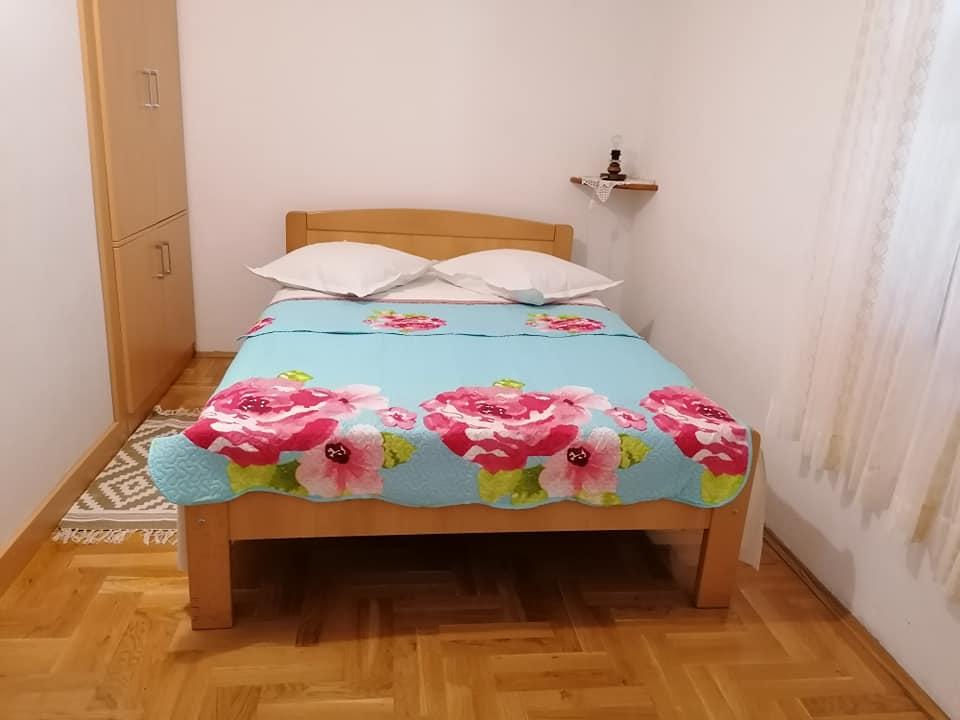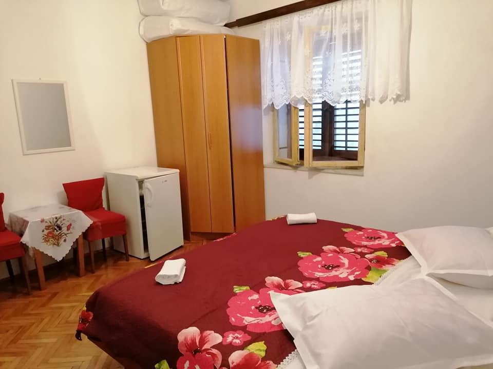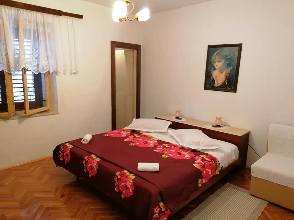 , Byt, Ubytovací jednotka je v prvním patře. Obsah: Dvě ložnice - jeden třílůžkový a jeden dvoulůžkový - každý pokoj má vlastní WC-sprchu, TV, klimatizaci, lednici. Byt má také jednu kuchyň a prostornou terasu / podél. 12 m /. Byt je kompletně vybaven ložním prádlem, ručníky, kuchyňkou s kuchyňským koutem, wi-fi, vyhrazeným parkovištěm. Vzdálenost od pláže je 150 m. Vzhledem k tomu, byt je v centru obce všechny potřebné servisní zařízení jako; restaurace, kavárny, hotely, různé terasy, banka, pošta, ambulance atd., se nacházejí od 50 do max. 200 m. Host může také nabídnout jízdní kola pro rekreaci, 7 m loď s kapitánem pro jednodenní výlety do zajímavých destinací a rybaření, stejně jako různé turistické informace během vašeho pobytu. Pronajímatel je vám k dispozici.