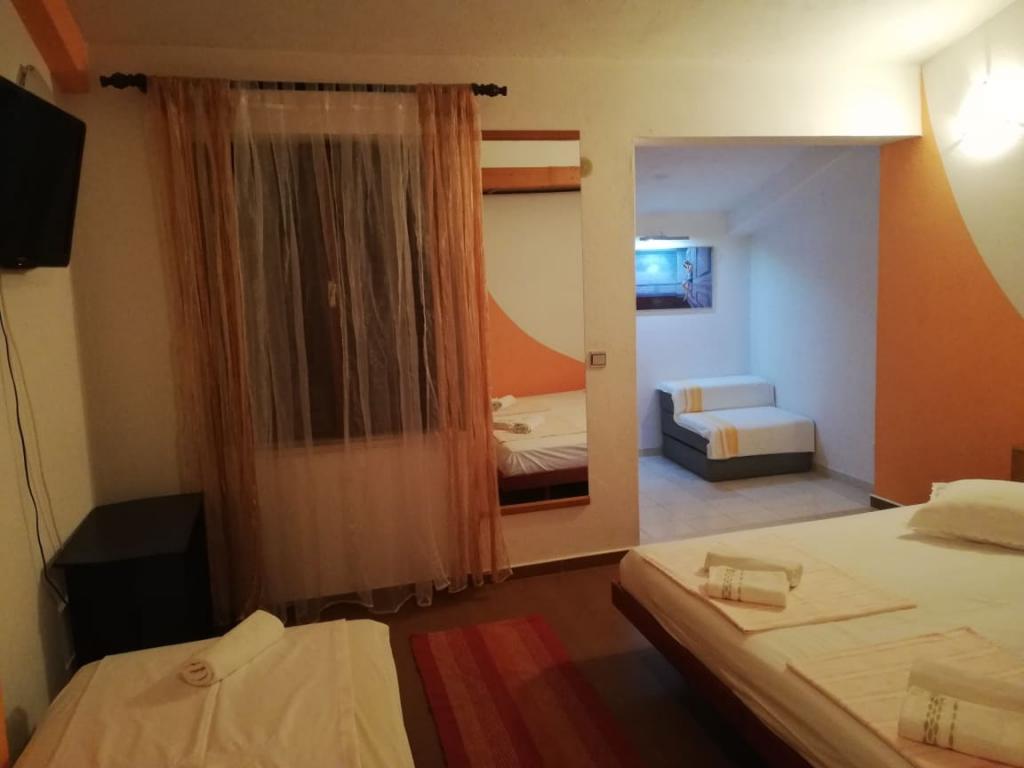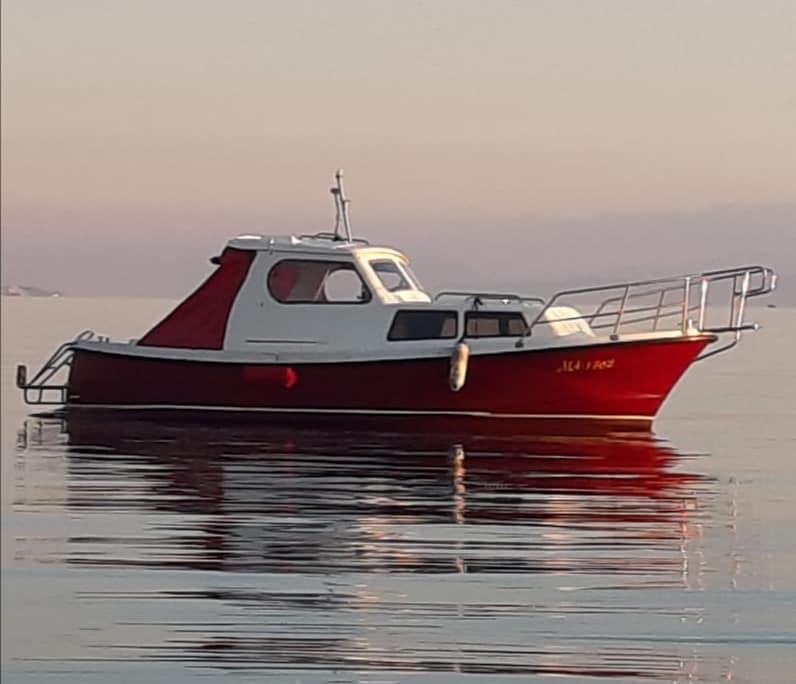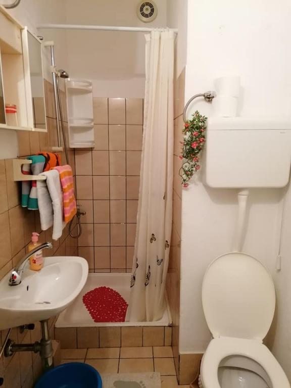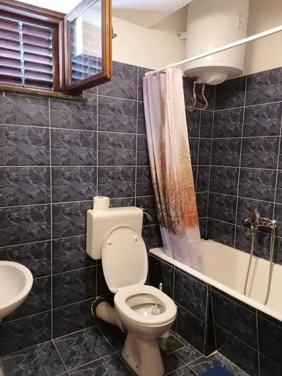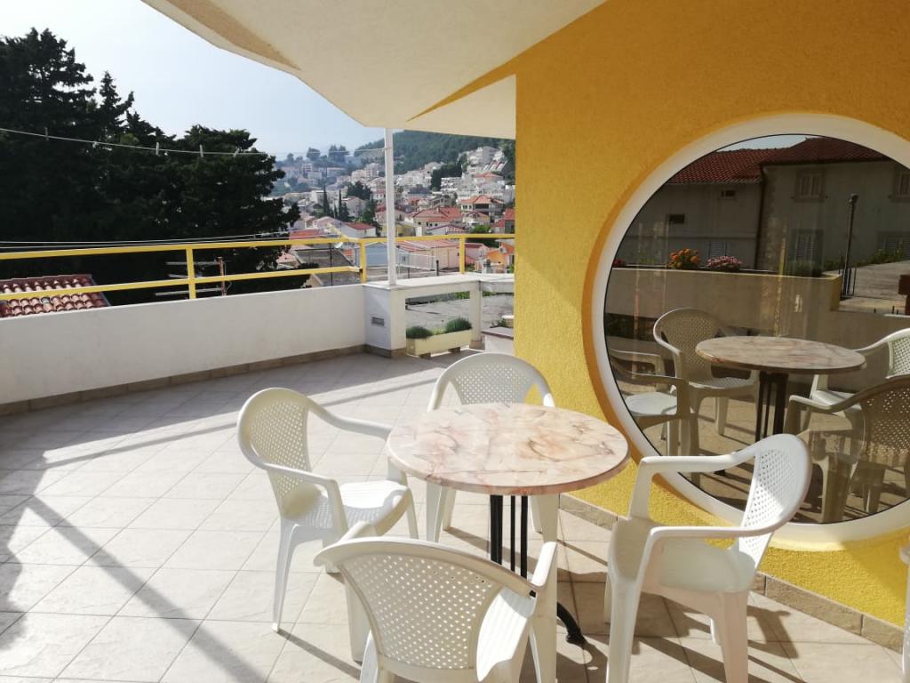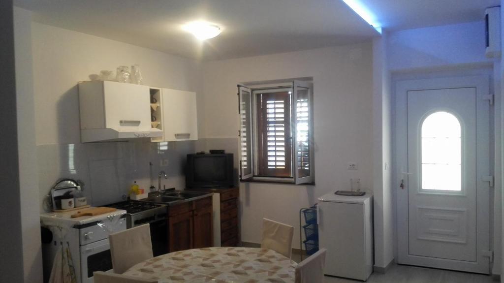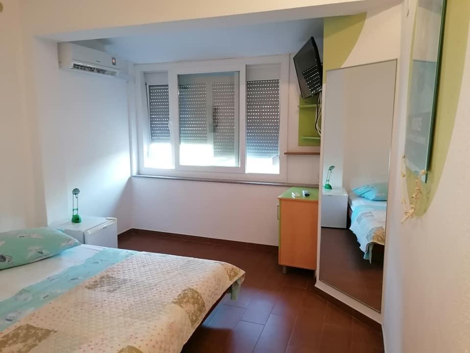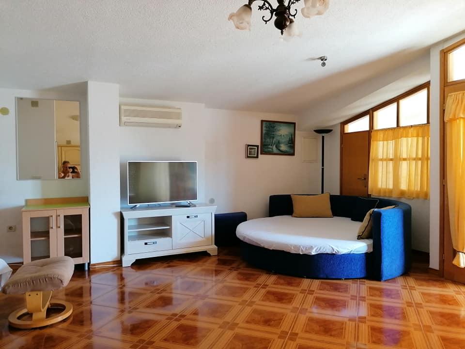 , Byt, Ubytovací jednotka je v prvním patře. Obsah: Dvě ložnice - jeden třílůžkový a jeden dvoulůžkový - každý pokoj má vlastní WC-sprchu, TV, klimatizaci, lednici. Byt má také jednu kuchyň a prostornou terasu / podél. 12 m /. Byt je kompletně vybaven ložním prádlem, ručníky, kuchyňkou s kuchyňským koutem, wi-fi, vyhrazeným parkovištěm. Vzdálenost od pláže je 150 m. Vzhledem k tomu, byt je v centru obce všechny potřebné servisní zařízení jako; restaurace, kavárny, hotely, různé terasy, banka, pošta, ambulance atd., se nacházejí od 50 do max. 200 m. Host může také nabídnout jízdní kola pro rekreaci, 7 m loď s kapitánem pro jednodenní výlety do zajímavých destinací a rybaření, stejně jako různé turistické informace během vašeho pobytu. Pronajímatel je vám k dispozici.