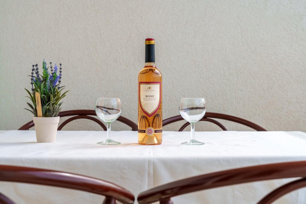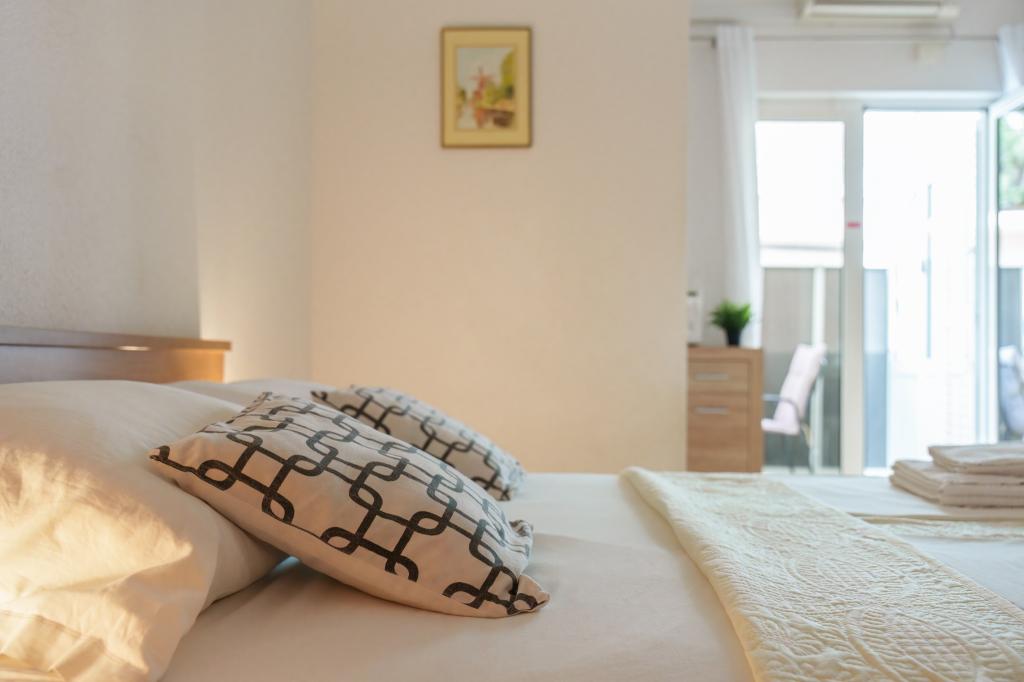 Dům v klidné části města ve slepé uličce s malým provozem. Vzdálenost od pláže je cca 500m (cca 5-10 minut chůze). Dům má několik apartmánů, které jsou vybaveny pro ubytování 2, 3 nebo 4 osob. Všechny apartmány jsou klimatizované a moderně vybavené vším, co potřebujete pro pohodlný pobyt. Rok výstavby je 2008. Většina apartmánů má výhled na moře. Pro všechny hosty jsou k dispozici parkovací místa. Pobytová taxa 1 € na osobu a den Všechny ostatní náklady jsou zahrnuty v ceně