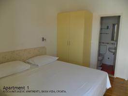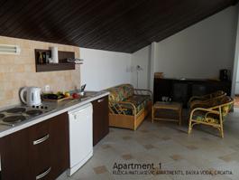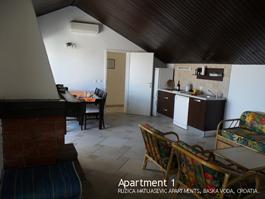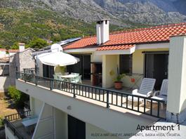 Kompletně a moderně vybavené apartmány v centru Bašky Vody, ale ve zcela klidné a klidné / slepé ulici. Vzdálenost od pláže, obchodů, centra pouhých 100 metrů.