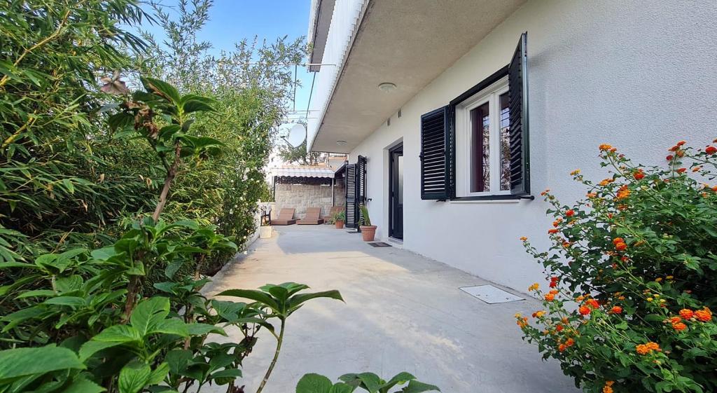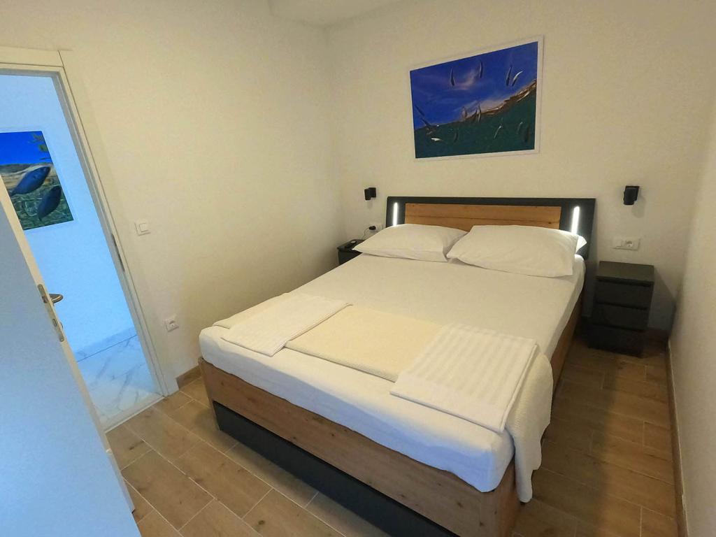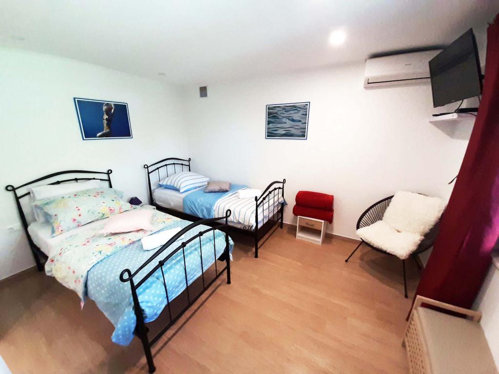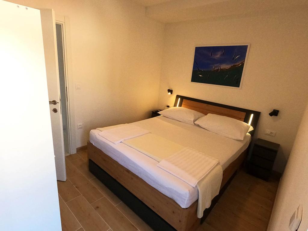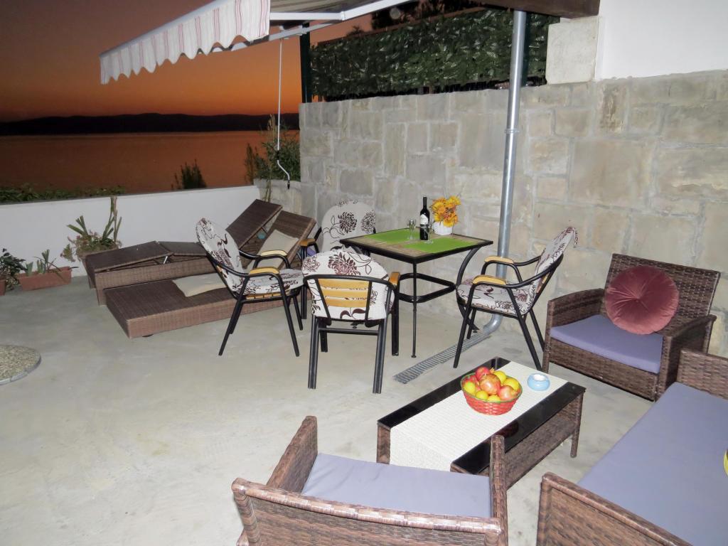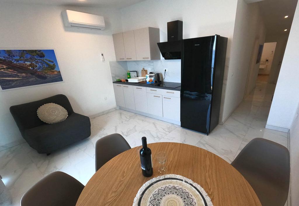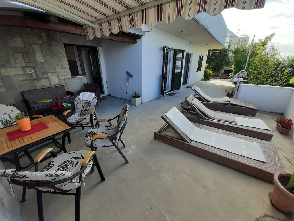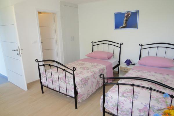 Nově zrekonstruovaný a plně vybavený byt v klidné oblasti mezi Baškou Vodou a Brela, která se nachází v první řadě u moře, nad krásnou pláží. Objekt se nachází 10 minut chůze (cca 500 m) od centra obou míst. Velká terasa s baldachýnem a výhledem na moře, 2 dvoulůžkové ložnice, dvě koupelny a kuchyň s přístupem na terasu. Všechno nové. Byt se nachází v samostatném patře se samostatným vchodem, velká zahrada oddělená od všech sousedů. Soukromé parkování ve stínu těsně nad domem.