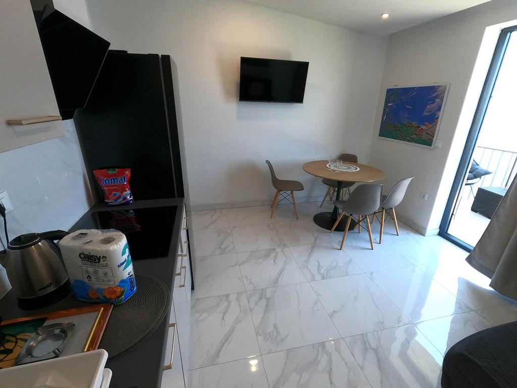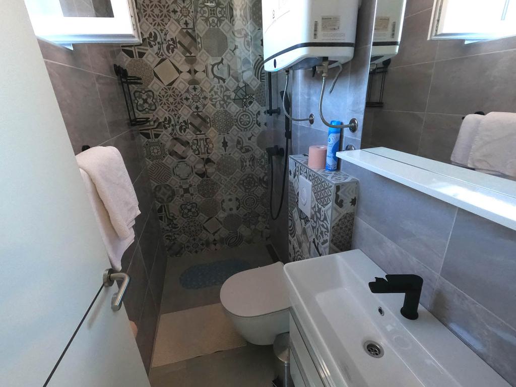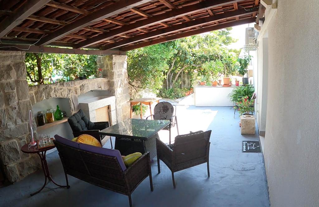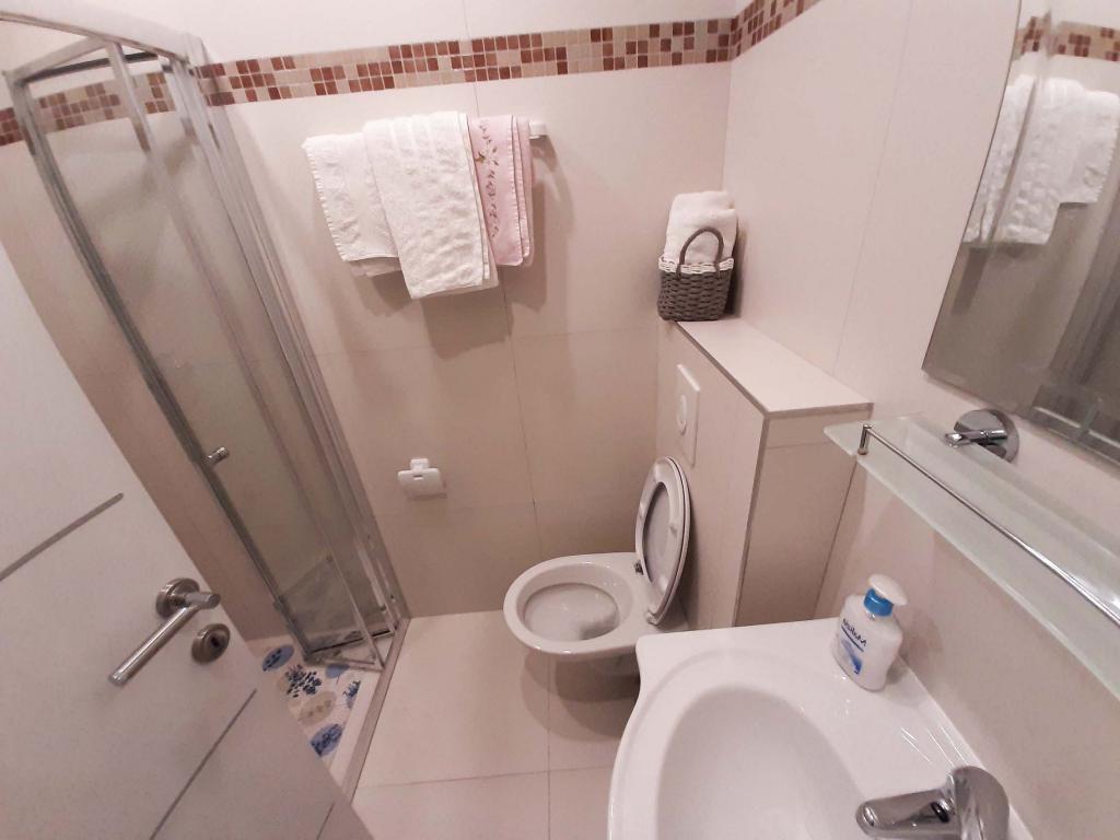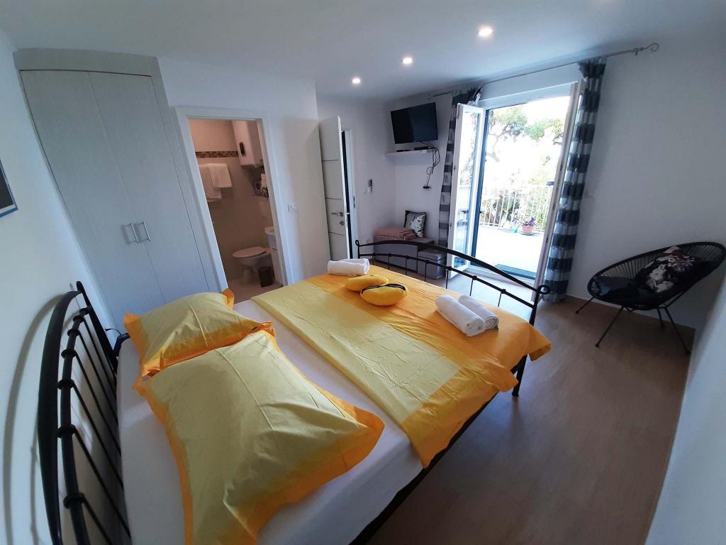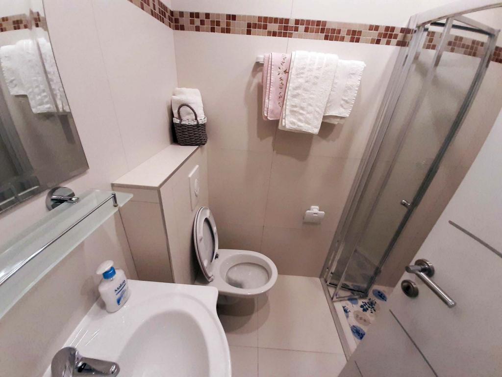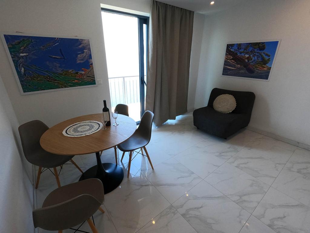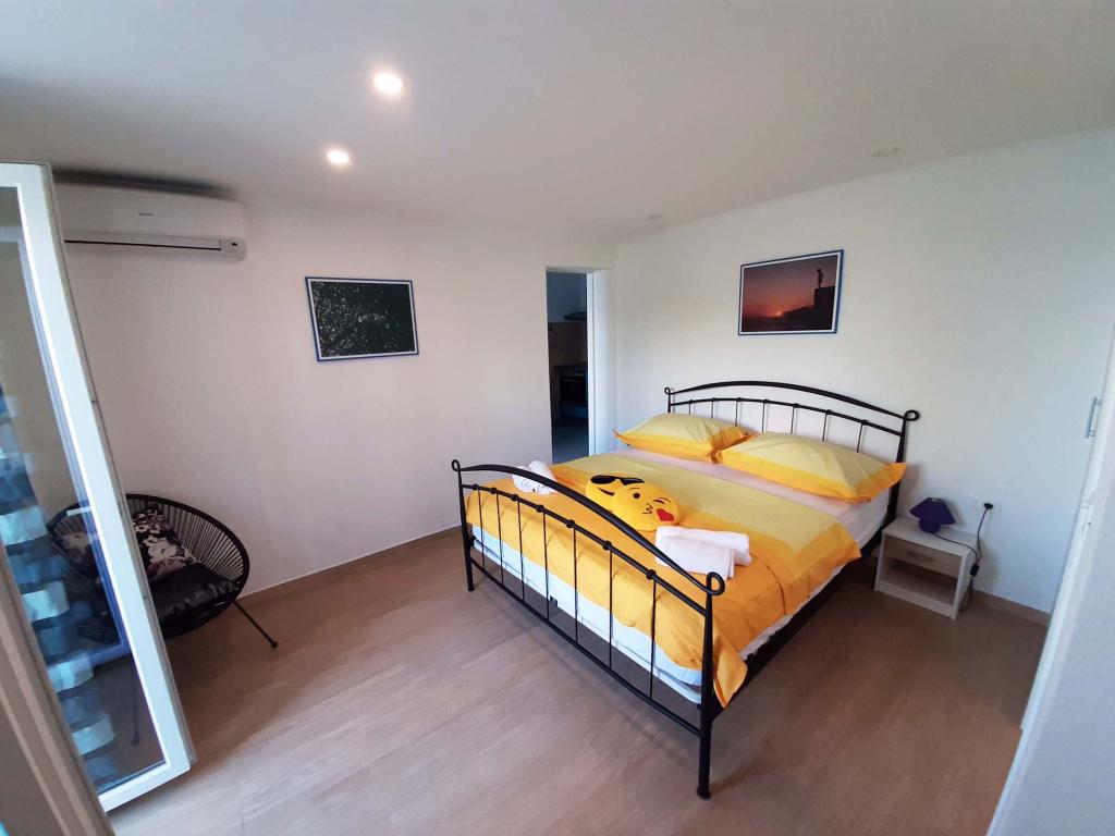 Nově zrekonstruovaný a plně vybavený byt v klidné oblasti mezi Baškou Vodou a Brela, která se nachází v první řadě u moře, nad krásnou pláží. Objekt se nachází 10 minut chůze (cca 500 m) od centra obou míst. Velká terasa s baldachýnem a výhledem na moře, 2 dvoulůžkové ložnice, dvě koupelny a kuchyň s přístupem na terasu. Všechno nové. Byt se nachází v samostatném patře se samostatným vchodem, velká zahrada oddělená od všech sousedů. Soukromé parkování ve stínu těsně nad domem.