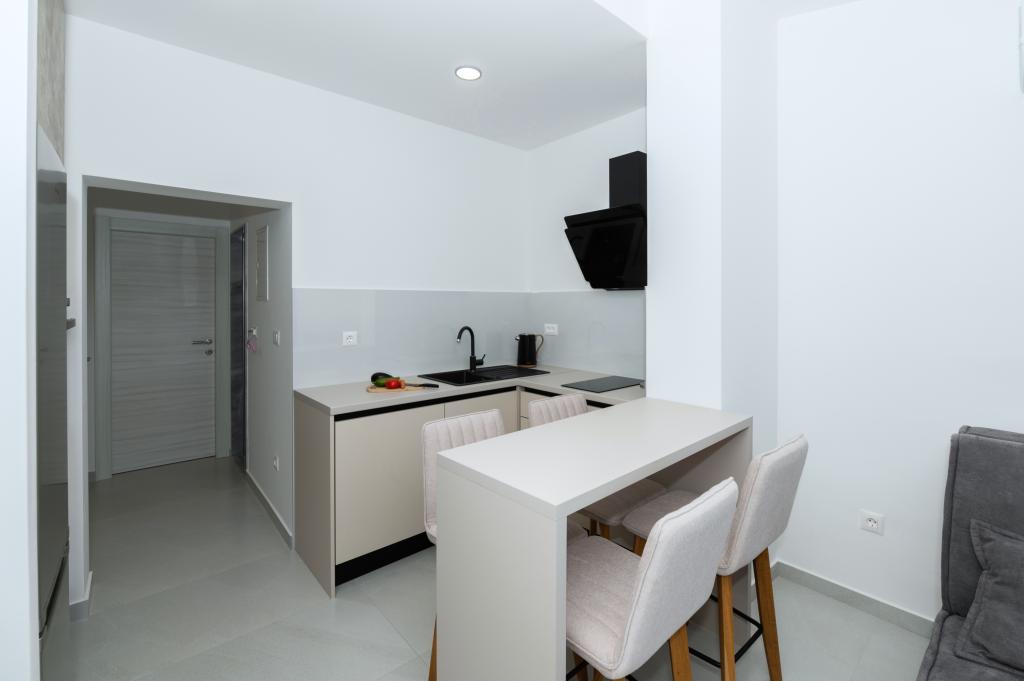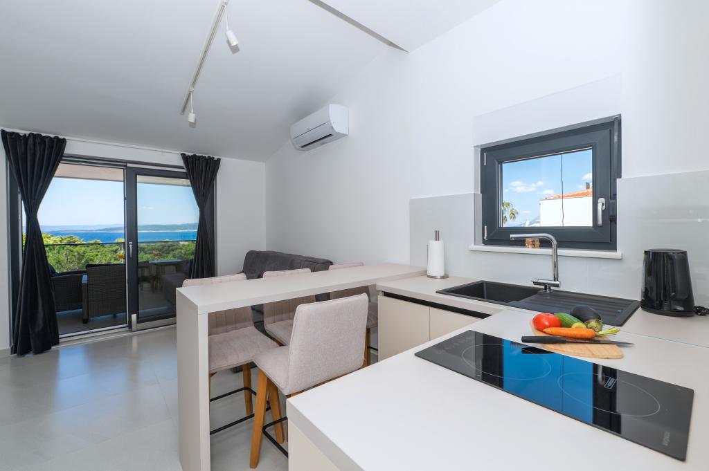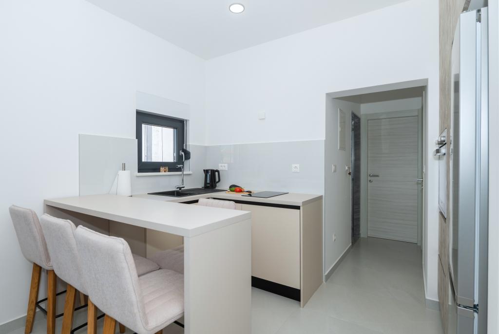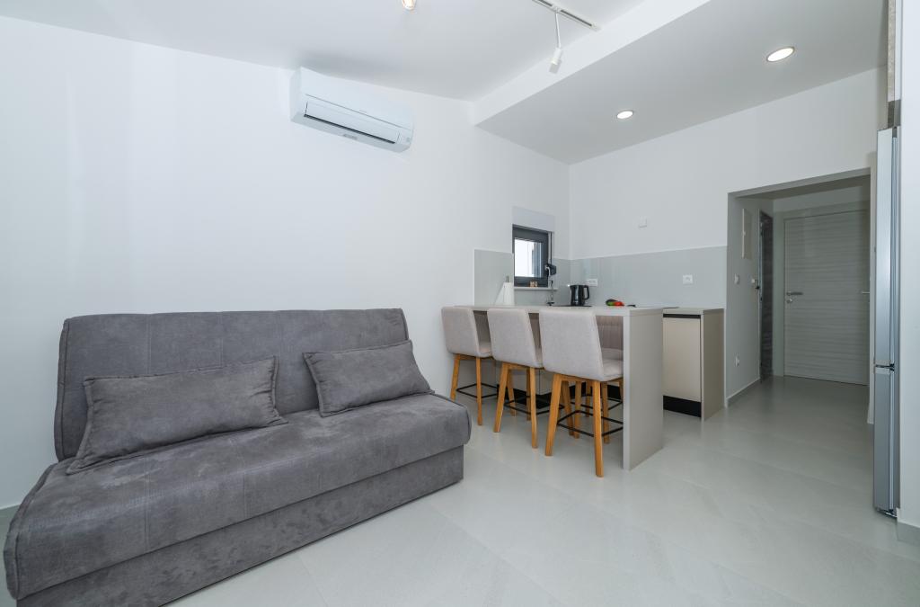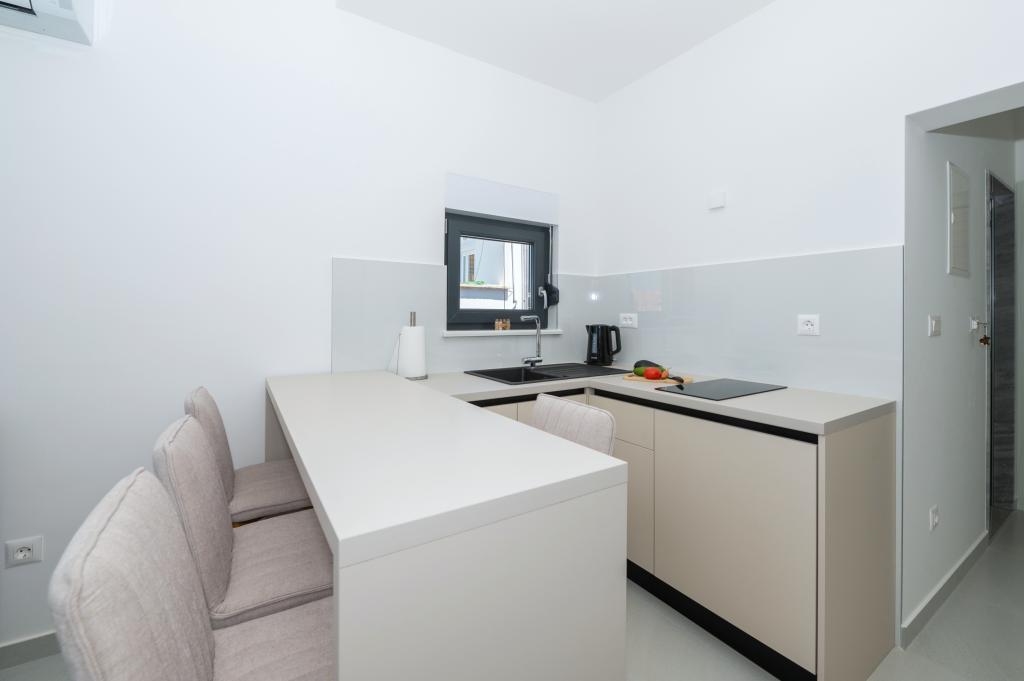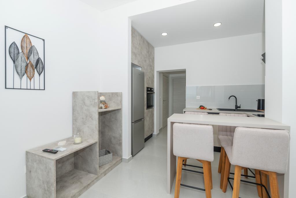 Apartmány jsou moderně vybaveny veškerým potřebným zařízením pro příjemný pobyt. Pohodlí bytu si stejně užijí páry nebo rodiny. Terasa s výhledem na moře je vybavena sedacím nábytkem. Objekt se nachází v blízkosti pekárny, supermarketu a má soukromé bezplatné parkoviště. Vzdálenost od moře, pláže a veškerého vybavení je 500m. Naši hosté jsou vždy spokojeni s nabídkou a umístěním apartmánů! Vítejte!