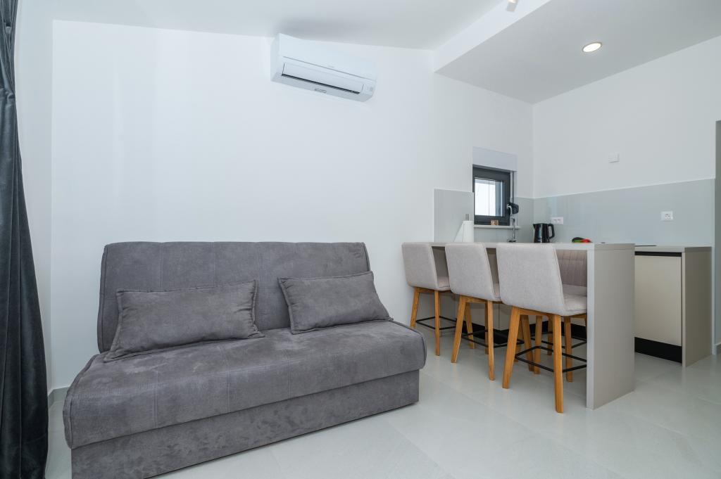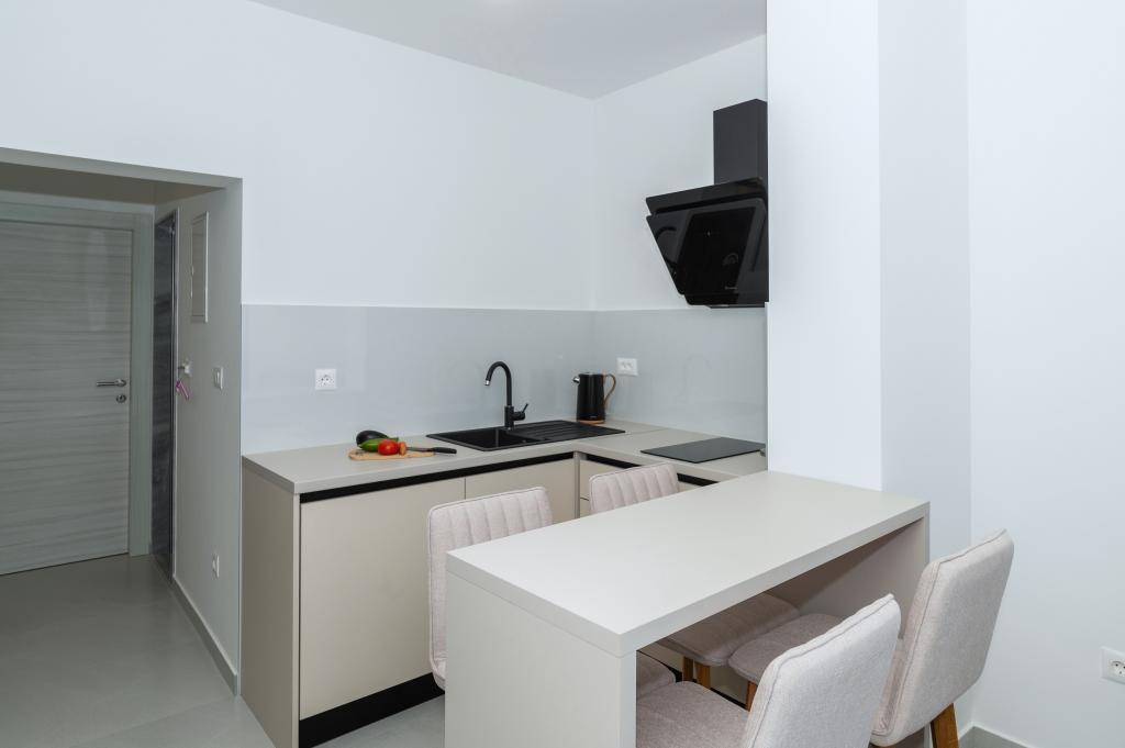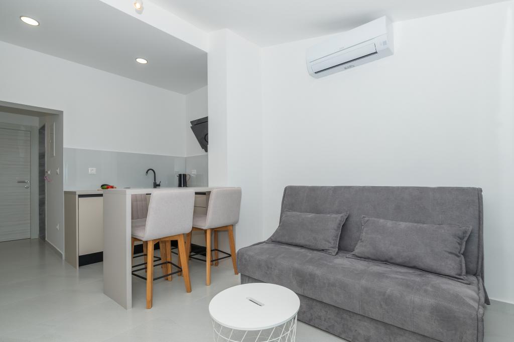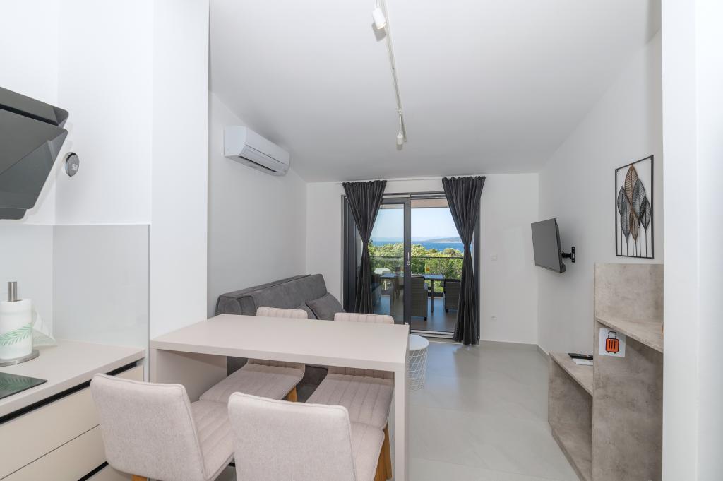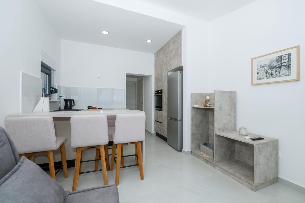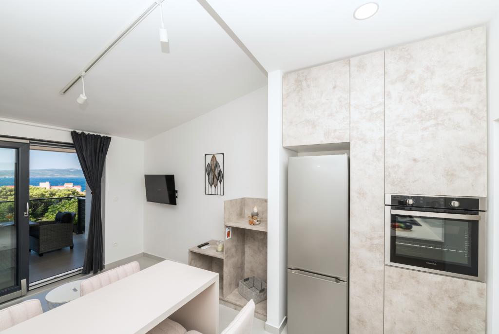 Apartmány jsou moderně vybaveny veškerým potřebným zařízením pro příjemný pobyt. Pohodlí bytu si stejně užijí páry nebo rodiny. Terasa s výhledem na moře je vybavena sedacím nábytkem. Objekt se nachází v blízkosti pekárny, supermarketu a má soukromé bezplatné parkoviště. Vzdálenost od moře, pláže a veškerého vybavení je 500m. Naši hosté jsou vždy spokojeni s nabídkou a umístěním apartmánů! Vítejte!