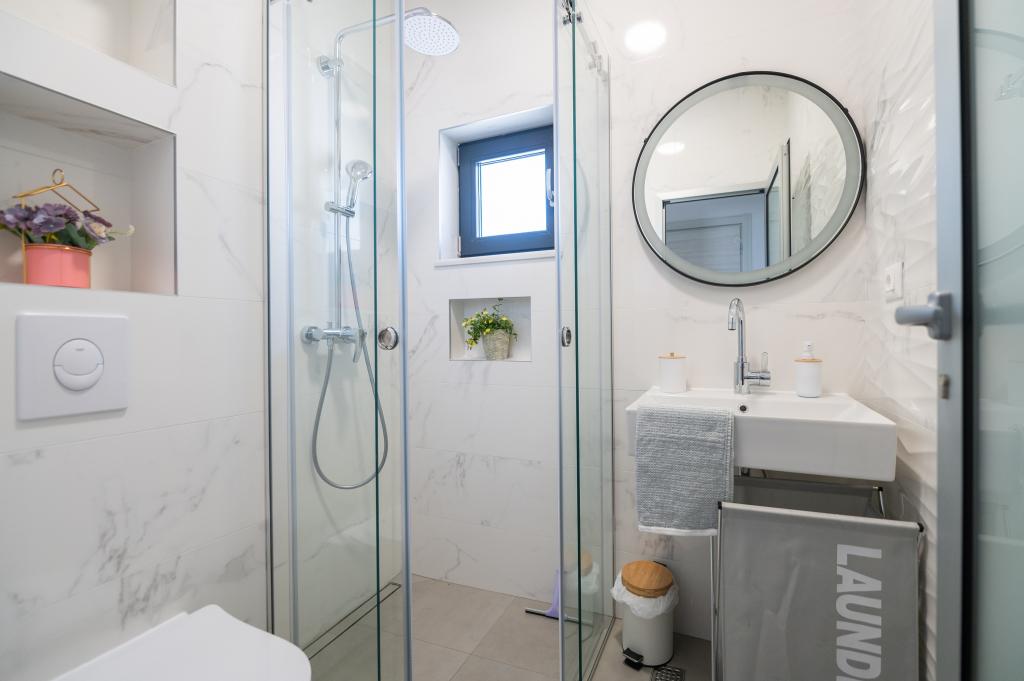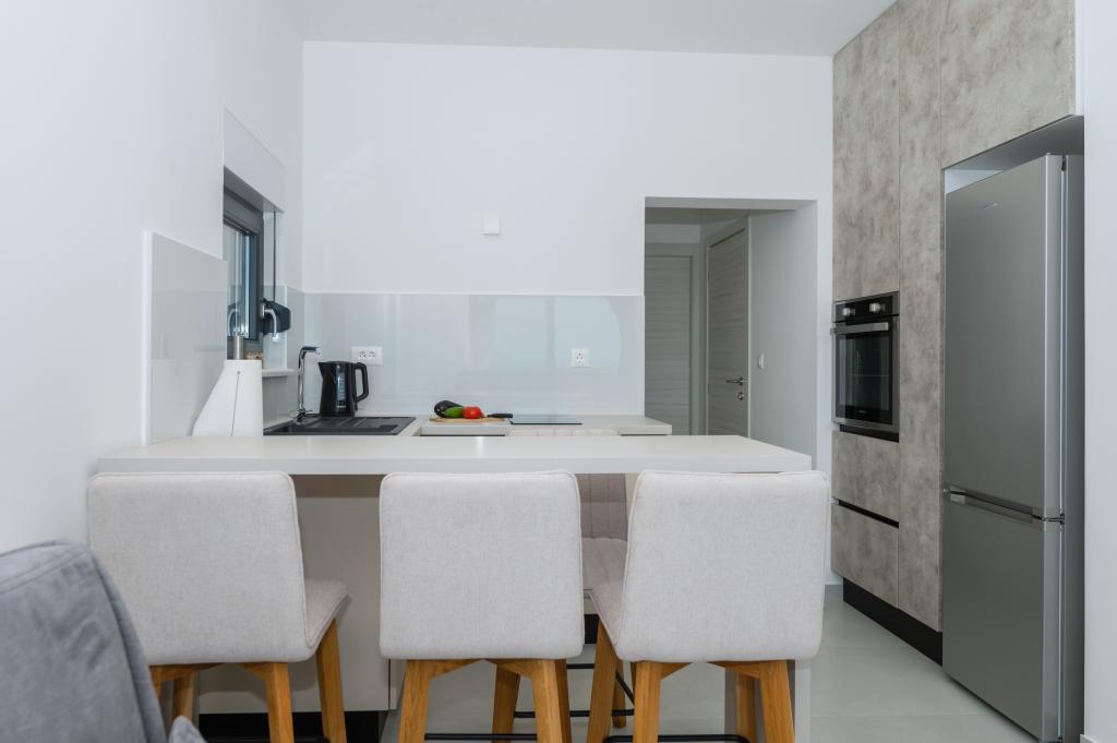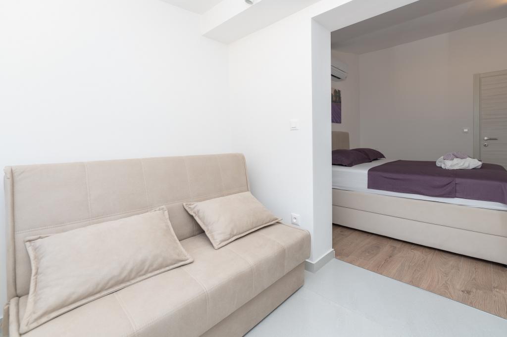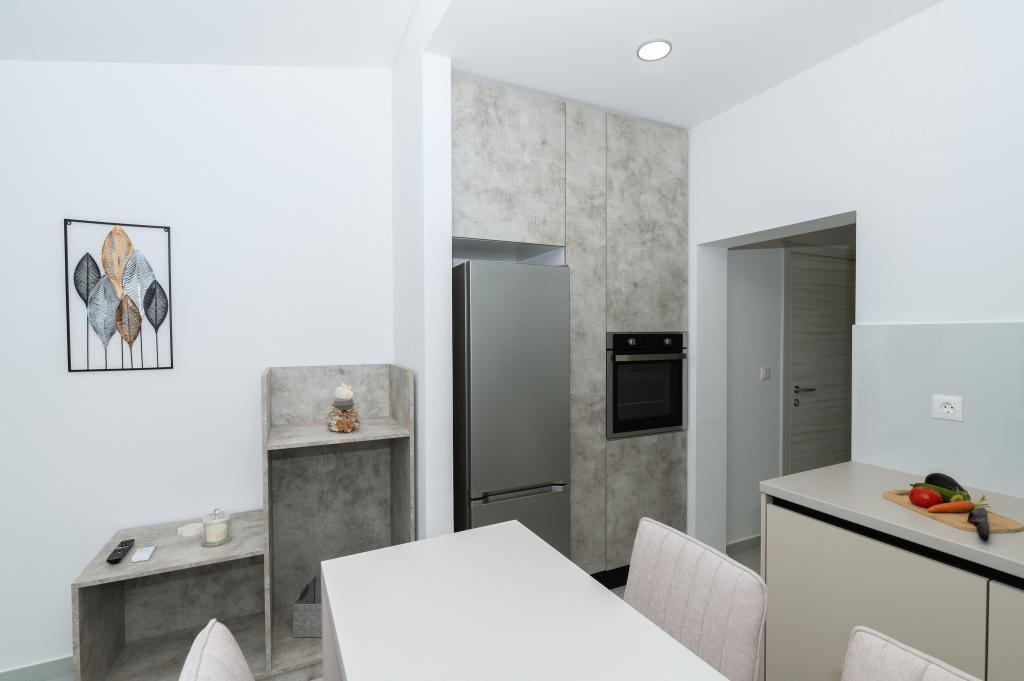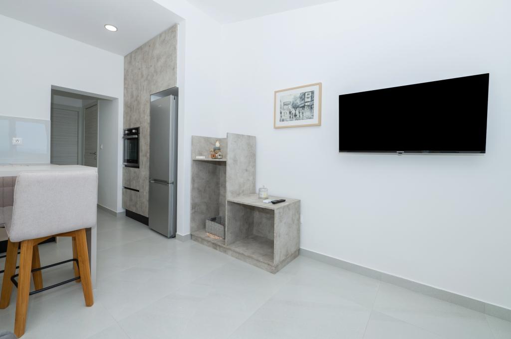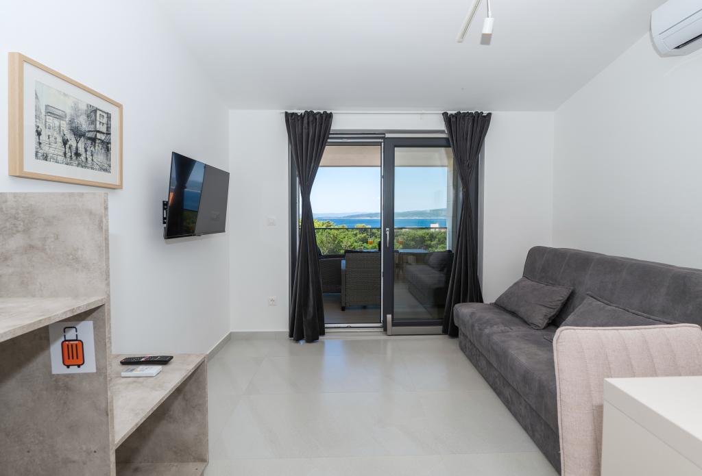 Apartmány jsou moderně vybaveny veškerým potřebným zařízením pro příjemný pobyt. Pohodlí bytu si stejně užijí páry nebo rodiny. Terasa s výhledem na moře je vybavena sedacím nábytkem. Objekt se nachází v blízkosti pekárny, supermarketu a má soukromé bezplatné parkoviště. Vzdálenost od moře, pláže a veškerého vybavení je 500m. Naši hosté jsou vždy spokojeni s nabídkou a umístěním apartmánů! Vítejte!