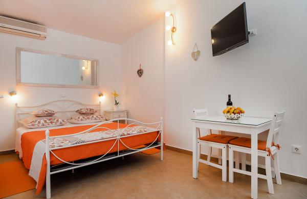 Byli jsme ve studiu pro 2 osoby. Byt je velmi pěkně zařízený stylem a nádechem romantiky ... na skvělém místě v blízkosti hlavní pláže. Majitelé jsou přátelští a milující a kolem domu je krásná zahrada a parkovací místo ve stínu. Zatím je to nejhezčí byt, do kterého jsme byli ... a nemám žádné komentáře. Doufám, že se příští rok zase uvidím.