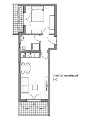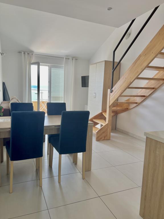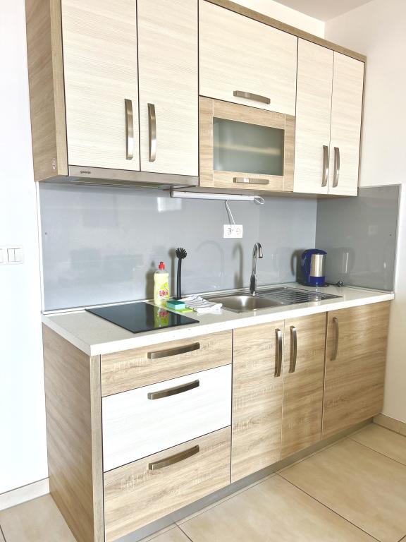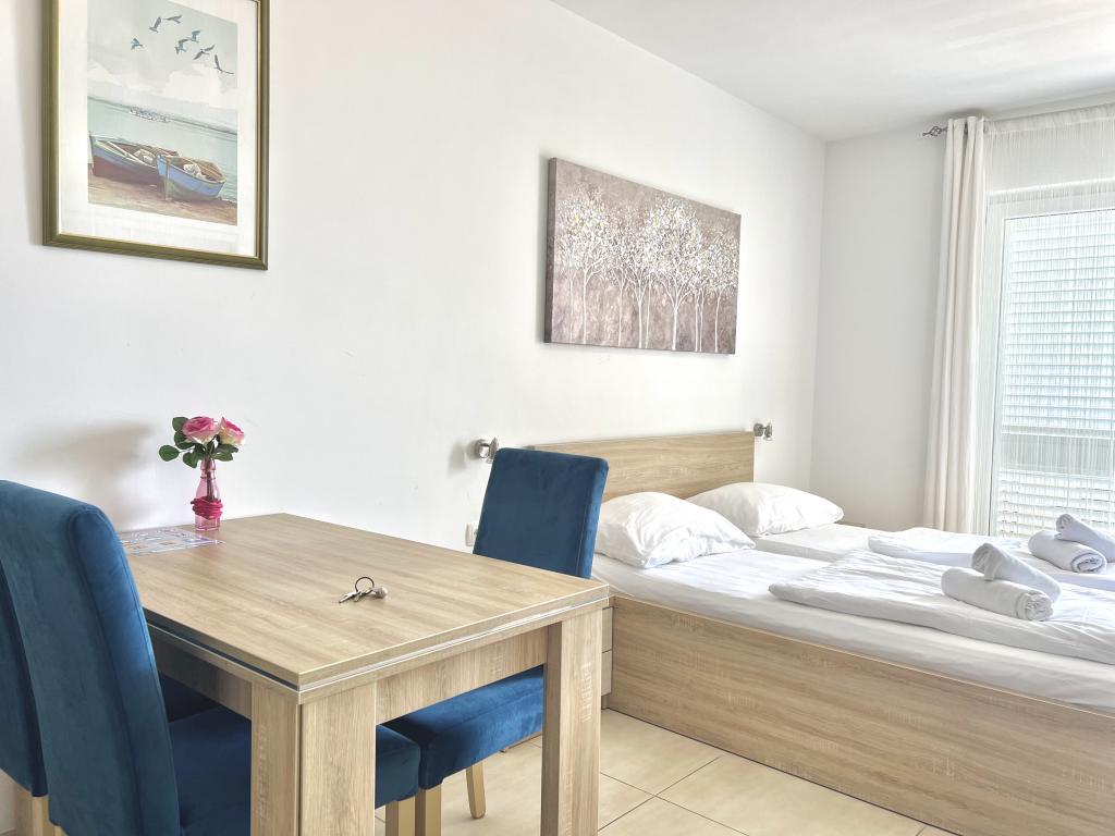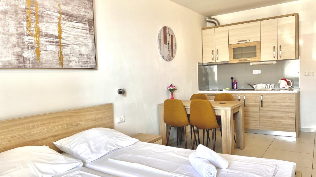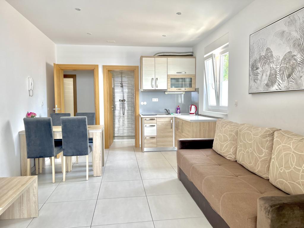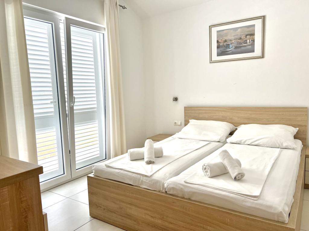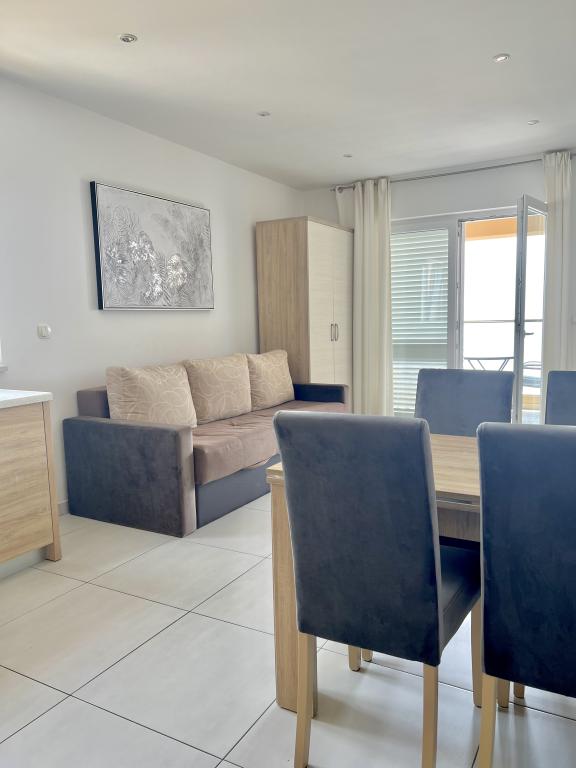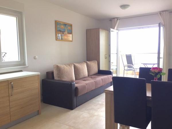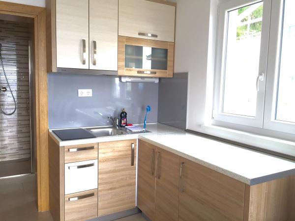 Pobytová taxa je v ceně.Nevšední výhled z balkonu je jistě uskutečněním vašich snů. Přes sklo na zábradlí balkónu si můžete vždy vychutnat výhled na Jadran. Lůžka v apartmánu mají pohodlný rozměr 1,60 m na šířku a 2,00 m na délku. O ložní prádlo a ručníky se nemusíte starat. V ceně je zahrnuta pravidelná výměna ložního prádla a ručníků. Po dovolené u moře se můžete osvěžit v koupelně. Moderní design naší koupelny a vany vám v tom pomůže. Máme již postaráno o ložní prádlo a ručníky, které běžně pravidelně a na vyžádání měníme. V kuchyni můžete ukázat, že jste kulinářská hvězda. K tomu vám nabízíme talíře, hrnce a nádobí. Rychlovarná konvice, vývrtka, sklenice, hrníčky a lednice s pro