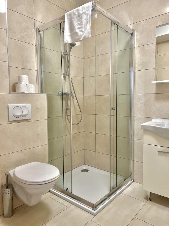 Náš dům byl postaven podle nejnovějších standardů a byl poprvé otevřen v roce 2014. V naší nabídce získáte tyto služby: Klimatizaci na každém pokoji Parkování pro vaše auto Wi-Fi zdarma v celém domě Koupelna se sprchovým koutem (vana v apartmánu Premium č. 5 a 9) Sat TV s mnoha programy Kuchyň s keramickým obkladem a dlažbou lednička/lednička Ložní prádlo a ručníky