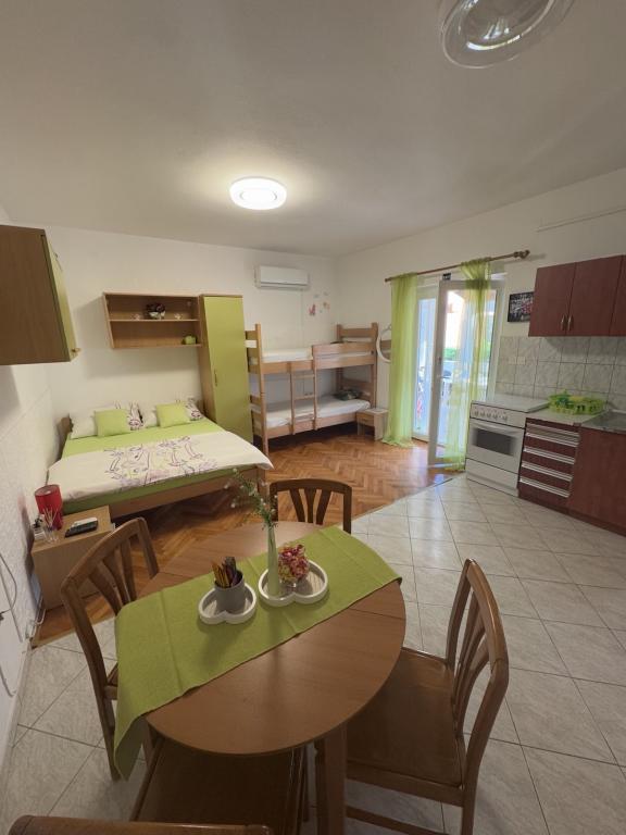 DŮLEŽITÉ!!! Apartmán Andrea se nachází ve městě Rijeka, nikoli na ostrově Krk. Rijeka má v okolí (až 30 km) mnoho krásných míst s krásnými plážemi. Apartmány Anita se nacházejí v Jurandvoru, nedaleko Bašky. Jsou vzdálené pouhých 1200 m od jedné z nejkrásnějších písečných pláží na Jadranu. Apartmány obsahují vše, co potřebujete, abyste si vy, vaše děti a domácí mazlíčci mohli u nás plně užít dovolenou. Každý apartmán má kuchyň (rychlovarná konvice, toustovač, kávovar, nádobí, mycí prostředek na nádobí), koupelnu (ručníky, mýdlo na ruce), ložnici s ložním prádlem, terasu, satelitní TV, Wi-Fi, klimatizaci. Můžete také použít žehličku a pračku a apartmány 2 a 3 mají i myčku nádobí. Parkování pro vaše auta se nachází v okolí domu. Před domem je pro vaše děti hřiště. Zatímco si vaše děti hrají, vy si můžete odpočinout u grilu. A samozřejmě jsou vaši domácí mazlíčci vždy vítáni. :)