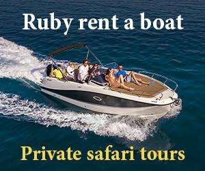 Pobytová taxa není v ceně.V rodinné firmě RUBY RENT A BOAT si můžete zapůjčit loď, nové motorové čluny Quicksilver Sundeck 755 s kabinou, Quicksilver 505, 605 a největší 805 nebo nafukovací Zodiac-Medline a strávit nezapomenutelné chvíle v nedotčené přírodě krásných pláží a zátok a křišťálově čisté moře, s vaší lepší polovičkou nebo s rodinou a přáteli. Nabízíme také možnost zapůjčení člunu s naším profesionálním skipperem, který vás vezme na nezapomenutelné Safari výlety kamkoli budete chtít. Těšíme se na Vaši návštěvu