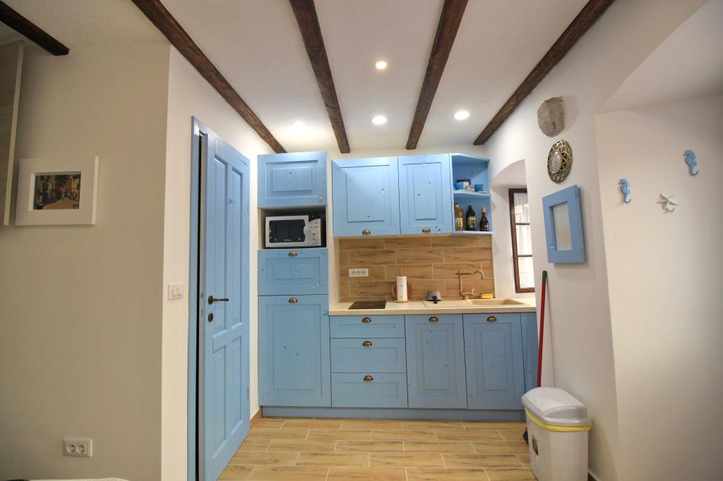Jen pár kroků od moře, malý skromný koutek pro dvě osoby, kde najdete úkryt a pohodlí po dni stráveném procházkou a koupáním v čistém moři. Apartmány mají vše potřebné, aby se dvě osoby cítily pohodlně: myčka nádobí, pračka, klimatizace a Wi-Fi. Má velmi výhodnou polohu v centru města, nachází se v nejstarší historické části Bašky. Naproti studiu je první kamenný dům v Bašce, postavený již v roce 1525 (MDXXV). Nachází se vedle staré vodní fontány. V blízkosti jsou obchody, restaurace, bary a rybí trh. V zájmu zachování staré části města a přístavu není povolen provoz motorových vozidel. Studio má hlídané parkoviště blízko centra. Je to ideální místo pro dva lidi, kteří si chtějí zasportovat, projít se při východu nebo západu slunce, vychutnat si gastronomické speciality Bašky v charakteristických barech staré části Bašky. Procházky po dlouhé promenádě u moře dýchající vůni moře nebo koupání pod měsíčním světlem a hvězdami