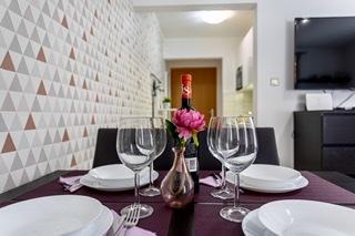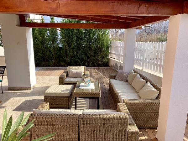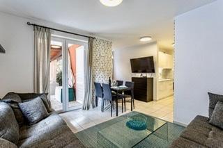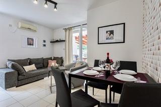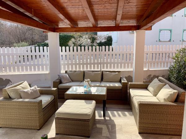 Moderně zařízený a plně vybavený apartmán s velkou terasou a zahradou. Nachází se v Bašce, nejoblíbenějším letovisku na ostrově Krk, známém pro svou nejkrásnější písečnou pláž. Byt se nachází v klidné ulici jen 400 m od hlavní pláže Bašča - pláže Vela, všech restaurací, kaváren, promenády, která obklopuje 3 km dlouhou pláž. Byt se skládá z kuchyně vybavené varnou deskou, troubou, lednicí, potřebným nádobím, rychlovarnou konvicí, toustovačem, kávovarem. Ložnice je vybavena postelí 160x200 a šatní skříní. Koupelna se sprchovým koutem. Obývací pokoj je vybaven televizí, satelitní parabolou, velkou pohovkou a jídelním stolem. Druhé lůžko o rozměru 160x200 se nachází v obývacím pokoji. Byt je klimatizovaný a má neomezené WIFI. Terasa je vybavena zahradním nábytkem a na zahradě si můžete užívat relax na zahradních lehátkách a nasávat sluneční paprsky. Před budovou je k dispozici 1 parkovací místo na byt.