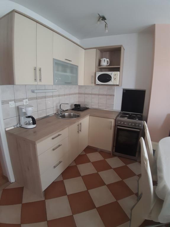 Skvělé místo k odpočinku, blízko malé oblázkové pláže, apartmán čistý a útulný (škoda, že nás první noc "přivítali" "neviditelní" komáři, ale dá se s tím vypořádat (koupí repelentu proti komárům), skvělá terasa, kde se dá posedět (škoda, že je hned u ulice, ale nebyl to velký problém). Celkově skvělé místo k odpočinku. Ach, naši němečtí ovčáci se tam cítili velmi dobře. Hosteska byla velmi milá a komunikativní, bez problémů nebýt toho, že každý rok navštěvujeme jiné místo, rádi se vrátíme.Kuchyně plně vybavená, po týdnu výměna ložního prádla a ručníků, vše jak má být.