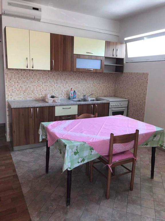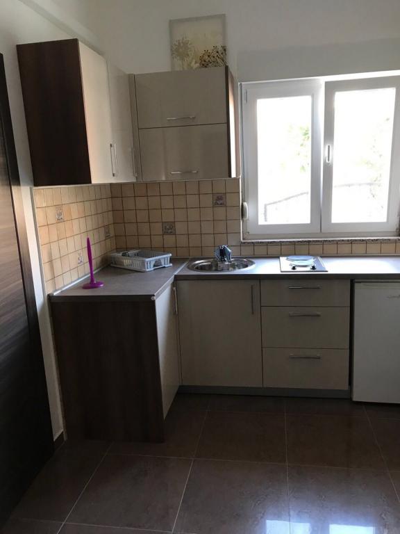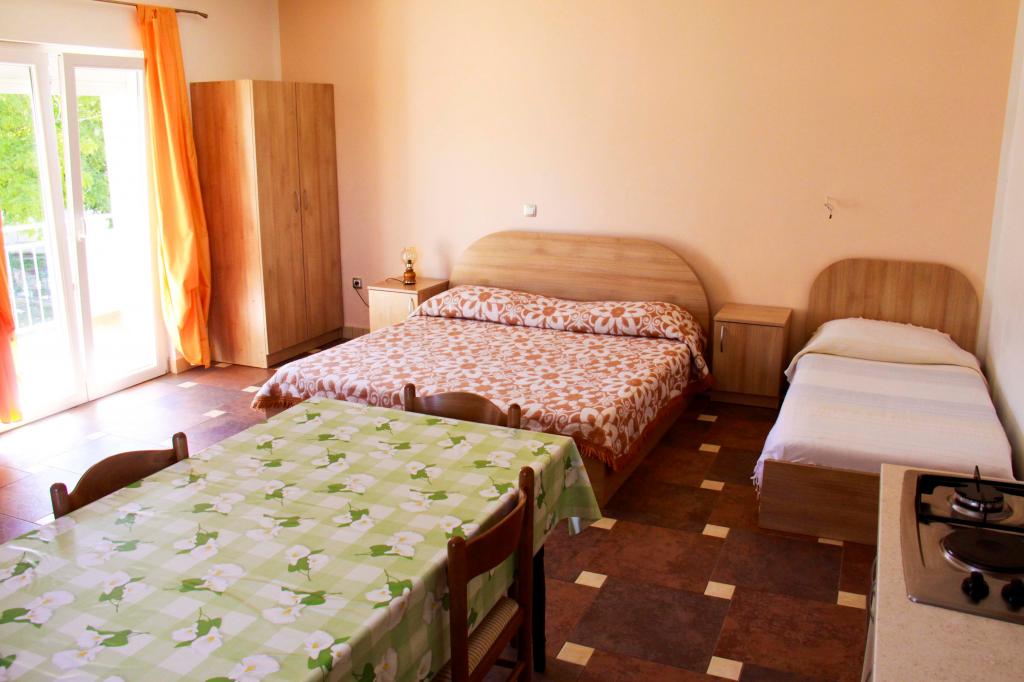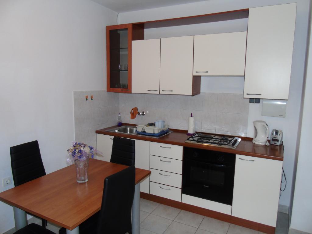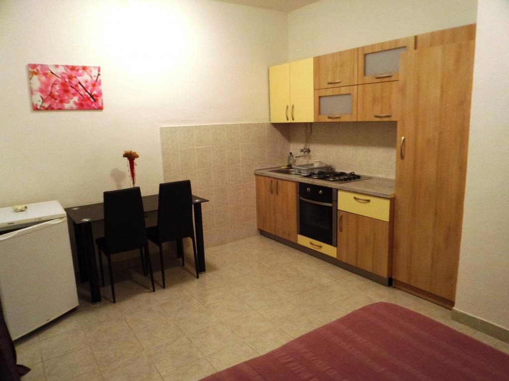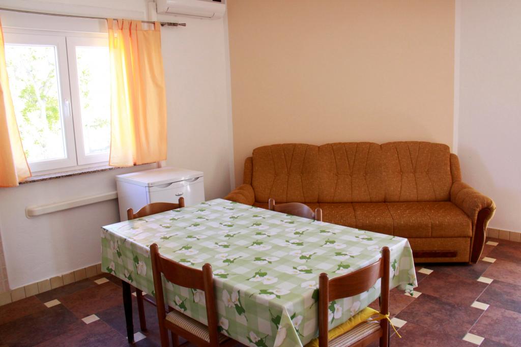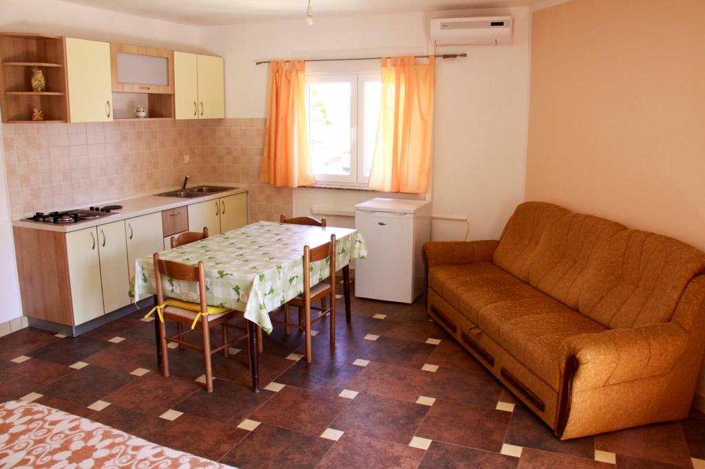 Pronajmu kompletně zařízený byt, který se skládá z obývacího pokoje s kuchyní s veškerým potřebným nádobím, varnou deskou, jídelním stolem a sedadly, lednicí. Každý apartmán má vlastní koupelnu se sprchovým koutem a nachází se uvnitř apartmánu. Apartmány jsou vybaveny klimatizací a TV. Bezplatné používání internetu. Parkování zdarma před budovou. Využití terasy před apartmánem se stolem a sedadly. Možnost cenově dostupné dopravy taxíkem do az apartmánu (60kn / osoba, min. dvě osoby). Bazén je k dispozici od 01.06.-15.09.