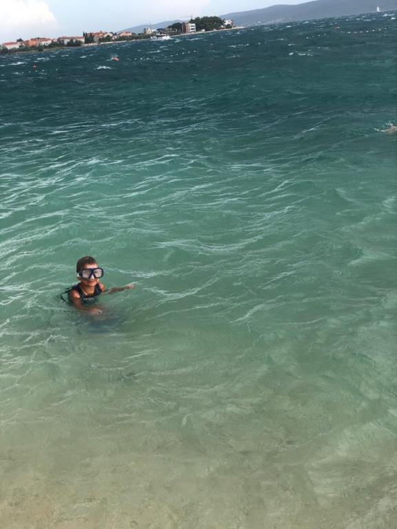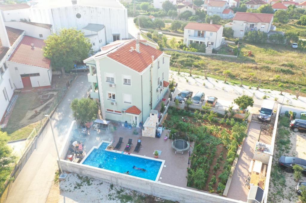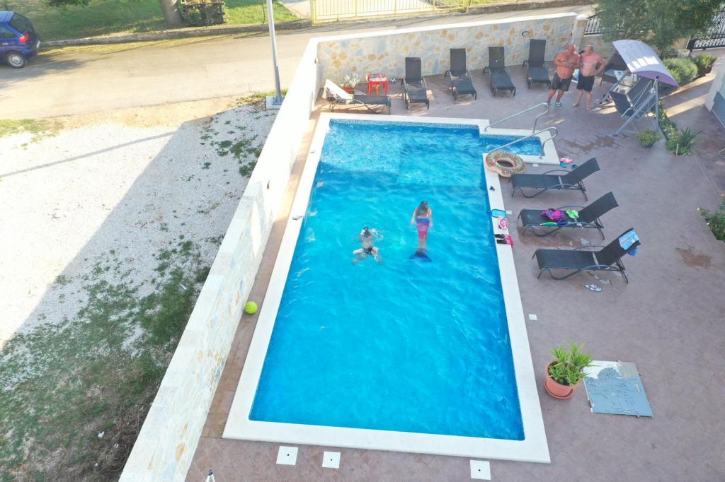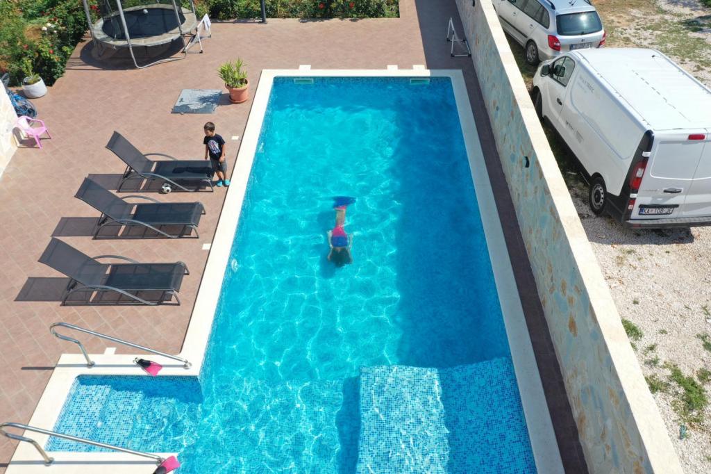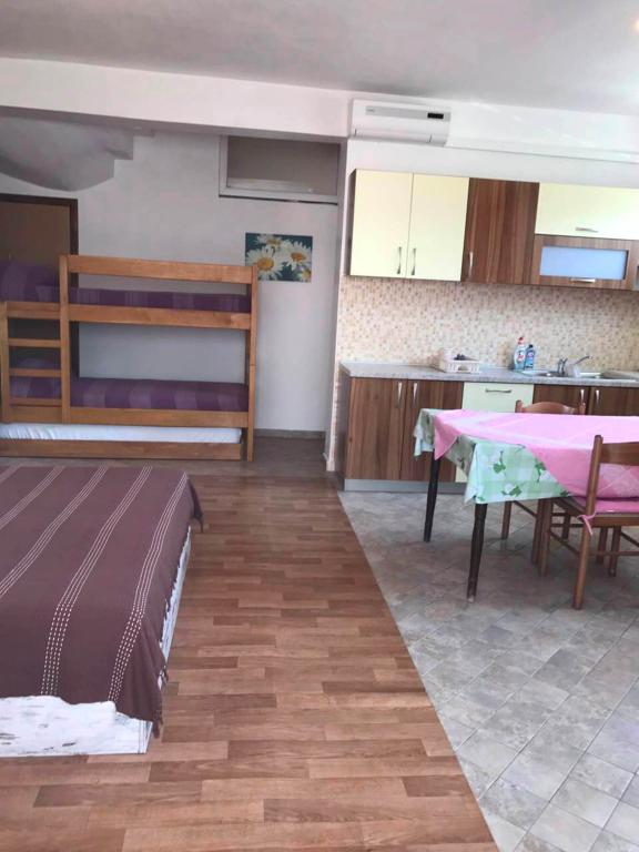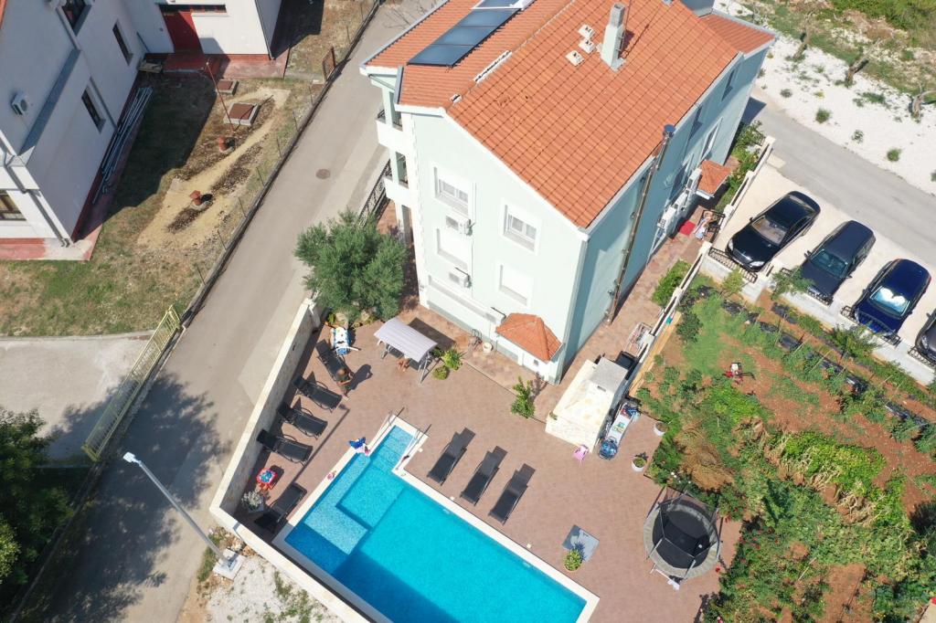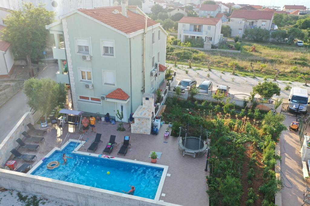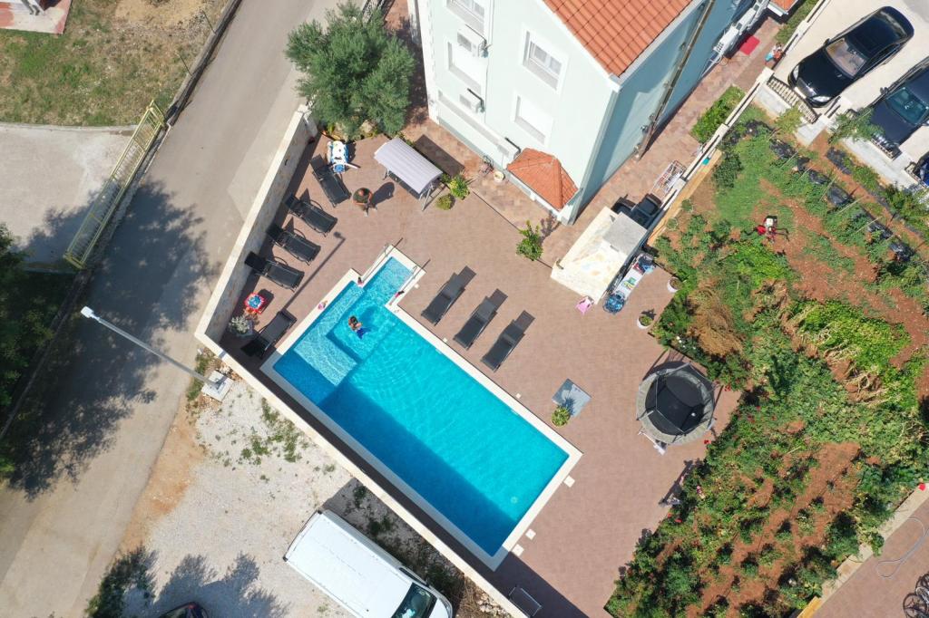 Pronajmu kompletně zařízený byt, který se skládá z obývacího pokoje s kuchyní s veškerým potřebným nádobím, varnou deskou, jídelním stolem a sedadly, lednicí. Každý apartmán má vlastní koupelnu se sprchovým koutem a nachází se uvnitř apartmánu. Apartmány jsou vybaveny klimatizací a TV. Bezplatné používání internetu. Parkování zdarma před budovou. Využití terasy před apartmánem se stolem a sedadly. Možnost cenově dostupné dopravy taxíkem do az apartmánu (60kn / osoba, min. dvě osoby). Bazén je k dispozici od 01.06.-15.09.