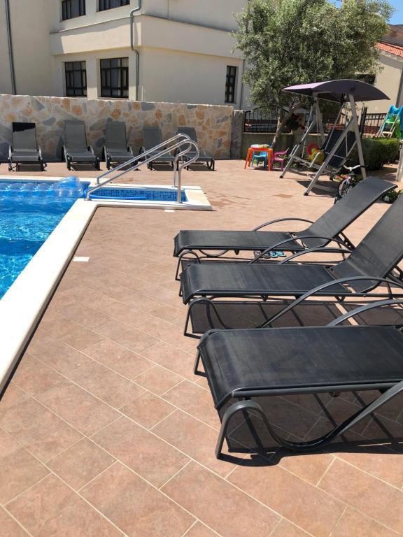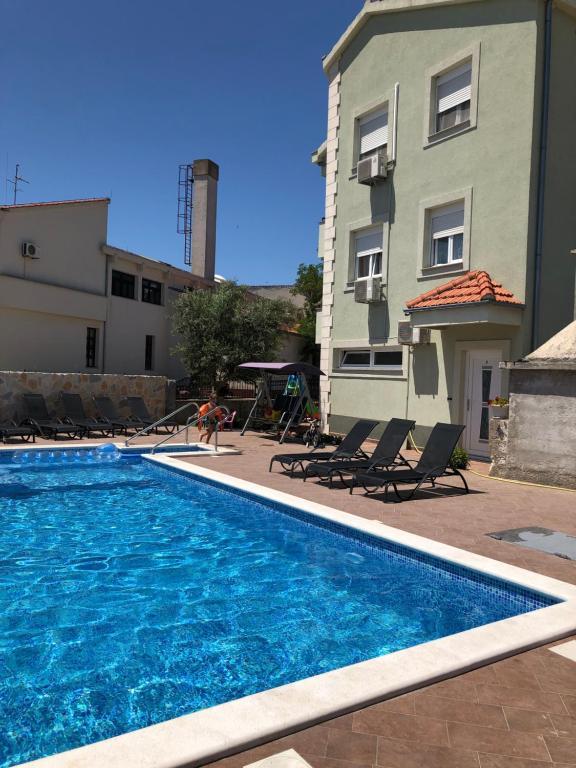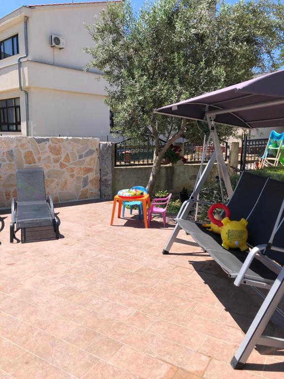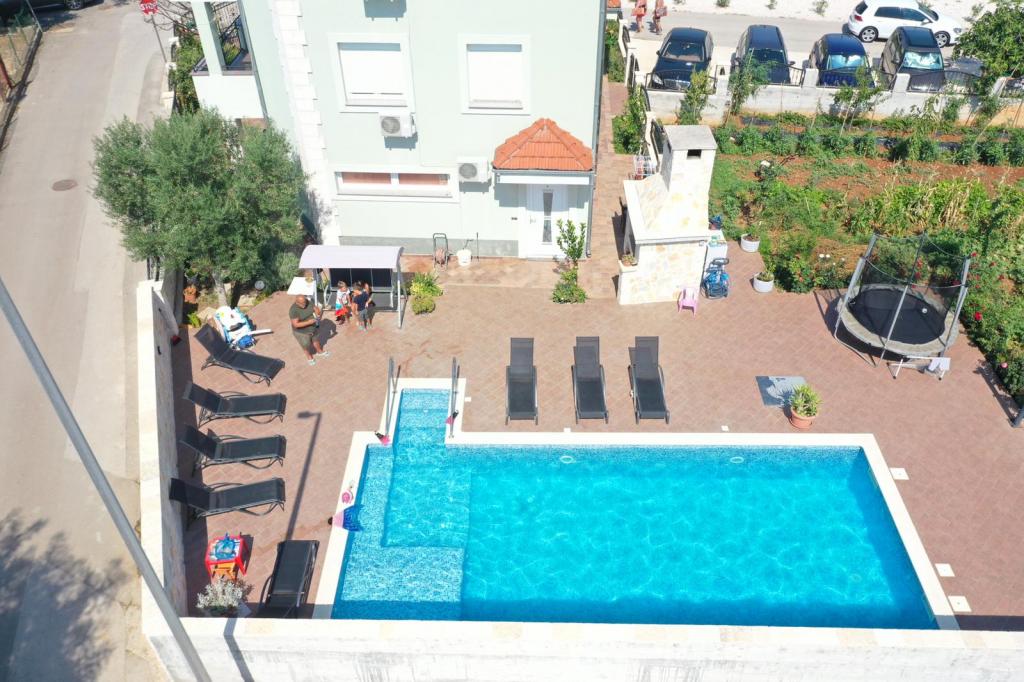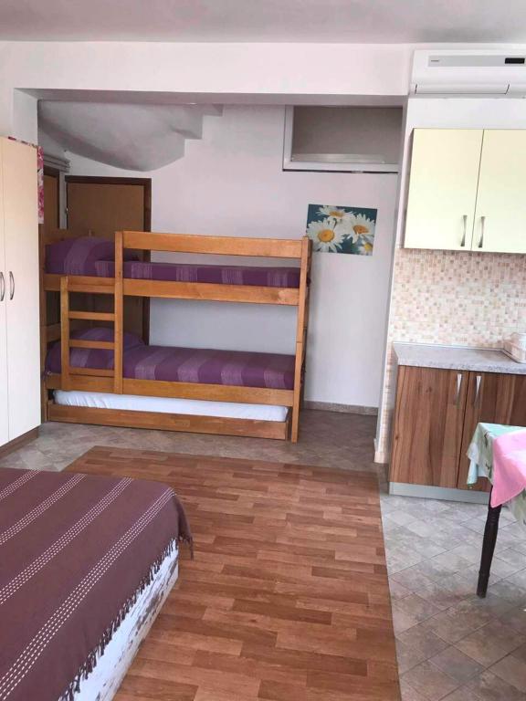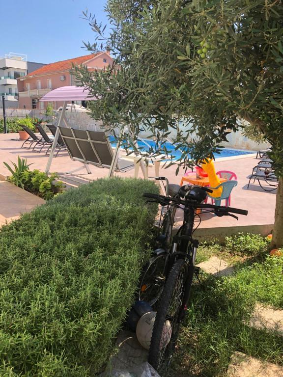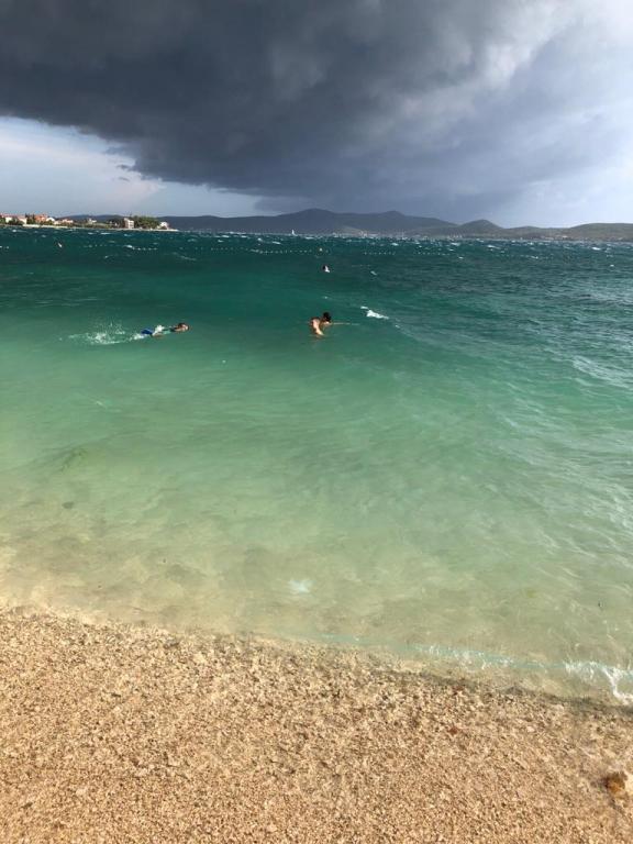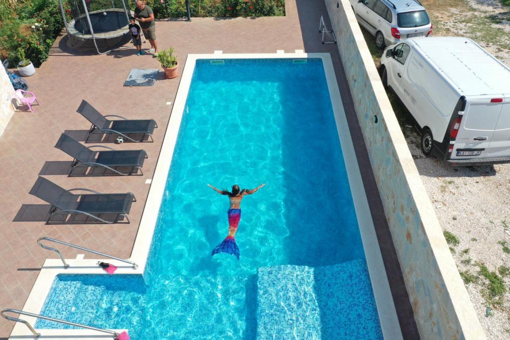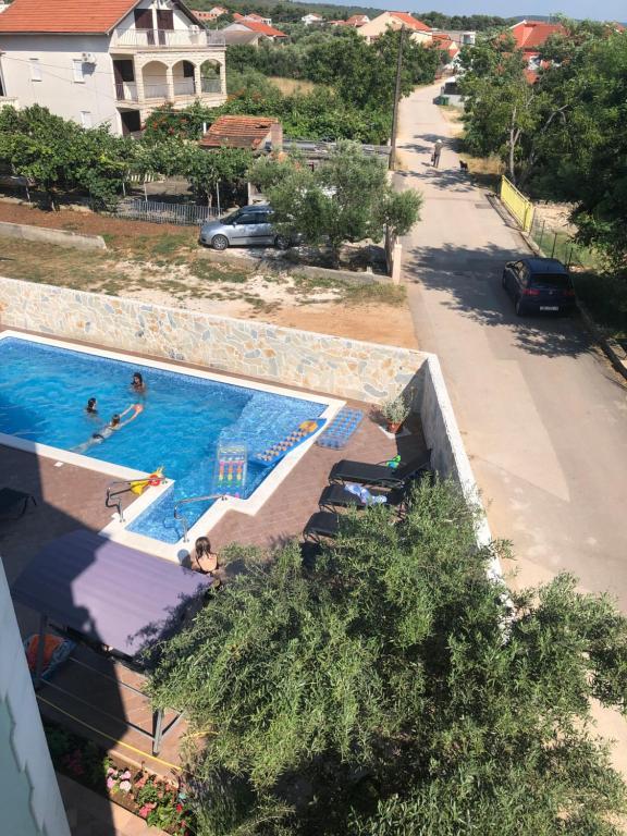 Pronajmu kompletně zařízený byt, který se skládá z obývacího pokoje s kuchyní s veškerým potřebným nádobím, varnou deskou, jídelním stolem a sedadly, lednicí. Každý apartmán má vlastní koupelnu se sprchovým koutem a nachází se uvnitř apartmánu. Apartmány jsou vybaveny klimatizací a TV. Bezplatné používání internetu. Parkování zdarma před budovou. Využití terasy před apartmánem se stolem a sedadly. Možnost cenově dostupné dopravy taxíkem do az apartmánu (60kn / osoba, min. dvě osoby). Bazén je k dispozici od 01.06.-15.09.