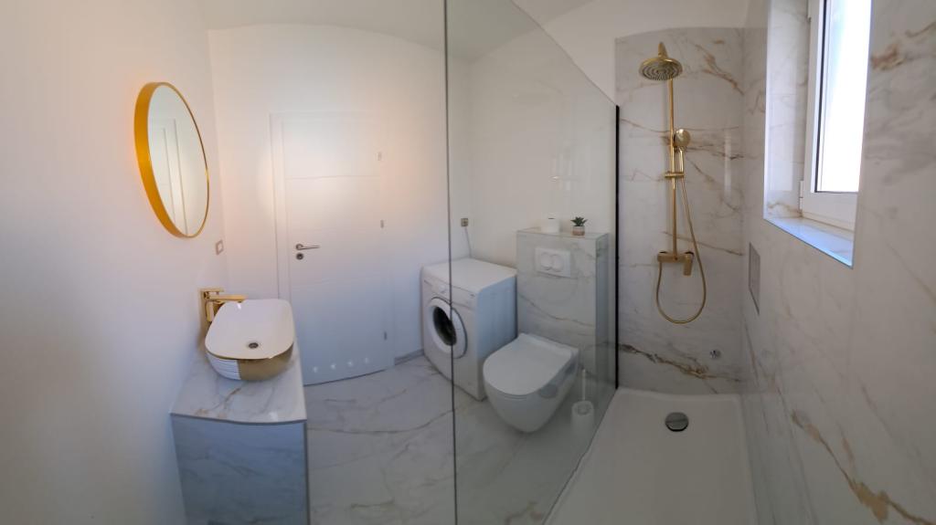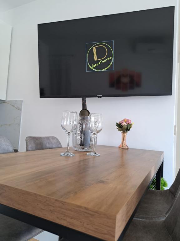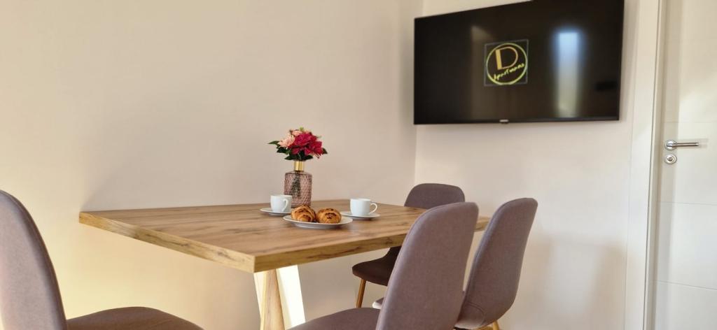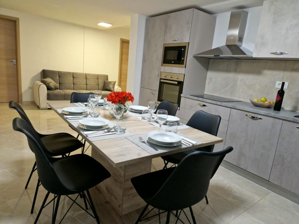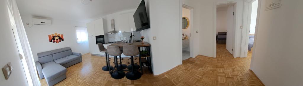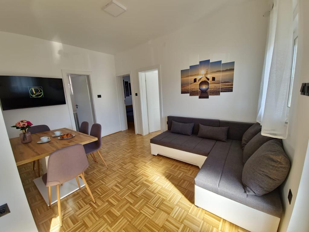 Apartmány D se nacházejí 100-150 m od pláže Karabana (3-5 minut chůze) a 400 m od pláže Sulterova vala. Letiště Zadar je vzdáleno 12 km (5 km kratší cestou). Apartmány D nabízejí hostům parkování zdarma, Wi-Fi zdarma, terasu/balkon, výhled do zahrady, posezení, TV s plochou obrazovkou, klimatizované ubytování, plně vybavenou kuchyň s lednicí, troubou, myčkou, mikrovlnnou troubou, varnou deskou, varnou konvicí na vodu, toustovač a vlastní koupelnu se sprchou. Vnitřní společný gril je k dispozici po předchozí dohodě. Bibinje (přes 4000 obyvatel) se nachází 6 km jihovýchodně od historického města Zadar (10 minut autem nebo autobusem), mezi Jadranskou turistickou cestou a mořem, má čtyři kilometry pobřeží s plážemi a stezkami a procházkami podél Promenáda ráno a večer je zvláštním zážitkem u moře. Místní restaurace nabízejí speciality regionu, jsou zde kavárny, malé obchůdky, tržnice, s