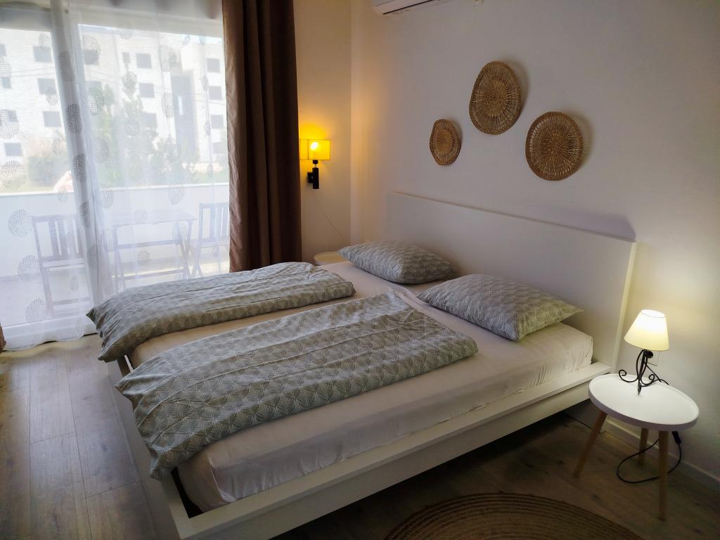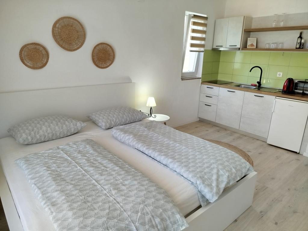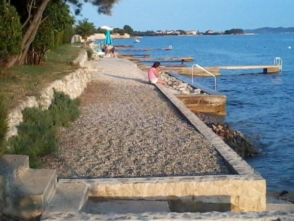 50 m od moře, v klidné části Bibinje, si pronajmeme 2 apartmány s jednou ložnicí (3 + 1) a 1 studio apartmán pro 2 osoby, nově zrekonstruovaný. Každý apartmán se skládá ze samostatné místnosti, toalety, obývacího pokoje, kuchyně, terasy. Ubytování je vybaveno klimatizací, TV, internetem, parkováním, grilem ... Pláž je oblázková, vhodná pro celou rodinu, přístup pro děti k moři je zajištěn. Na pláži je mini bar s nápoji a zmrzlinou. Nejbližší obchod je vzdálený 1000 m.