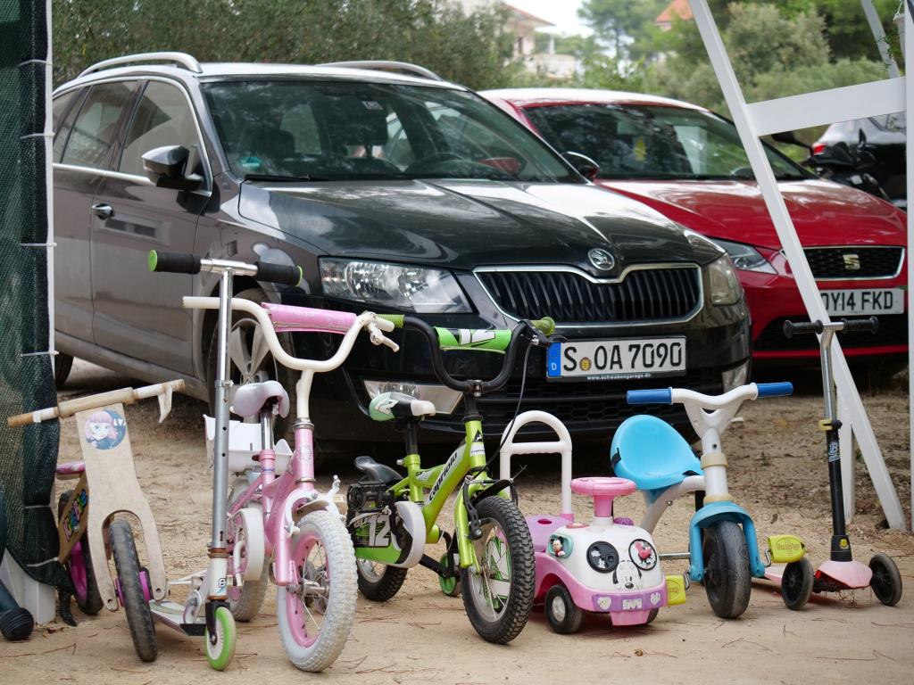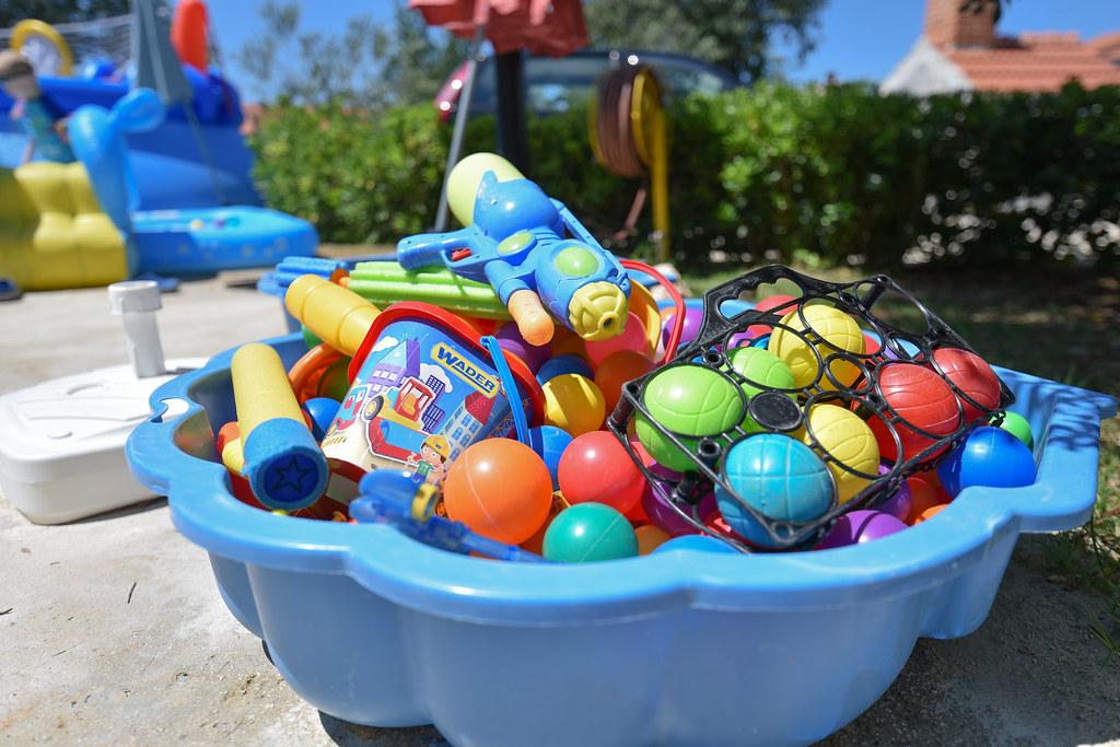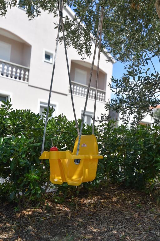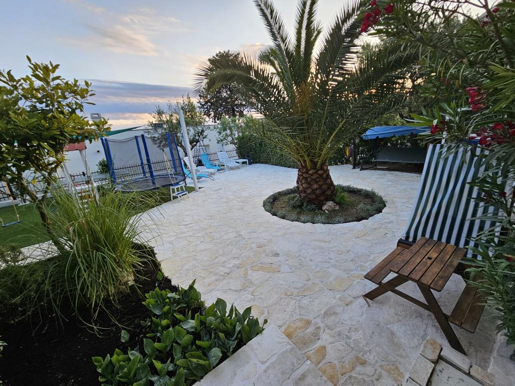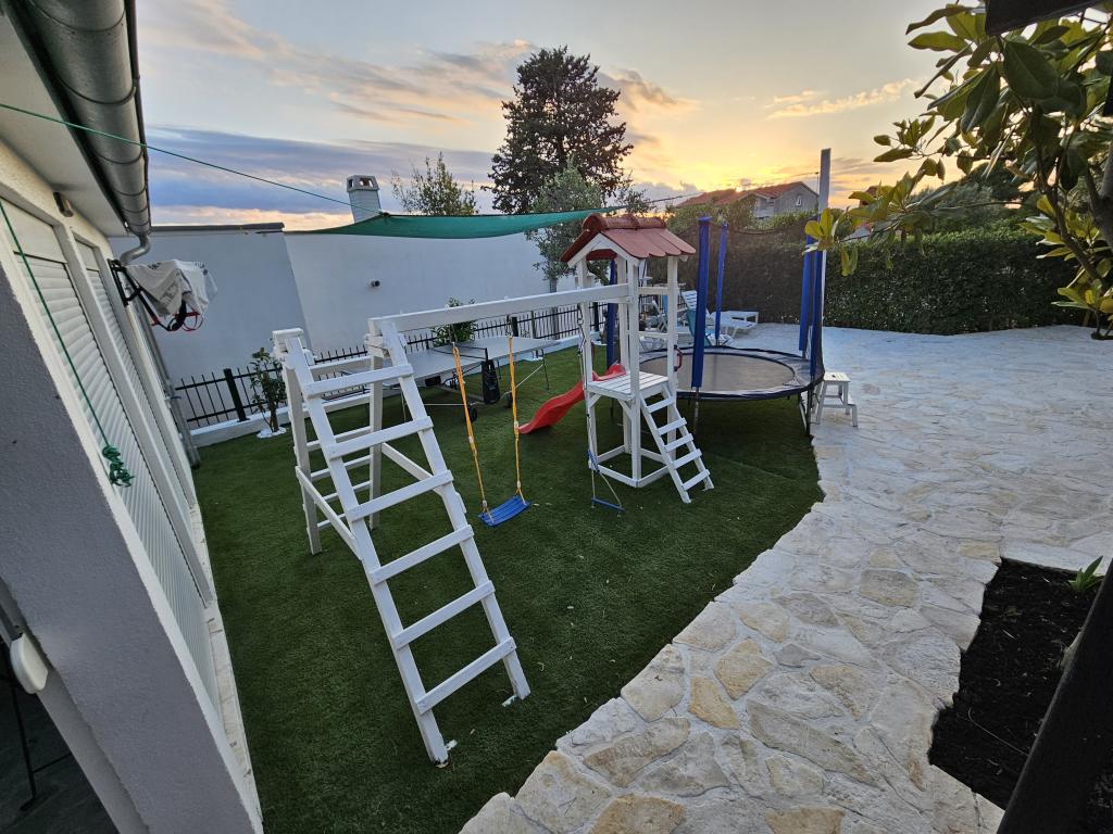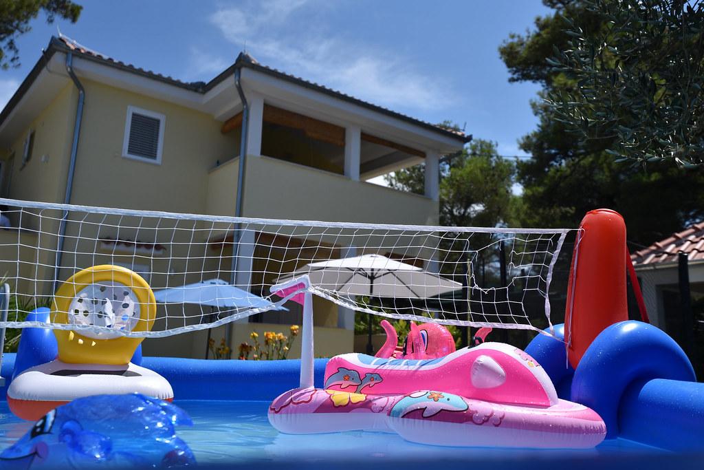 Naši hosté mohou volně využívat dvůr a zahradu. Vše, co najdete na dvoře a zahradě, můžete používat zdarma. Sdílí ho všichni, kdo u nás doma pobývají. Najdete zde bazén, jízdní kola (pro děti i dospělé, s jídelními židličkami), gril s grilem (sac, saće, čripnja), výrobník ledu, fritézu, 2 ledničky, dřez, přenosný elektrický vařič, cvičební stroje, lehátka se slunečníky, solární sprchu, zahradní houpačku pro 4 osoby a několik bazénů (od nejmenších pro miminka až po největší), dětské dřevěné a plastové stoly, herní domeček se skluzavkou, žebříkem a houpačkou, pískoviště, šipky, stolní tenis, trampolínu, badminton, dětskou houpačku a mnoho dalších dětských hraček.