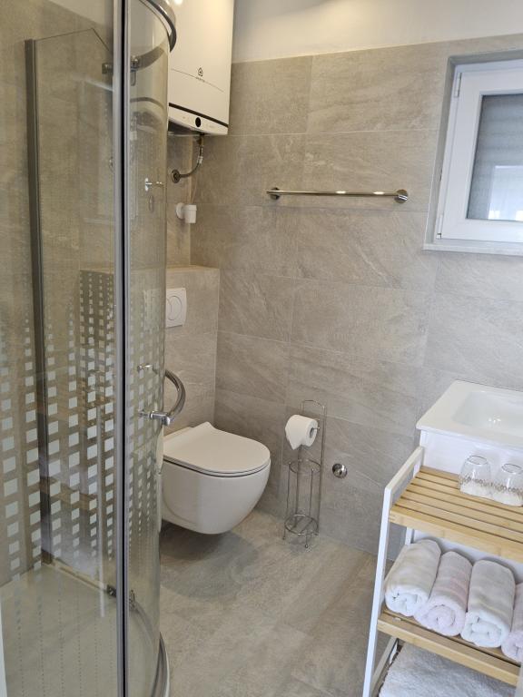 Adria Seaside House a Maribel Apartment nabízí klimatizované ubytování s krásným výhledem na moře, okolní ostrovy a nezapomenutelné západy slunce. Hosté mají přístup na soukromou pláž jen pár kroků od objektu, vybavenou lehátky, slunečníky a venkovní sprchou s teplou vodou - ideální pro koupání, relaxaci a opalování po celý den. Apartmány jsou 15 minut chůze od centra města, kde najdete obchody, pekárny a restaurace. Historické město Zadar s jeho četnými atrakcemi je vzdálené pouhých 15 minut jízdy autem. Ideální volba pro příjemnou a relaxační rodinnou dovolenou.