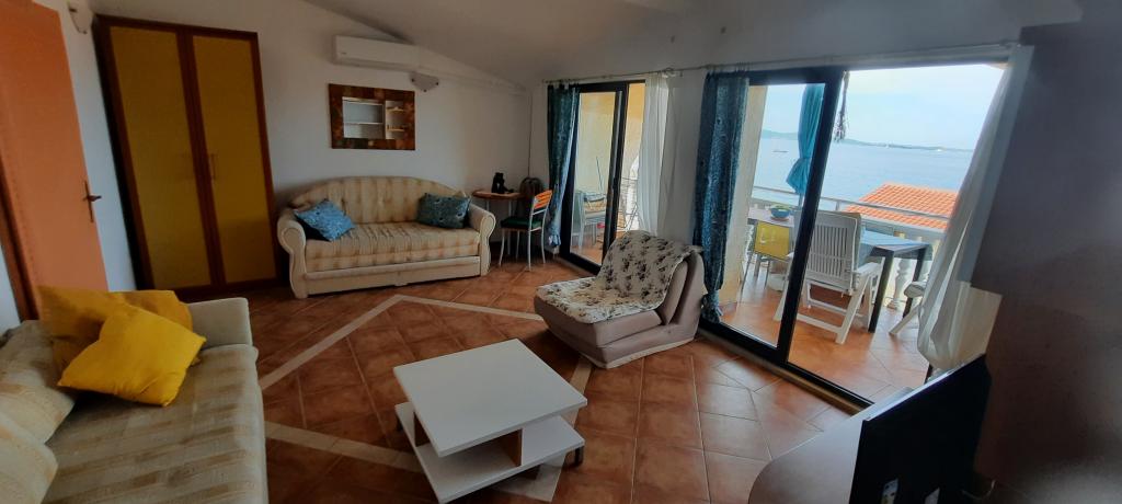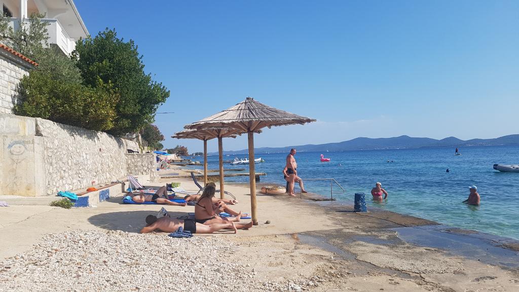 Villa Ivan se nachází v rodinném prostředí domů na ulici u moře. Z bytu jen pár kroků na pláž! Útulná atmosféra a apartmány vybavené šarmem. Zdarma WIFI, satelitní TV, soukromé parkoviště. Pláž před domem je typicky dalmatská s molami, oblázky a betonovou sluneční terasou. Na pláž se dostanete kočárkem. Centrum s restauracemi, obchody a dalšími doprovodnými zařízeními je vzdálené jen 10-15min. Díky své poloze je Villa Ivan ideální volbou pro vaši klidnou rodinnou dovolenou a výchozím bodem vaší aktivní dovolené a touhy navštívit mnoho historických nebo přírodních krás, které oplývají v této oblasti, jako je PP Telascica, NP Kornati, Vranské jezero, vodopády Krka, NP Paklenica, Velebit. Známé a krásné historické město Zadar, které je považováno za město s nejkrásnějším západem slunce, je jen 6 km daleko. Marina Dalmacija s doprovodným zařízením se nachází asi 1 km od domu. Vítejte!