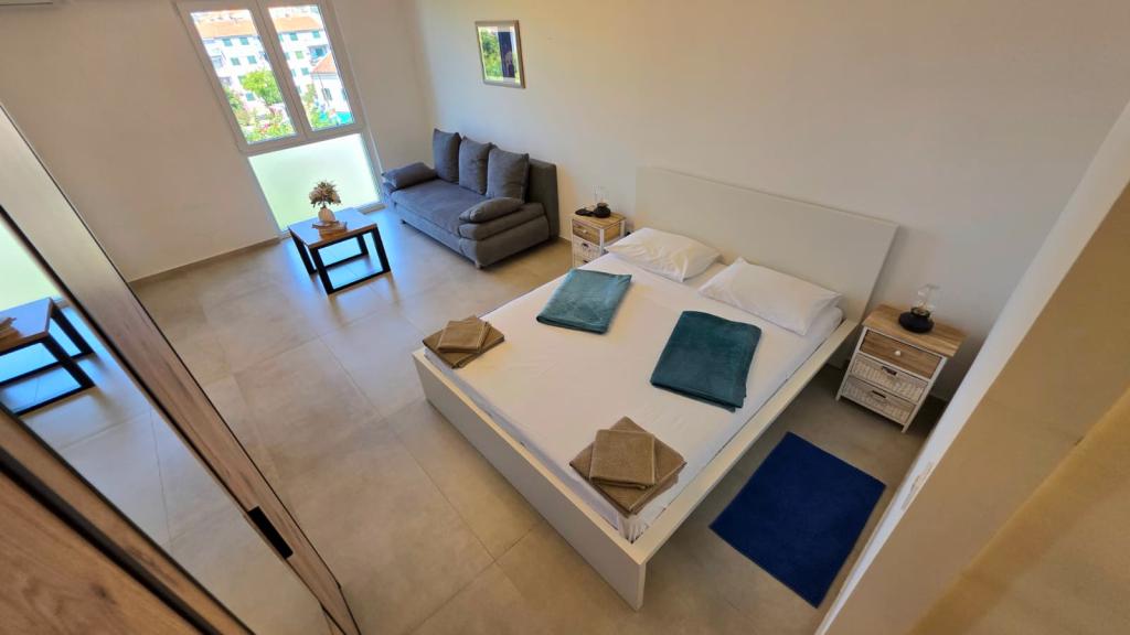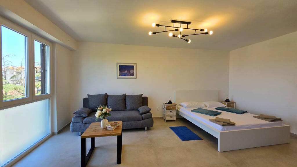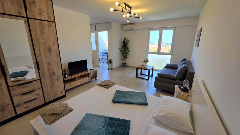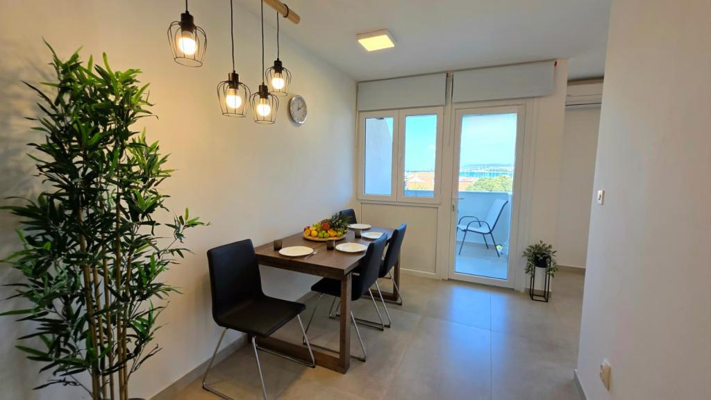 Nově zrekonstruovaný apartmán v centru Biogradu. V blízkosti se nachází veškerá základní občanská vybavenost, jako jsou restaurace, kavárny, cukrárny, obchody atd. Pláž je vzdálena 5 minut chůze. Z balkonu je výhled na moře a centrum Biogradu. Apartmán má myčku nádobí a pračku. Autobusové nádraží je nedaleko. Apartmán se nachází ve čtvrtém patře v budově bez výtahu.