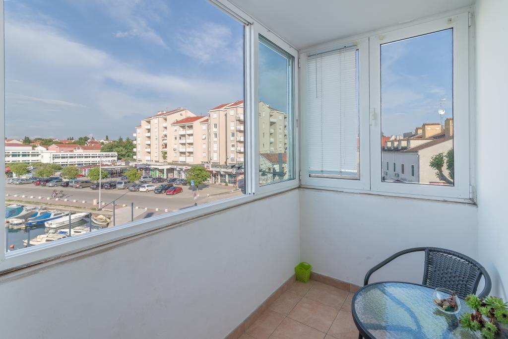 Byt se nachází v obytném domě ve druhém patře na adrese krále Petara Svačiće 20a Biograd na moru v centru Biogradu na moru. Balkon, výhled na přístav Kornat a Shangulin, trajekt do Tkonu (ostrov Pašman) 100 metrů a loď do Vrgady, blízko 100 m, všechny pizzerie, místní muzeum, kostel. Pláž 5 minut zdravotní centrum 200 metrů. Na hosta čeká láhev vína a chlazený nápoj z brandy, džusu, minerálky, ovoce. Byt je plně vybaven: ložní prádlo, ručníky, utěrky, nádobí, internet, TV. Město Zadar a letiště 33 km, Šibenik 40 km lodě na Kornati 200 m v blízkosti národního parku Krka 40 km, Zrmanja 25 km. tržnice 30 m, obchod, pekárna 30 m.